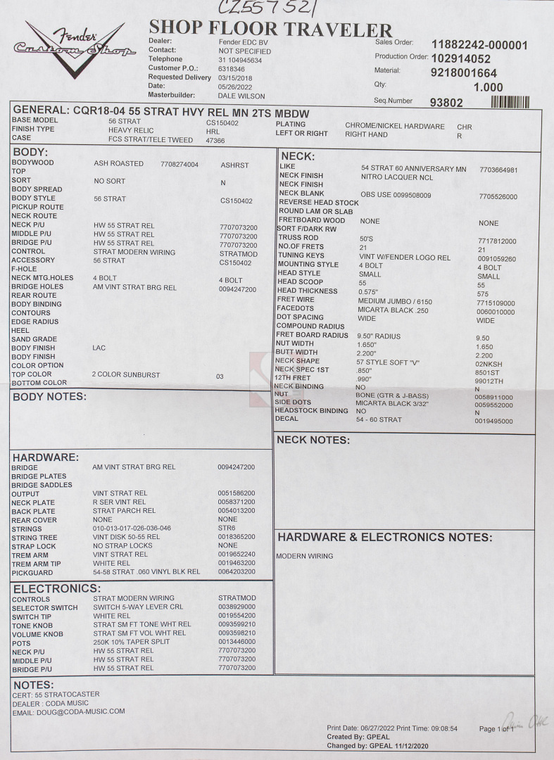 Fender Stratocaster 55 Heavy Relic Masterbuilt Dale Wilson (2022)