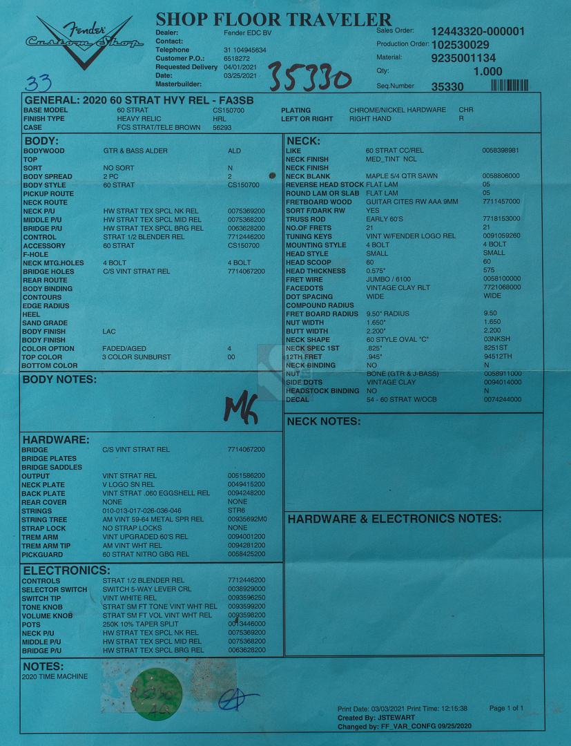 Fender Stratocaster 60 Heavy Relic FA3SB (2021)