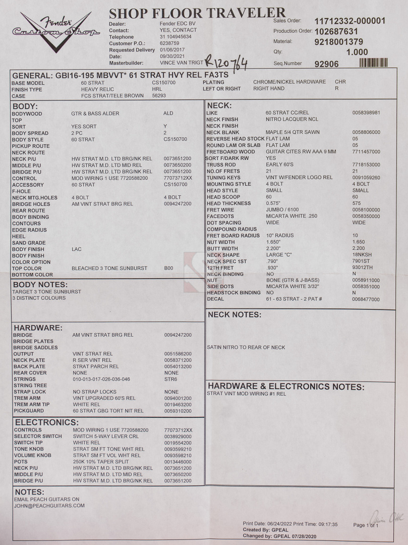 Fender Stratocaster 61 Heavy Relic Masterbuilt Vincent van Trigt (2022)