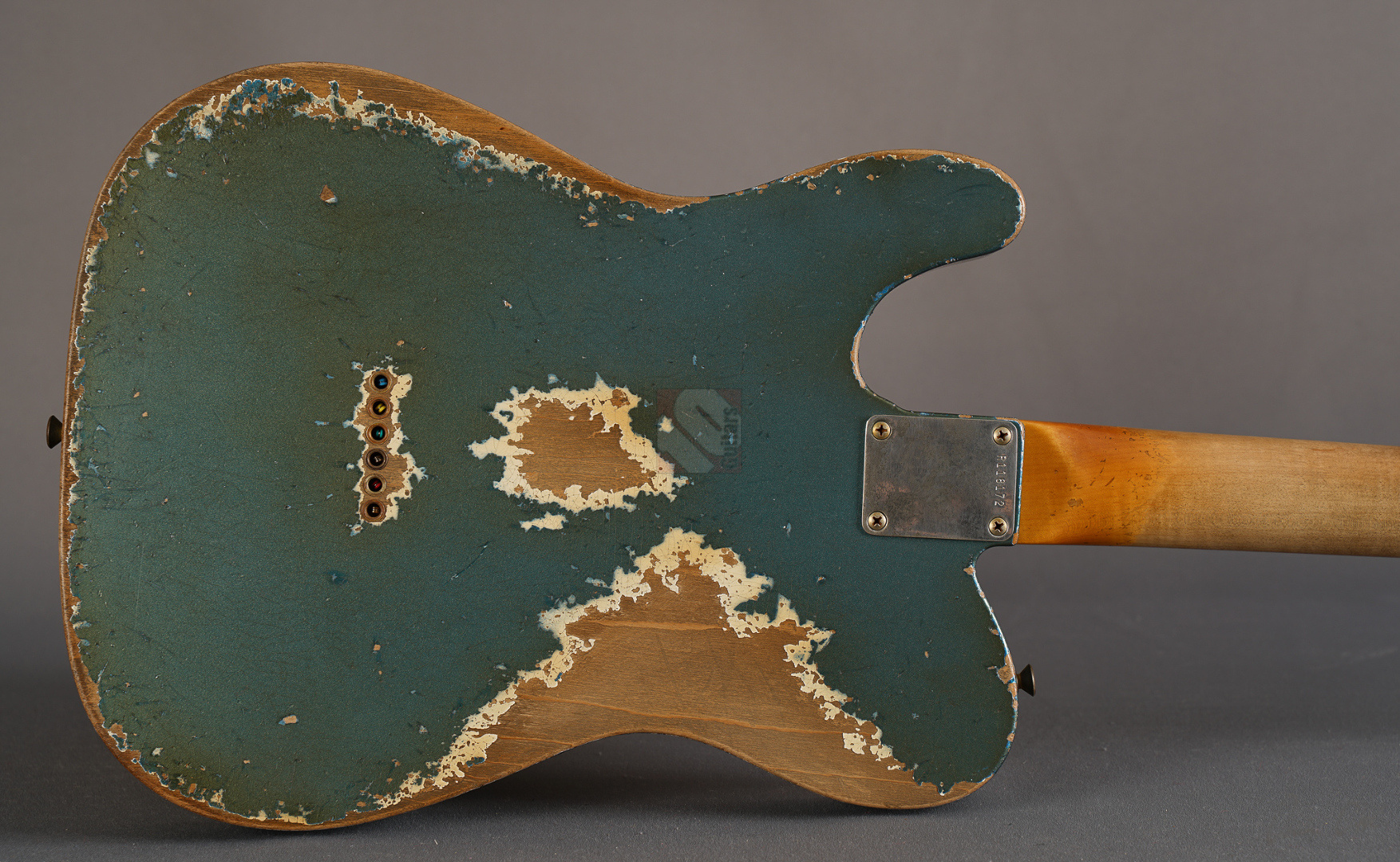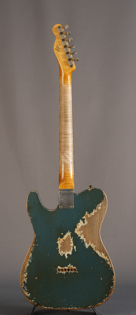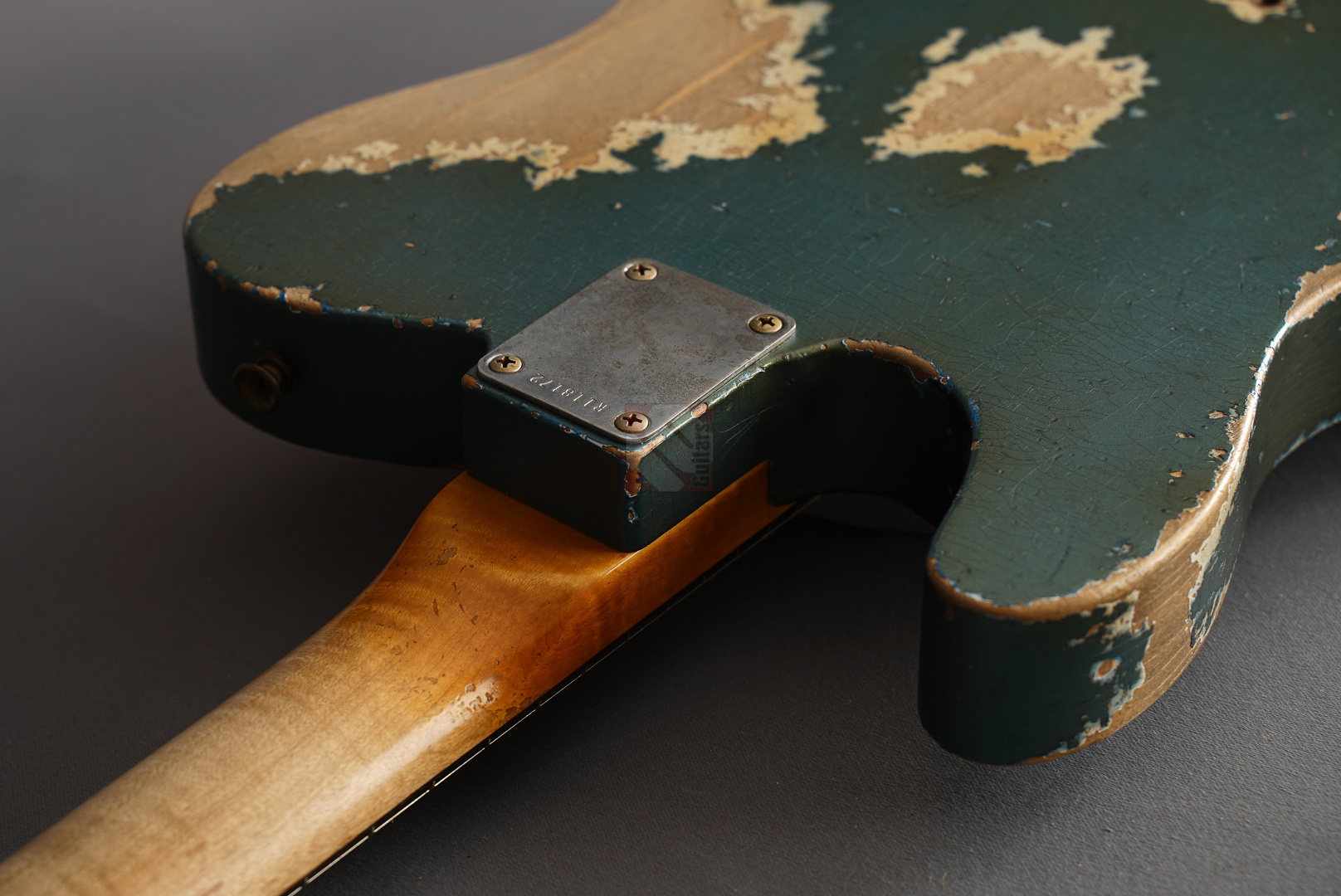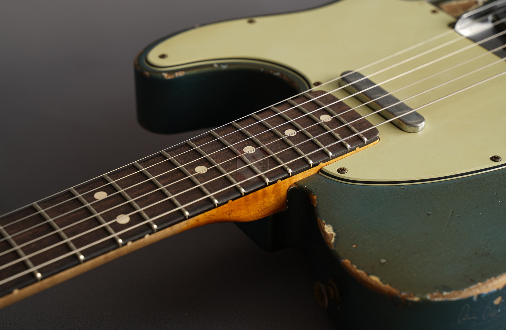 Klar, dass das Aging Weltklasse ist, ... das lässt sich zu jeder Gitarre von Masterbuilder-Legende Vincent van Trigt schreiben. Aber wie dieser Shooting-Star des Fender Custom Shop bei dieser 63er Tele das "Lake Placid Blue" interpretiert hat, ist schon eine ganz eigene Liga. Nicht nur sehen die unzähligen Cracks, Macken und Lackabplatzer auf der Rückseite einfach sensationell aus, auch der ganz leichte Farbverlauf ins Grünlich-Vergilbte haben wir so noch nicht gesehen. Wow! Dazu fühlt sich die Gitarre genau so gut an, wie sie aussieht. Der Hals kommt mit einem eher kräftigen "60s Style Oval C"-Profil mit 9,5"-Radius und 6105-Bünden daher und trifft damit die goldene Mitte aus Vintage-Feeling und moderner Bespielbarkeit. Trocken schon sehr snappy und direkt, sorgen die beiden "Handwound 63 Tele"-Singlecoils für einen twangigen, kernigen Sound, wie man ihn nicht nur für Country, sondern auch für Funk und Bluesrock hören will. Wer also eine Tele will, die nicht nur optisch, sondern auch klanglich mit jeder Menge Charakter daherkommt, macht mit dieser van Trigt rein gar nichts verkehrt. Wir freuen uns, Euch dieses einzigartige und exklusive Instrument in Top-Zustand anbieten zu können.