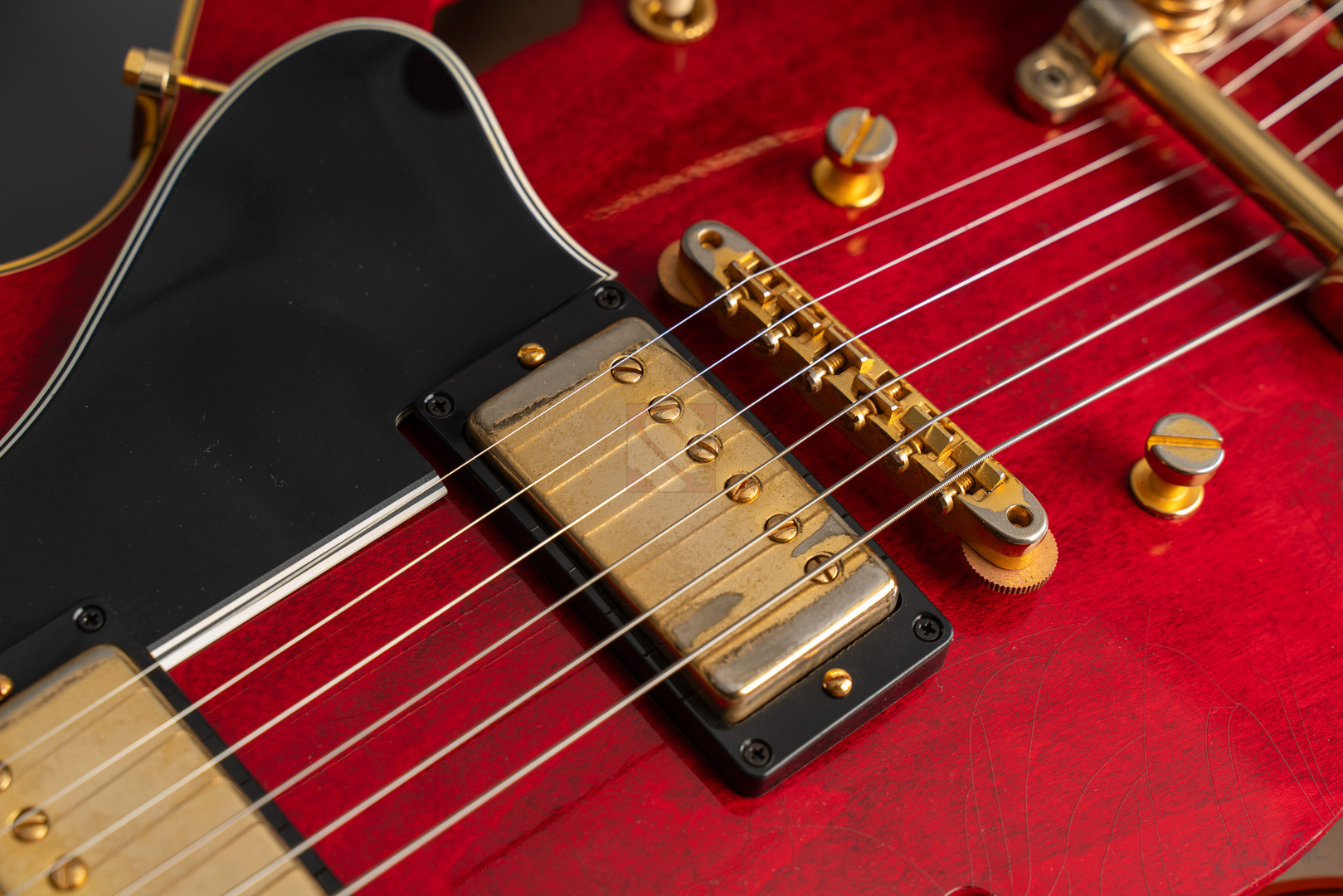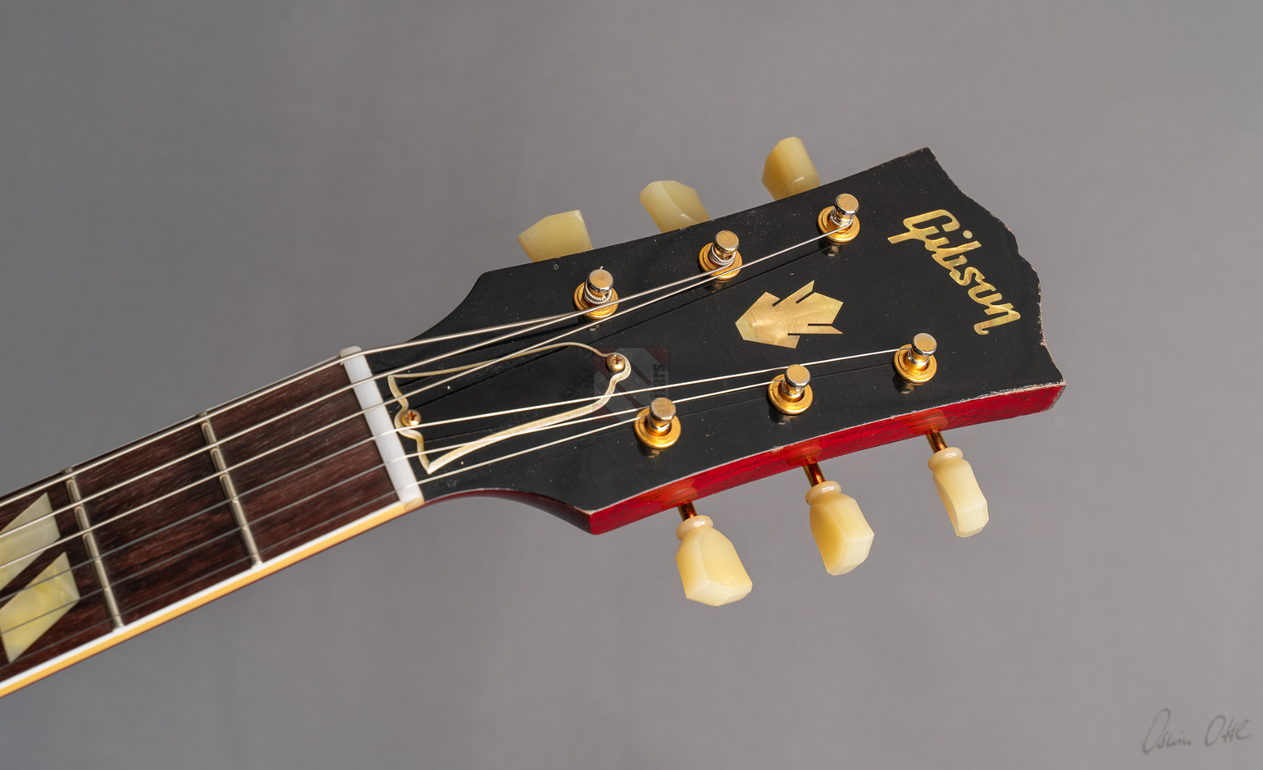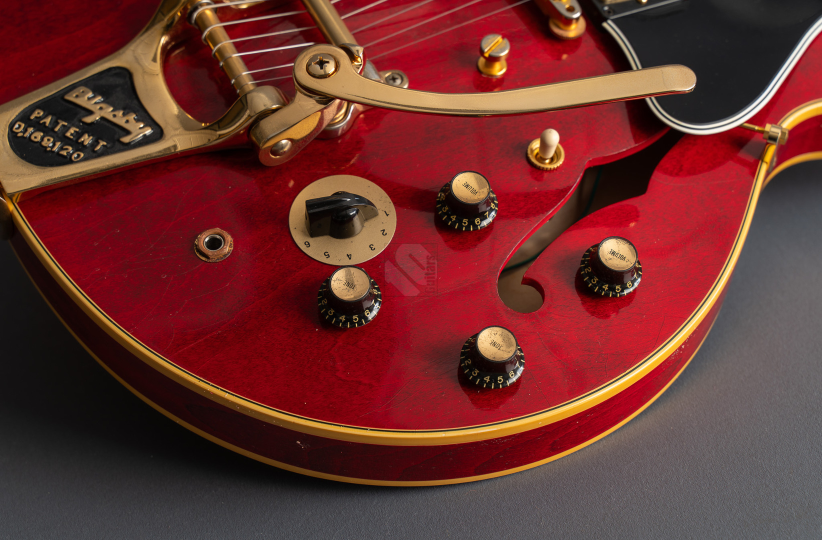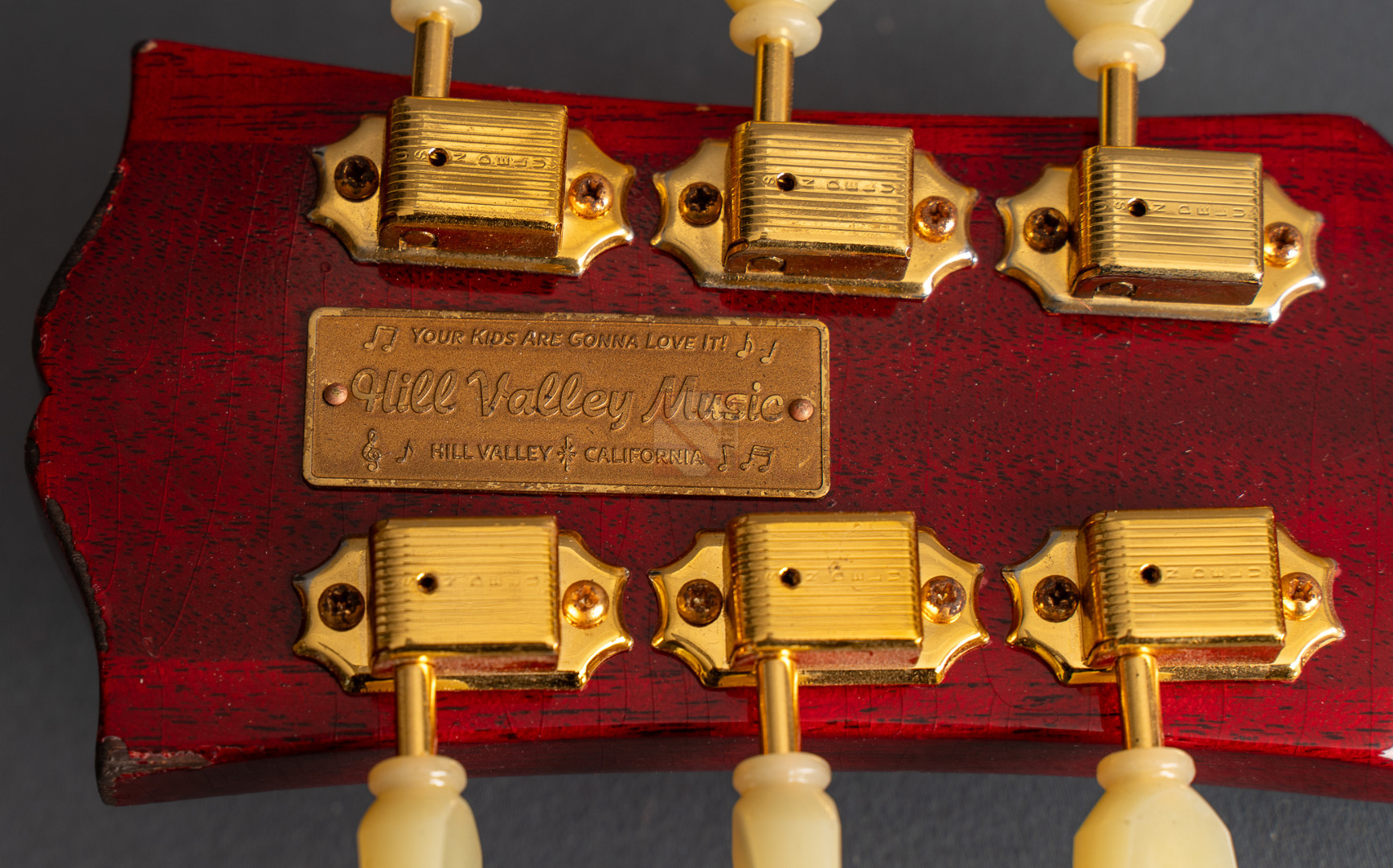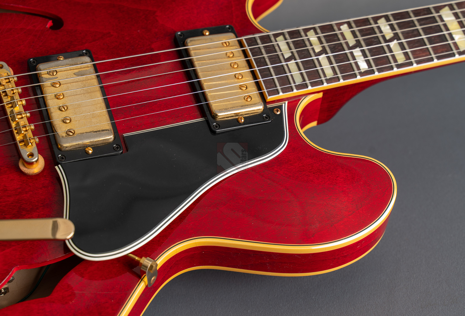 Bei einem High-School-Ball im Jahre 1995 war eine Gibson-Gitarre daran beteiligt, den Kurs der Musikgeschichte zu ändern. Ja, die Geschichte in einem unvergesslichen cineastischen Moment sogar neu zu schreiben. Die Gibson ES-345, die im Film "Back to the Future" zum Einsatz kam, wurde zu einer Legende und verband Vergangenheit, Gegenwart und Zukunft auf eine Weise, wie allein ein grandioses Instrument es vermag. Im Jahre 1959 erblickte die erste ES-345 das Licht der Welt und Norman Harris von „Norman‘s Rare Guitars“, der die Gitarre für den teils im Jahre 1955 spielenden Film zur Verfügung stellte, wies die Filmemacher darauf hin, dass dieses Modell zu dieser Zeit noch gar nicht existierte. Doch die Produzenten entschieden sich für künstlerische Freiheit, indem sie – ungeachtet der historischen Fakten – die Gitarre in den Szenen zum Schulball „Enchantment Under the Sea“ eine prominente Rolle spielen ließen. Basierend auf dieser vielseitigen Historie präsentierte der Gibson Custom Shop in Nashville im vergangenen Jahr die "Back to the Future 1955 ES-345 Collector’s Edition", eine gelungene Hommage an eine klassische Gitarre, die die Grenzen der Zeit auflöst. Die Gitarre hat einen Thinline-Korpus aus 3-lagigem Ahorn/Pappel/Ahorn-Schichtholz mit einem massiven Ahornblock für mehr Sustain und Rückkopplungsfreiheit. Der Mahagoni-Hals mit Long-Tenon ist natürlich mittels Hide-Glue befestigt. Er hat ein "1961 Authentic Thin D-Shape"-Profil, das super komfortabel in der Hand liegt, und ist mit einem tiefdunklen Palisander-Griffbrett und 22 "Medium Jumbo"-Bünden sowie Split-Parallelogramm-Inlays ausgestattet. In Anlehnung an die Originalgitarre, das einzige bekannte Exemplar aus der Zeit mit einem einzelnen Parallelogramm-Inlay am 12. Bund, trägt natürlich auch die "Back to the Future" dieses seltene Merkmal. ...und um das cineastische Erlebnis zu vervollkommnen, wurde auch das "Hill Valley Music"-Logo auf der Kopfplattenrückseite angebracht. Edles Finish in traditionellem "Cherry Red" mit goldfarben-geagter Hardware und verstimmungsfreien Bigsby B7. Das "Light Aging" des Murphy Lab rundet den geilen Look perfekt ab, indem es sich eher subtil auf unzählige Lackrisse und nur kleinere Macken beschränkt. Soundmäßig hat man es hier mit einem wunderbar ausgewogen Klang zu tun, stark angelehnt an die legendären PAFs. Mit den verbauten unpotted Custombuckers mit Alnico-III-Magneten liegt einem eine wahre Soundwelt zu Füßen. gerade auch, da die Semi-Hollow mit einem Mono-Varitone-Schalter ausgestattet ist, der die klangliche Vielseitigkeit des Instruments noch erweitert. Egal ob klassischer Blues, funky Soul und R n´B oder auch fette, rockige Sounds – das alles ist in bester Manier möglich mit dieser ES! Darüber hinaus kommt die Gitarre, die wir Euch in neuwertigem Zustand anbieten können, mit einem Lifton-Hartschalenkoffer mit „Marvin Berry and the Starlighters“-Motiv sowie verschiedenen famosen Case-Candies, die jedes Samnmlerherz höher schlagen lassen. All das macht die Collector’s Edition zu einer legendären Gitarre, die die Grenzen der Zeit auflöst!
