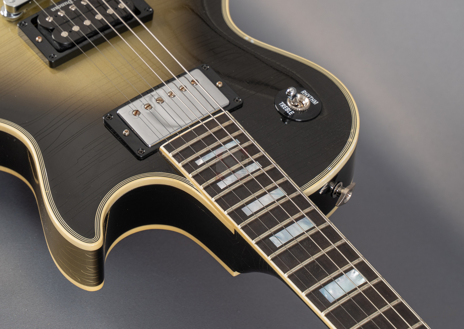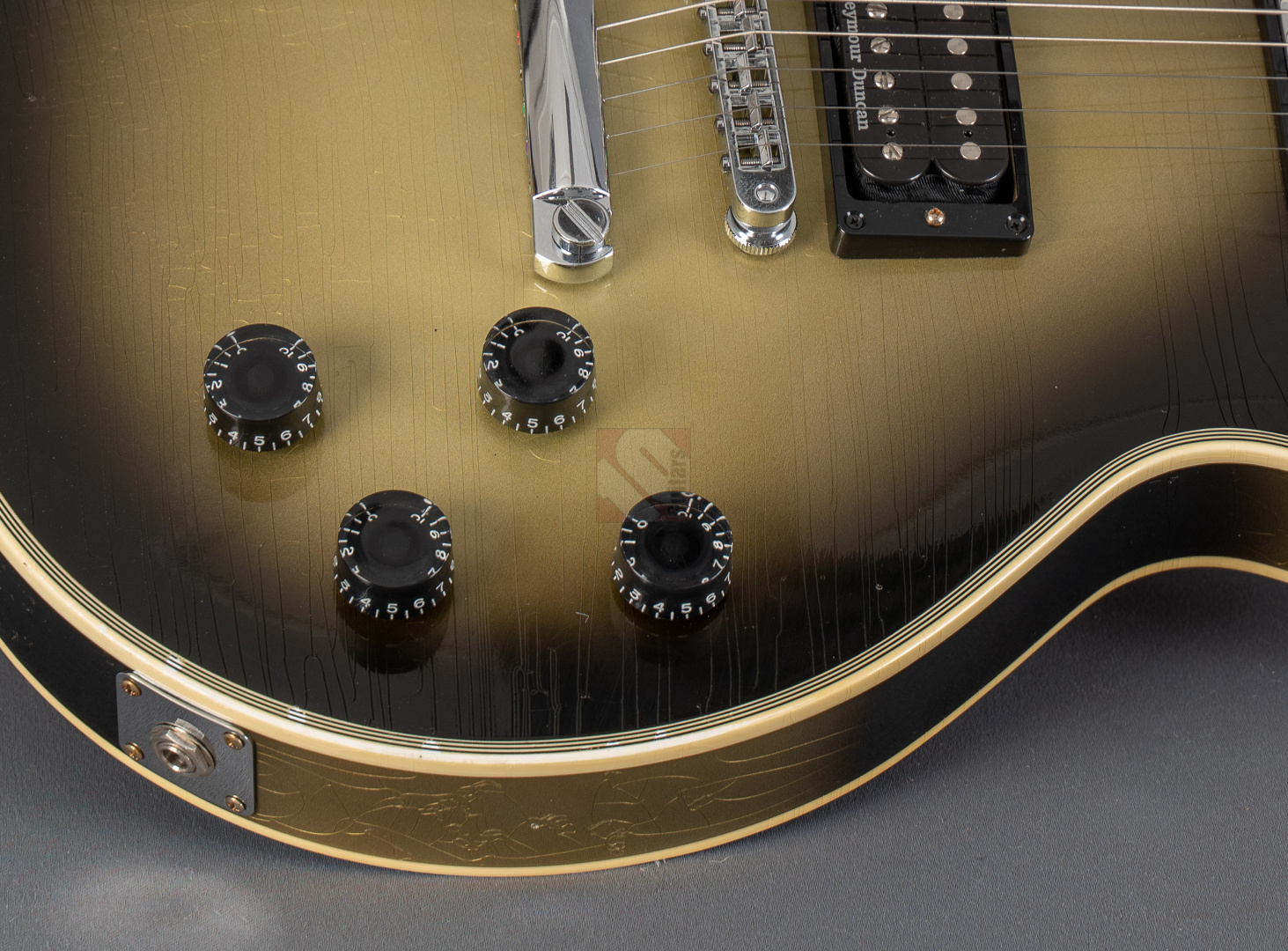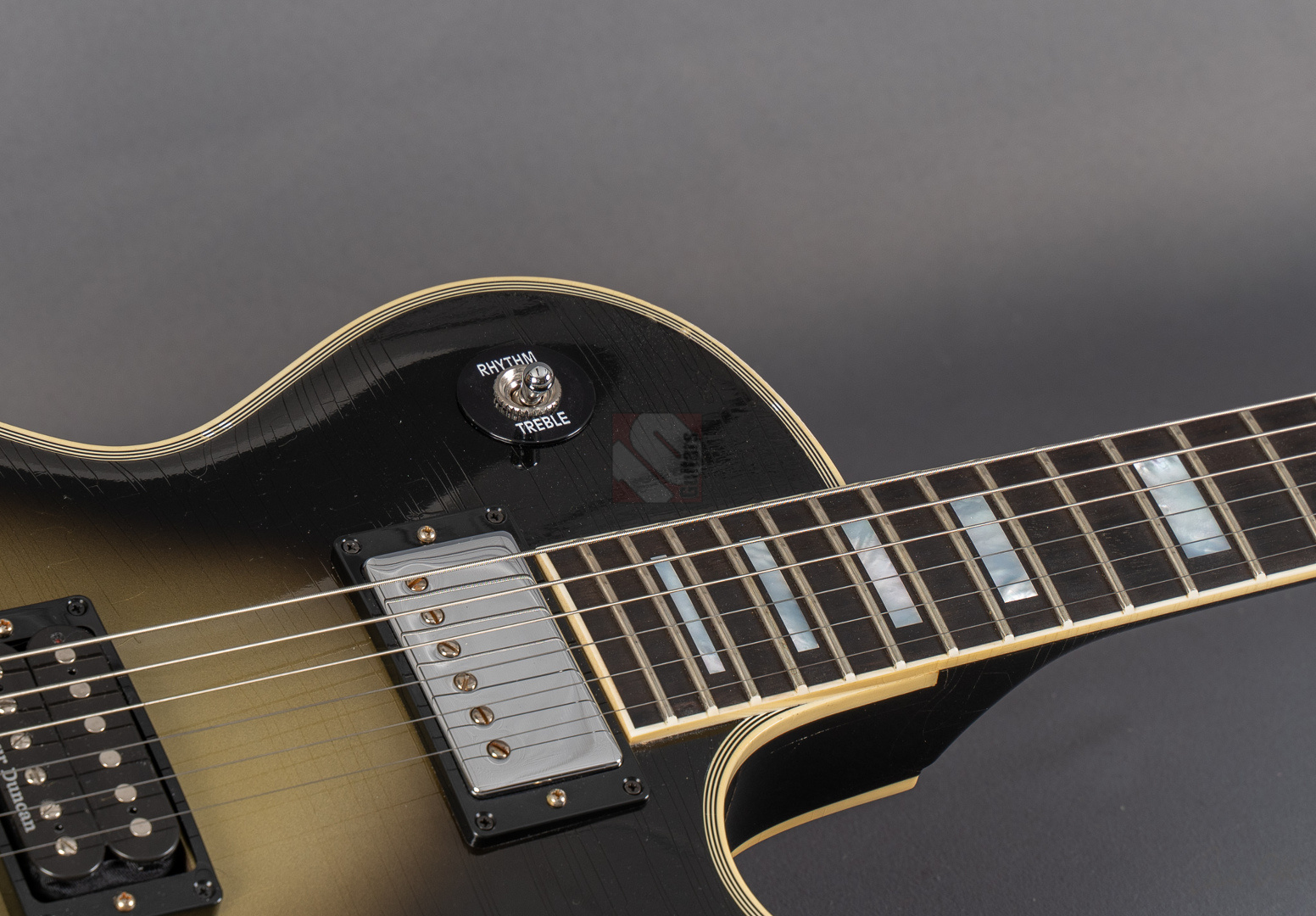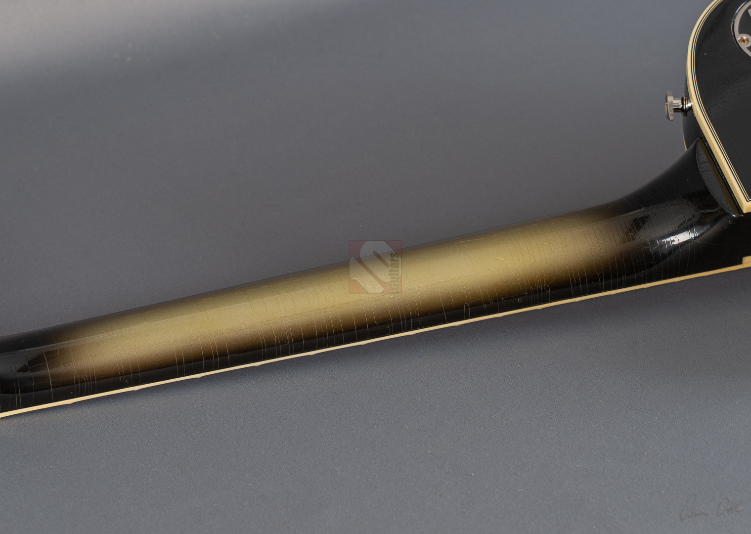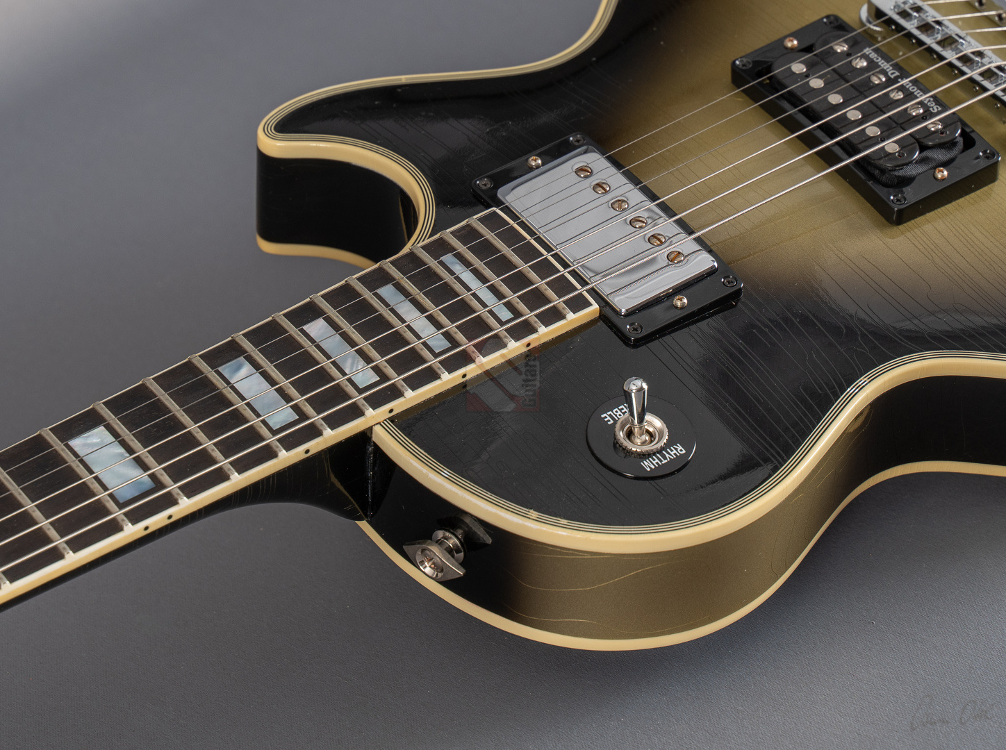 Adam Jones, phänomenaler Gitarrist der Band Tool, ist bekannt für seine fetten Klänge, die er auf wegweisenden Alben wie "Lateralus", "10000 Days" oder "Fear Inoculum" verewigte. Für diesen Sound zeichnet vor allem seine 1979 Les Paul Custom verantwortlich, die er facettenreich modifizierte. Basierend auf dieser legendären Silverburst fertigte der Gibson Custom Shop verschiedene Repliken an: im Jahre 2020 die V1- und VOS-Replika sowie 2021 die V2-Version. Letztere, deren Auflage auf lediglich 79 Exemplare limtiert ist, dürfen wir Euch heute mit großer Freude anbieten. Dem Original entsprechend zeigt die Les Paul Custom dabei einen wunderbar authentischen, grünlich-gealterten Farbton des Silverburst und das fantastische Light-Aging des Murphy Lab tut sein Übriges, um der Gitarre eine schöne und vor allem authentische Vintage-Patina mit allerlei Haarrissen und nur kleineren Macken zu verschaffen. Passend dazu das edle Ebenholzgriffbrett mit Block-Inlays, das von Adams Ehefrau entworfene Design auf der Kopfplattenrückseite und die chromefarbene Hardware, die bis hin zum Knob des Toggle-Switches und den klassischen Sperzel-Tuners reicht. ...und natürlich wurde das Prachtstück von Adam Jones auf der Kopfplattenrückseite auch handsigniert! Diese Paula ist in jedem Detail umwerfend gut verarbeitet, fühlt sich mit dem vergleichsweise etwas flacheren "Custom C"-Profil des Halses fantastisch an und bläst einem am Amp einfach die Ohren weg. Das vielfältige Klangspektrum der Gitarre wird von einem umgekehrt montierten Custombucker am Hals und einem Custom-gewickelten Seymour Duncan DDJ am Steg geliefert. Schmatzend, fett und wuchtig, wie man es von Adam Jones gewohnt ist. Dabei aber immer schön differenziert und transparent. Hier fließen einem Songs wie "Pneuma", "Stinkfist" und "The Grudge" nur so aus den Fingern. Wer also auf der Suche nach einer Gitarre ist, die nicht nur als wertbeständiges, streng limitiertes Sammlerstück erste Wahl ist, sondern auch mit ihrer fantastischen Klangmächtigkeit überzeugen kann, ist hier genau richtig. Um die Detailverliebtheit letztendlich auf die Spitze zu treiben, hat der Gibson Custom Shop auch noch einen Jones-typischen Spiegel für die Kopfplatte beigelegt, mit dem sich das endgültige Tool-Erlebnis vervollkommnen lässt. Aber auch der Vorbesitzer blieb nicht untätig und optimierte das Gesamtpaket, indem er ihm noch eine Miniaturreplika von Axmann hinzufügte. Der zugehörige Koffer zeigt minimalste Gebrauchsspuren, was für Kenner der "Adam Jones"-Reihe aus dem Custom Shop sicherlich nicht verwunderlich sein dürfte, da dies bekannterweise unvermeidlich ist. Da die Les Paul Custom aber aus Sammlerhand kommt, befindet sich das Instrument in neuwertigem, praktisch ungespieltem Zustand.