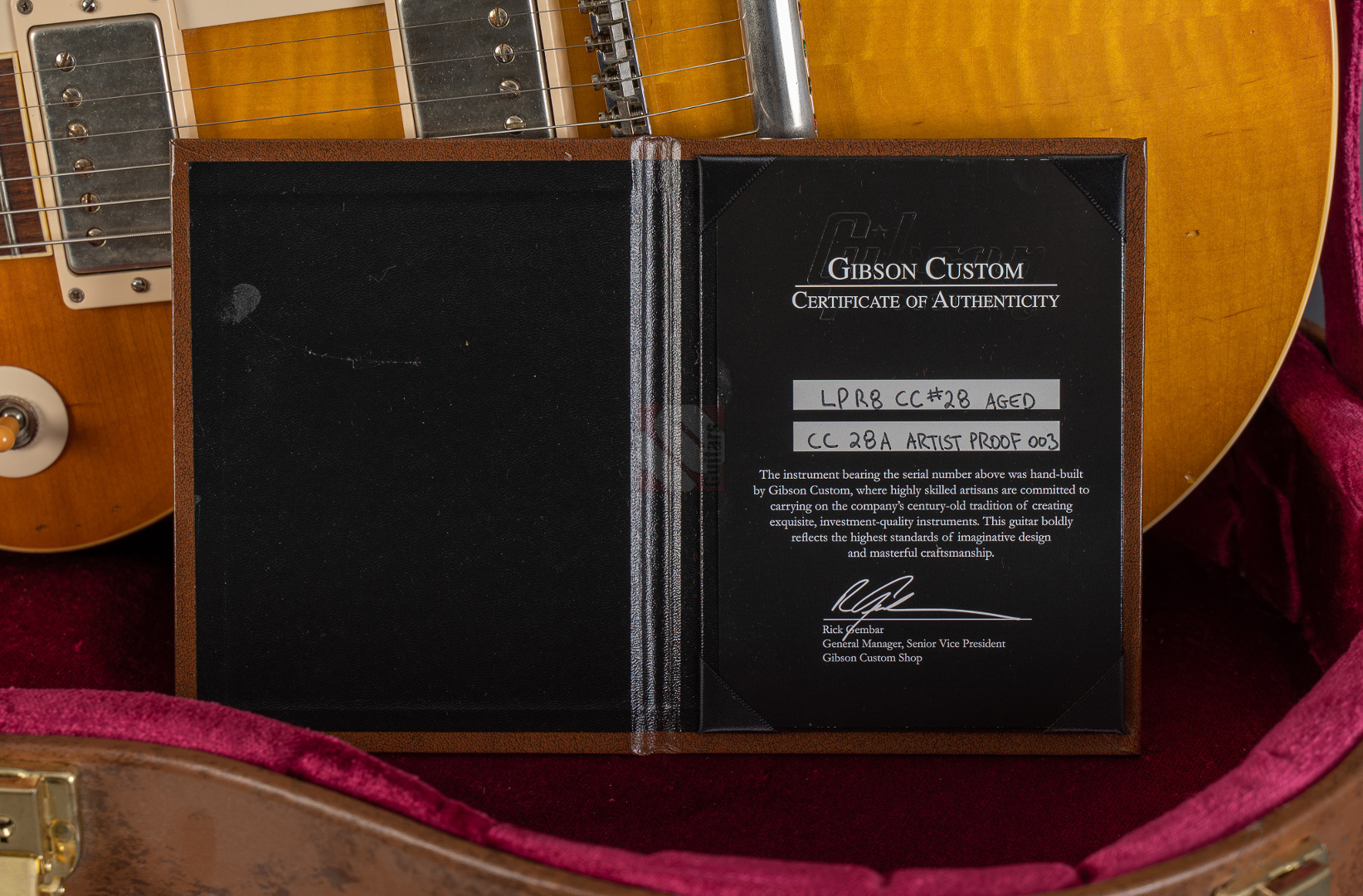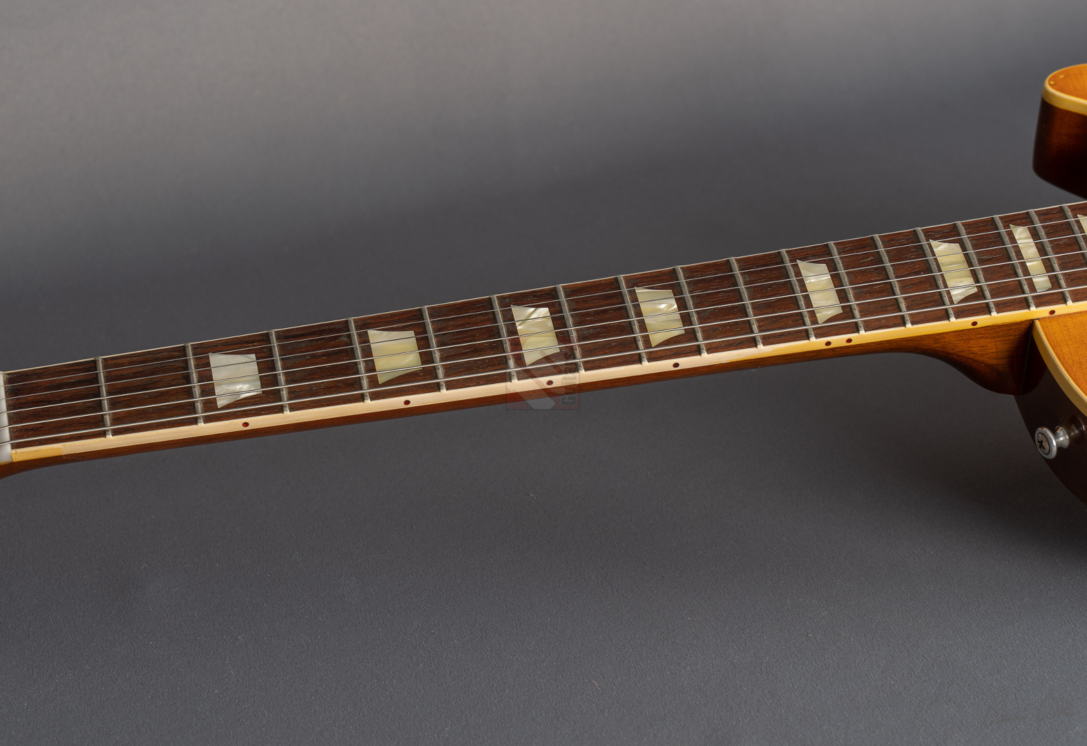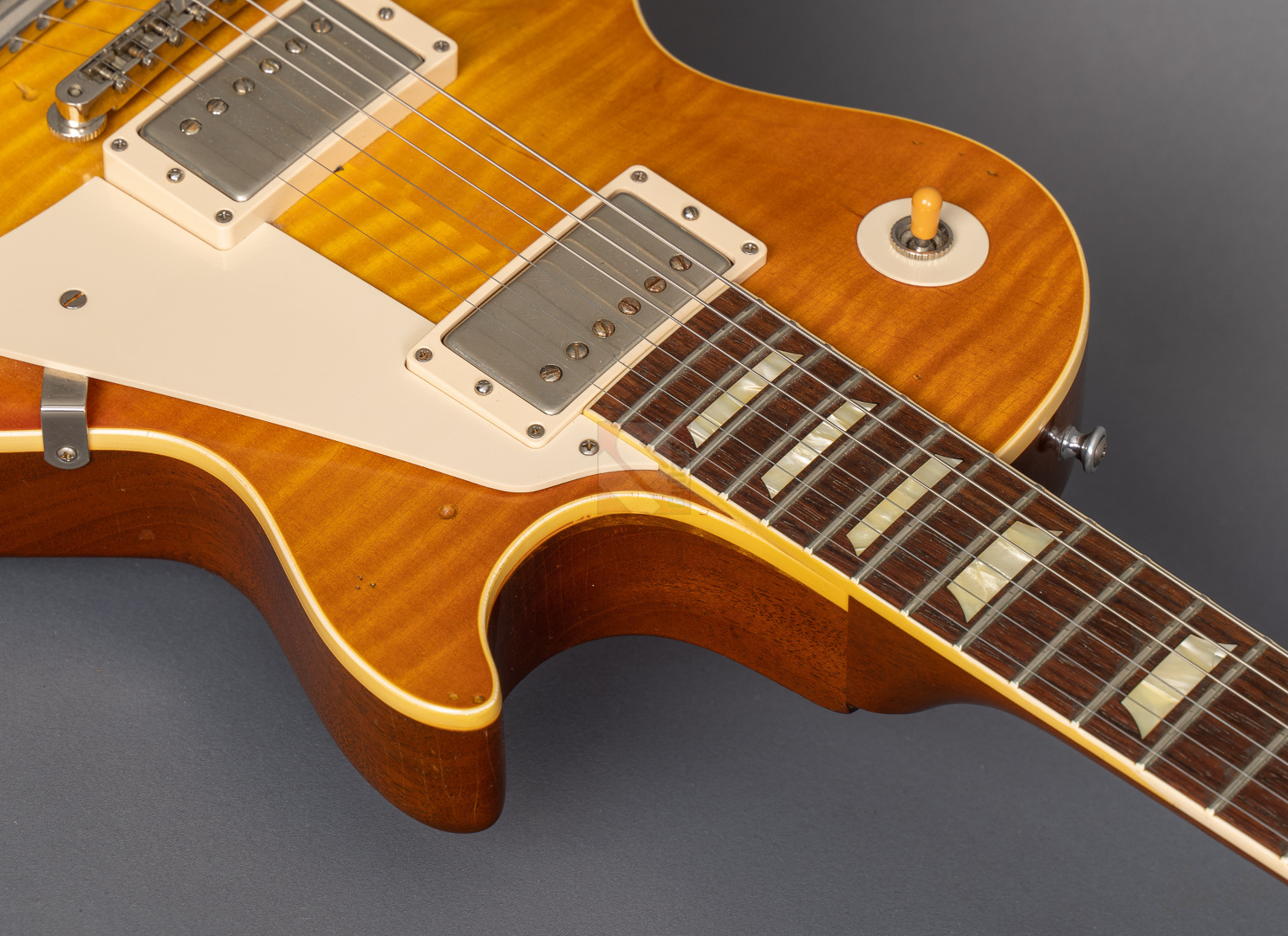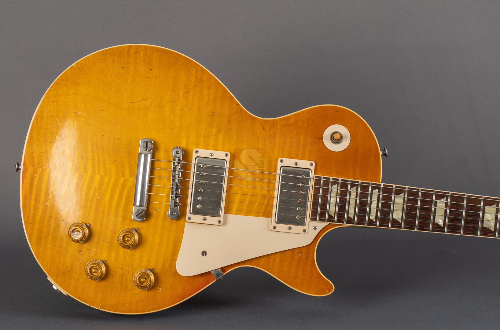 Die 58er Gibson Les Paul mit der Seriennummer 8 6787 hat eine lange Geschichte, die neben Ronnie Montrose auch mit einem weiteren Namen unmittelbar verbunden ist: Professor Peter Weihe, Deutschlands vermutlich bekanntester Studiogitarrist und Dozent an der Hochschule für Musik und Theater in Hamburg. Er hat diese legendäre 58er Paula über viele Jahre hinweg besessen. Deshalb ist sie – zumindest hier in Deutschland – auch eher als "Peter Weihe Les Paul“ bekannt als mit ihrem ursprünglichen Namen "Montrose STP Burst“. Zuvor erlangte diese Les Paul Berühmtheit in Händen des legendären Rockgitarristen Ronnie Montrose, der die Gitarre auf seiner letzten Tour mit Edgar Winter sowie auf den ersten beiden Montrose-Alben (Montrose und Paper Money) verwendet hatte. Ronnie selbst nannte seine Paula "STP ", weil Jahre vor dem Kauf ein STP-Aufkleber auf ihr angebracht worden war und nach dessen Entfernung nur noch eine rote Silhouette auf der verblichenen "Cherry Sunburst"-Lackierung verblieb. Im Jahre 2015 erfuhr Ronnie eine posthume Ehrung, indem der Gibson Custom Shop basierend auf dem Original die Collectors Choice CC#28 Montrose STP Burst in einer auf 300 Exemplare limitierten Auflage herausbrachte. Hierbei arbeitete Gibson mittels einer umfassenden Analyse und Entwicklung mit dem damaligen Besitzer der Originalgitarre zusammen: Peter Weihe! Jedes noch so kleine Detail des Originals wurde akribischst reproduziert und natürlich erhielt Peter verschiedene "Artist Proof"-Gitarren zur Begutachtung, wovon wir hier Nummer 003 anbieten können. Über diese Gitarre sagt Peter Weihe: "Sie hatte tatsächlich viele der von mir so geschätzten Eigenschaften der Original-Burst und sie wurde in den kommenden 9 Jahren bis auf wenige Ausnahmen zu der einzigen Les Paul, die ich bei meinen Studio-Sessions gespielt habe, worunter die eine oder andere Nr.1-Produktion war, mit vielen Gold- und Platin-Auszeichnungen. Sie ist z.B. auf Aufnahmen und Hits von Helene Fischer, Gregorian, Sarah Brightman, Heinz Rudolf Kunze, Ben Zucker, Kerstin Ott, Maite Kelly u.v.a.m. zu hören, eben auf allem, was ich im Verlauf von 9 Jahren gespielt habe." Weiterhin führt er aus, dass er diese Montrose Artist-Proof dem Gitarrenbauer Stefan Zander und dem Tonabnehmerhersteller Andreas Kloppmann zeigte, die beide die originale 58er Burst sehr gut kannten. Beide teilten seinen Eindruck und waren der Meinung, dass diese Artist-Proof die am besten klingende neue Les Paul sei, die sie je gehört hatten. "Meine beiden Gitarren, meine CC#8 und meine CC#28, sind gleichermaßen großartig und erfüllen alle meine Erwartungen an eine großartige Les Paul, die mich auch in kritischen Sessions nicht im Stich lässt. Meine CC#28 klingt in meinen Ohren charismatischer und hat auf der H- und E-Saite noch mehr Sustain. Der Bassbereich wird nicht matschig, die Mitten sind farbenfroh und transparent und die hohen Töne haben Biss, ohne schrill zu sein, mit genügend Grundton, um sie satt und singend klingen zu lassen. Die Jungs vom Custom Shop haben die Halsform perfekt getroffen und das Gewicht von 4 kg ist genau richtig. Wenn ich den Hals spiele und die drei kleinen Punkte am Cutaway sehe, fühlt sich das fast unheimlich an. Die Gitarre ist einfach großartig." Auch wir könnten Peters Lob nichts mehr hinzufügen; man hat es hier einfach mit einer phänomenalen Les Paul mit einem super authentischen Look sowie besten Player- und Klangeigenschaften zu tun. Dass es sich darüber hinaus um ein absolutes Einzelstück handelt, mit dem legendäre Musikgeschichte geschrieben wurde, macht das Gesamtpaket nur noch interessanter.