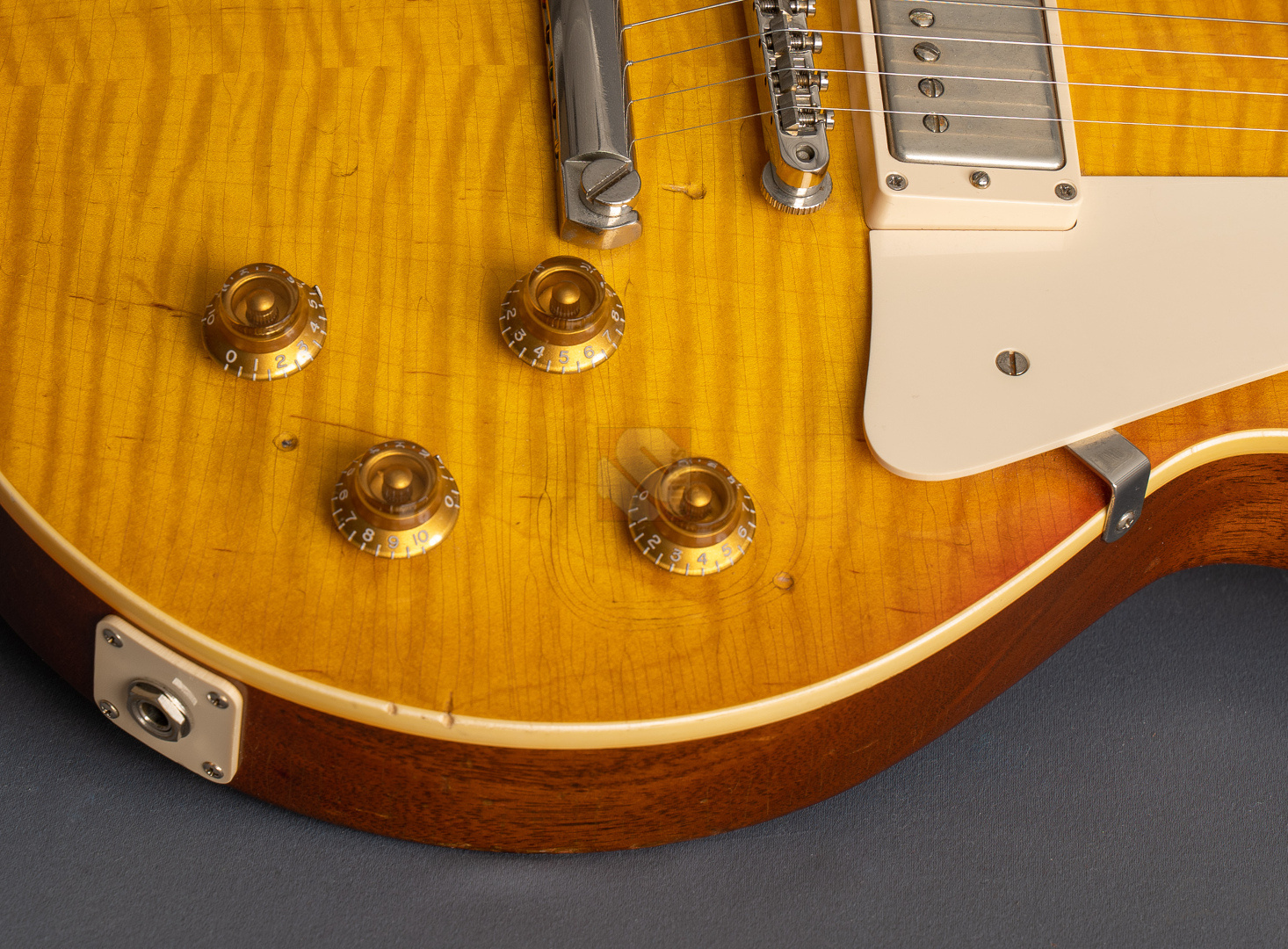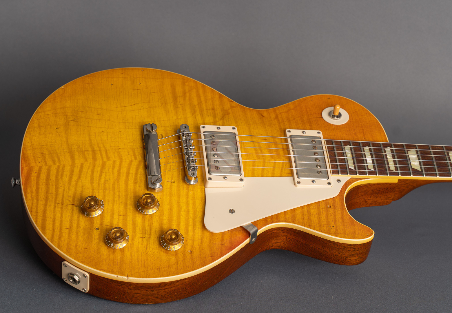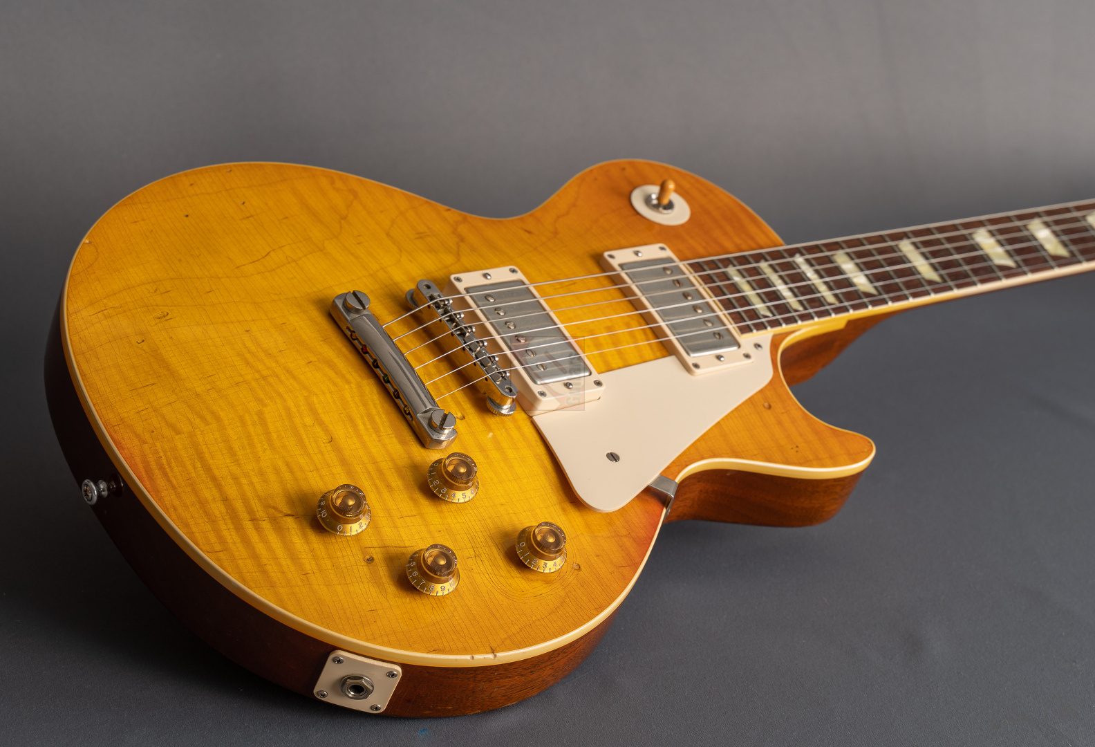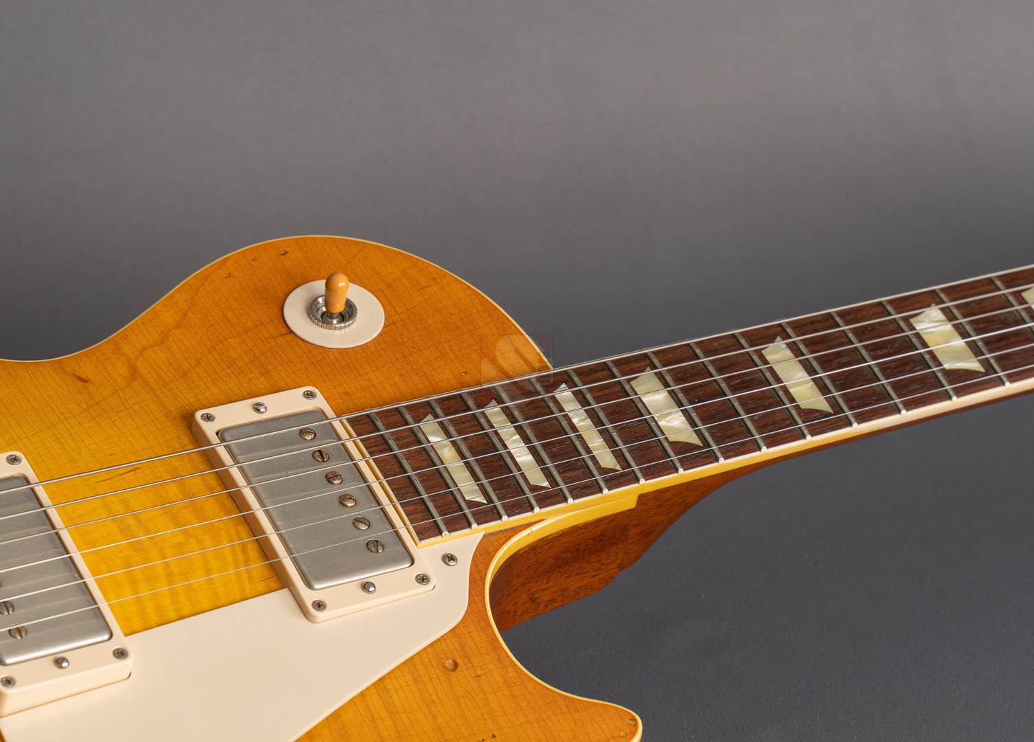 Die 58er Gibson Les Paul mit der Seriennummer 8 6787 hat eine lange Geschichte, die neben Ronnie Montrose auch mit einem weiteren Namen unmittelbar verbunden ist: Professor Peter Weihe, Deutschlands vermutlich bekanntester Studiogitarrist und Dozent an der Hochschule für Musik und Theater in Hamburg. Er hat diese legendäre 58er Paula über viele Jahre hinweg besessen. Deshalb ist sie – zumindest hier in Deutschland – auch eher als "Peter Weihe Les Paul“ bekannt als mit ihrem ursprünglichen Namen "Montrose STP Burst“. Zuvor erlangte diese Les Paul Berühmtheit in Händen des legendären Rockgitarristen Ronnie Montrose, der die Gitarre auf seiner letzten Tour mit Edgar Winter sowie auf den ersten beiden Montrose-Alben (Montrose und Paper Money) verwendet hatte. Ronnie selbst nannte seine Paula "STP ", weil Jahre vor dem Kauf ein STP-Aufkleber auf ihr angebracht worden war und nach dessen Entfernung nur noch eine rote Silhouette auf der verblichenen "Cherry Sunburst"-Lackierung verblieb. Im Jahre 2015 erfuhr Ronnie eine posthume Ehrung, indem der Gibson Custom Shop basierend auf dem Original die Collectors Choice CC#28 Montrose STP Burst in einer auf 300 Exemplare limitierten Auflage herausbrachte. Hierbei arbeitete Gibson mittels einer umfassenden Analyse und Entwicklung mit dem damaligen Besitzer der Originalgitarre zusammen: Peter Weihe! Jedes noch so kleine Detail des Originals wurde akribischst reproduziert und natürlich erhielt Peter verschiedene "Artist Proof"-Gitarren zur Begutachtung, wovon wir hier Nummer 003 anbieten können. Über diese Gitarre sagt Peter Weihe: "Sie hatte tatsächlich viele der von mir so geschätzten Eigenschaften der Original-Burst und sie wurde in den kommenden 9 Jahren bis auf wenige Ausnahmen zu der einzigen Les Paul, die ich bei meinen Studio-Sessions gespielt habe, worunter die eine oder andere Nr.1-Produktion war, mit vielen Gold- und Platin-Auszeichnungen. Sie ist z.B. auf Aufnahmen und Hits von Helene Fischer, Gregorian, Sarah Brightman, Heinz Rudolf Kunze, Ben Zucker, Kerstin Ott, Maite Kelly u.v.a.m. zu hören, eben auf allem, was ich im Verlauf von 9 Jahren gespielt habe." Weiterhin führt er aus, dass er diese Montrose Artist-Proof dem Gitarrenbauer Stefan Zander und dem Tonabnehmerhersteller Andreas Kloppmann zeigte, die beide die originale 58er Burst sehr gut kannten. Beide teilten seinen Eindruck und waren der Meinung, dass diese Artist-Proof die am besten klingende neue Les Paul sei, die sie je gehört hatten. "Meine beiden Gitarren, meine CC#8 und meine CC#28, sind gleichermaßen großartig und erfüllen alle meine Erwartungen an eine großartige Les Paul, die mich auch in kritischen Sessions nicht im Stich lässt. Meine CC#28 klingt in meinen Ohren charismatischer und hat auf der H- und E-Saite noch mehr Sustain. Der Bassbereich wird nicht matschig, die Mitten sind farbenfroh und transparent und die hohen Töne haben Biss, ohne schrill zu sein, mit genügend Grundton, um sie satt und singend klingen zu lassen. Die Jungs vom Custom Shop haben die Halsform perfekt getroffen und das Gewicht von 4 kg ist genau richtig. Wenn ich den Hals spiele und die drei kleinen Punkte am Cutaway sehe, fühlt sich das fast unheimlich an. Die Gitarre ist einfach großartig." Auch wir könnten Peters Lob nichts mehr hinzufügen; man hat es hier einfach mit einer phänomenalen Les Paul mit einem super authentischen Look sowie besten Player- und Klangeigenschaften zu tun. Dass es sich darüber hinaus um ein absolutes Einzelstück handelt, mit dem legendäre Musikgeschichte geschrieben wurde, macht das Gesamtpaket nur noch interessanter.