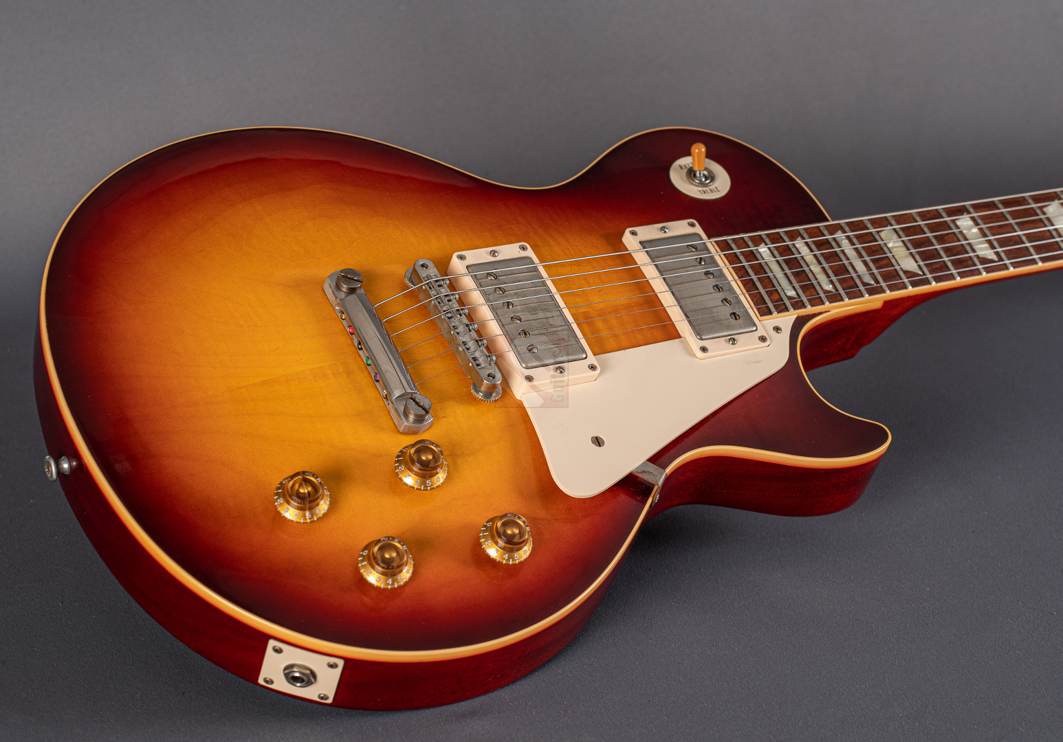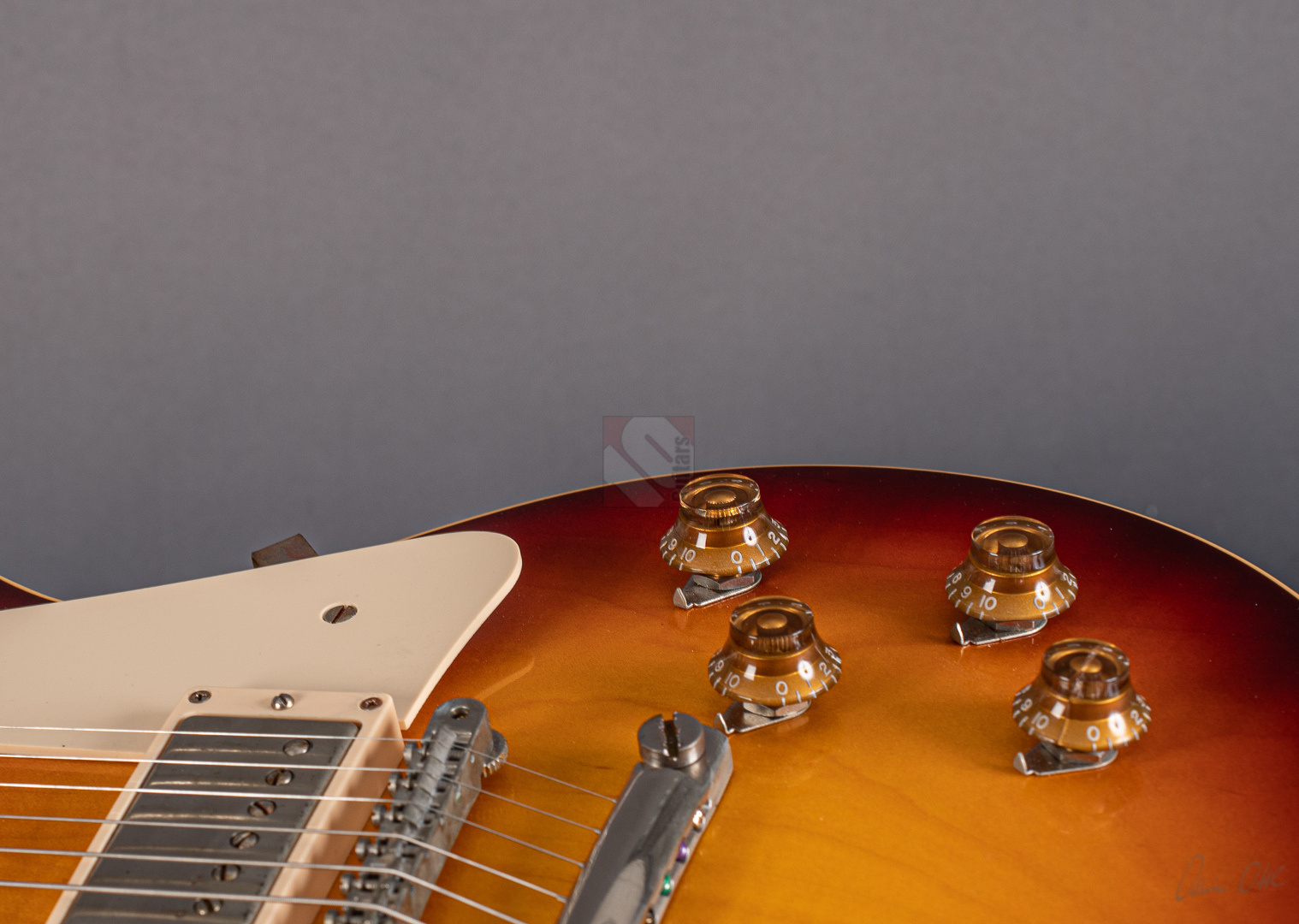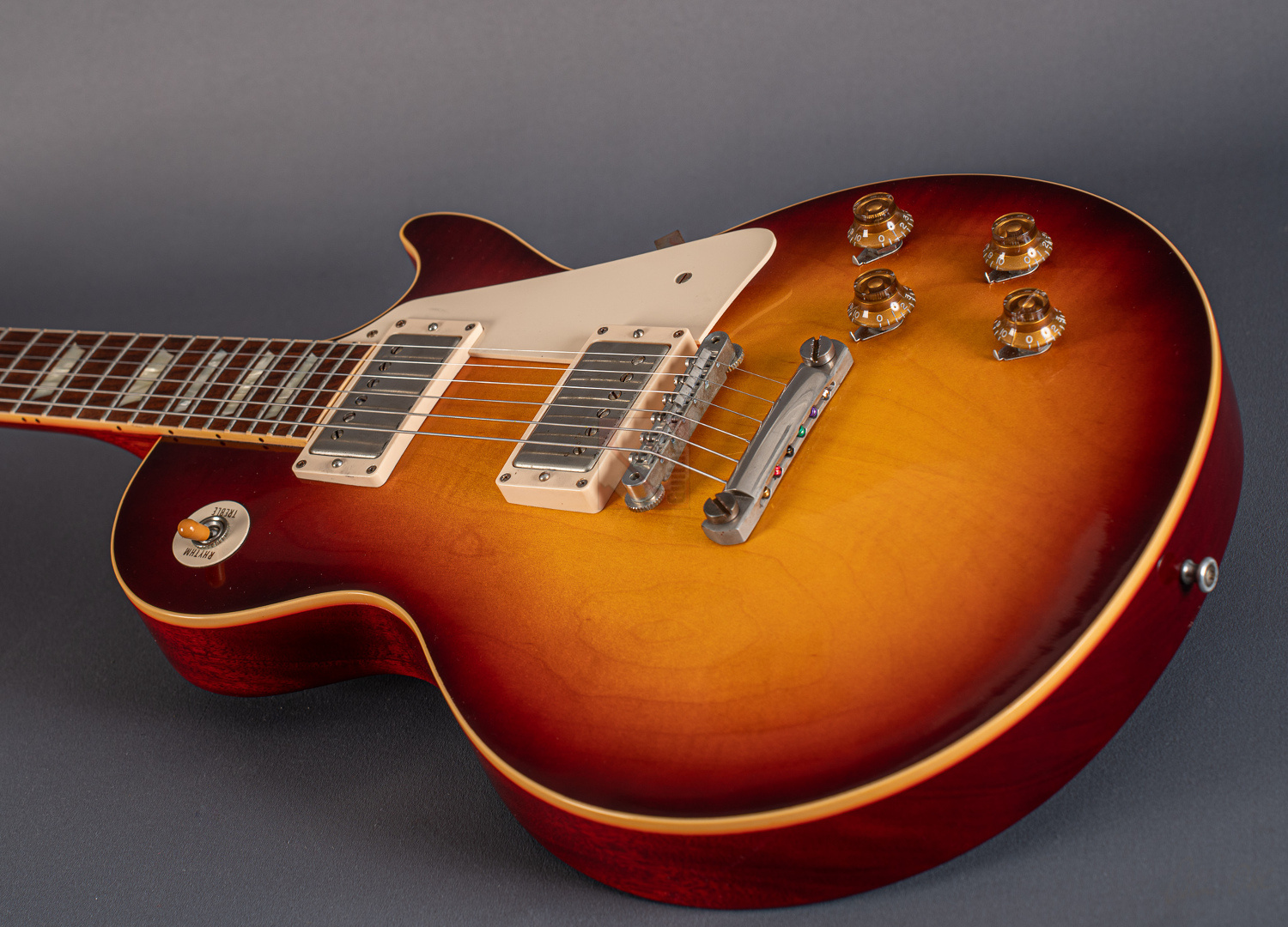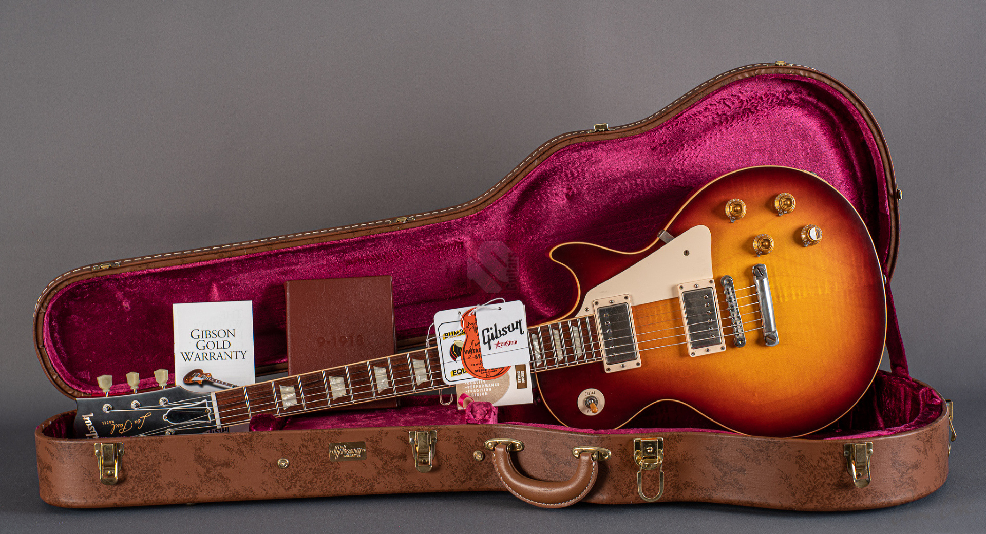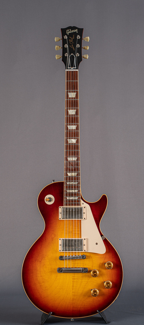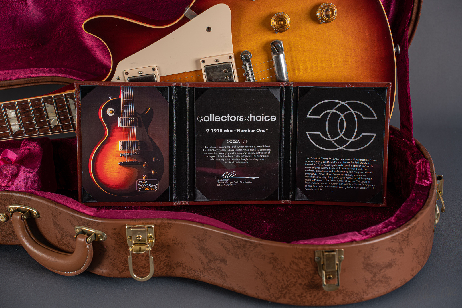 Wer auf der Suche nach einer Collectors-Choice mit bestem Preis-Leistungsverhältnis ist, kommt an der CC#6 "Number One" nicht vorbei. Diese besondere Les Paul ist eine exakte Replika der 59er Paula von Mike Slubowski, auch als "Number One" bekannt. Das Original gehört zu den wohl best erhaltensten Les Pauls aus dem goldenen Jahr 1959, weshalb auch das Aging der Replika relativ dezent ausfällt, um den Top-Zustand des Originals widerzuspiegeln. Weiterhin zeigt dieses Exemplar wunderschön dezente Ghost-Flames, wodurch es aus manchen Winkeln wie eine Plain-Top erscheint, und bezaubert mit seinem attraktiven "Non-Filtered Tobacco Burst". Überaus authentisch! Der Hals ist vergleichsweise etwas dicker als bei den meisten anderen CCs, annähernd wie ein 58er Hals. Aber schon aufgrund der Rounded-Shoulders keinesfalls zu fett und spielt sich super in Verbindung mit einem Idealgewicht von 3970 Gramm. Und der kräftigere Neck beeinflusst natürlich auch das fantastische Schwingungsverhalten der Gitarre! Am Amp zeigen die beiden Custombucker, wo der Hammer hängt. Schmatziger und mittiger Rocksound, bratend und kompromisslos! Hier bringt man sämtliche Röhren zum Glühen. Genauso stellt man sich die optimale Rock-Paula vor! ...und das Ganze noch aus Sammlerhand, sodass wir Euch dieses Prachtstück in absolutem Top-Zustand anbieten können.