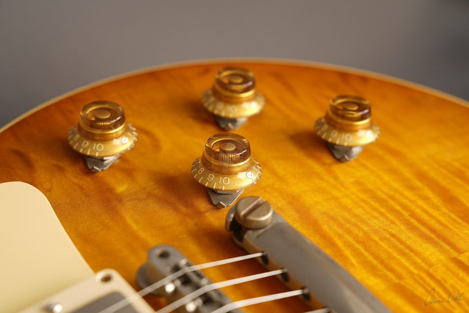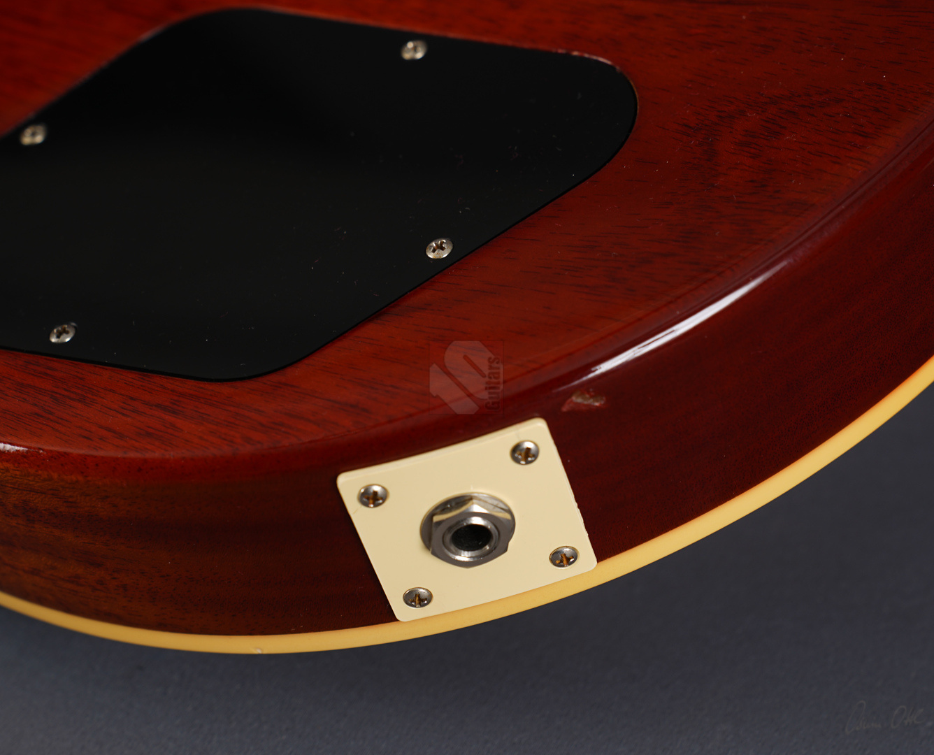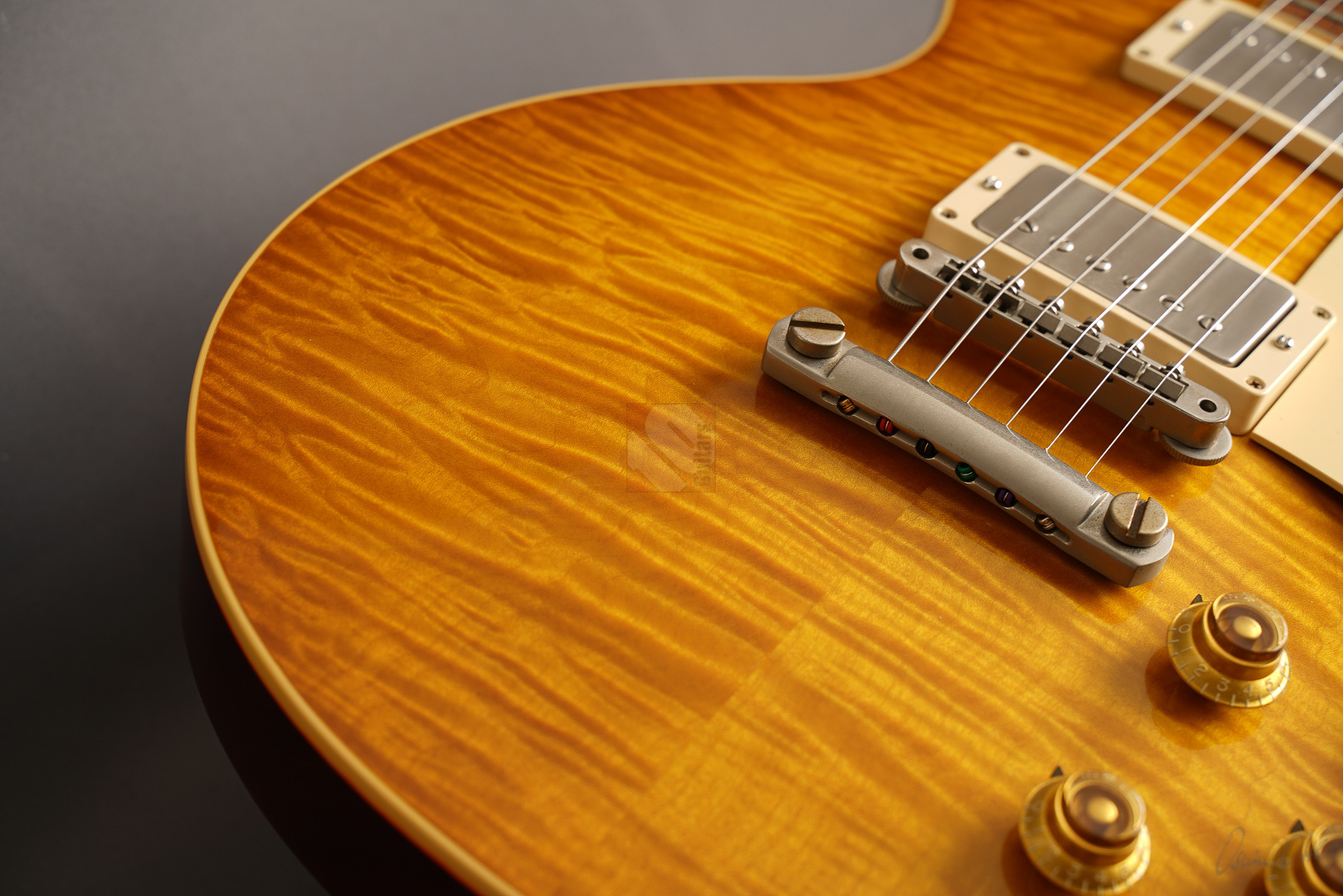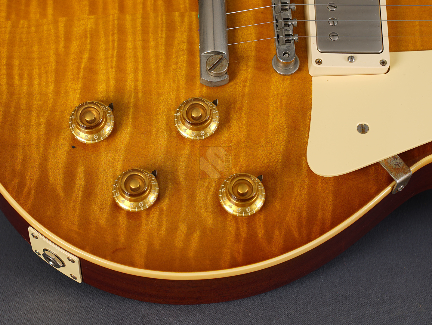Diese Les Paul lässt sich tatsächlich nur in Superlativen beschreiben! Sie wurde als One-Off/Handselected für einen japanischen Händler gebaut. Allein die Decke ist optisch schon mal der Killer! Dazu kommt ein Gewicht von lediglich 3630 Gramm und eine wunderschöne "Iced Tea"-Lackierung, die es eigentlich bei den True-Historics so gar nicht gab. Wem die einzigartige Optik, das super Gewicht und das spitzenmäßige Handling und Schwingungsverhalten noch nicht genügen, der bekommt bei den Pickups gleich das nächste Highlite, indem der Vorbesitzer noch ein Pärchen der wohl meistgesuchtesten und gelobten PAF-Replikas von Tom Holmes in diese Les Paul eingebaut hat. "Tom Holmes"-Pickups werden mittlerweile mit Preisen über EUR 1.500,- gehandelt, wenn man überhaupt das Glück hat, welche zu bekommen. Hier wurden ein H450 sowie ein H455 verbaut und wenn man die Gitarre spielt, merkt man sofort, warum diese Pickups so begehrt sind. Näher kann man einer echten Burst nicht kommen; schmatzend, differenziert mit diesem leichten Strat-Anteil und der Offenheit, die die echten Bursts legendär machte. Die originalen Pickups sind natürlich beiliegend. Und um den Superlativ abzurunden, wurden auch noch zwei echte "50's Sprague Bumble Bee"-Capacitors verbaut. ...und natürlich sorgen das super komfortable 59er Medium-Halsprofil und ein Traumgewicht von unter 3,7 kg für allerbeste Playereigenschaften. Bis auf einen kleinen Ding neben der Buchse (siehe Bild) und minimale Spielspuren befindet sich diese ganz besondere Les Paul in Top-Zustand. So können wir dem zukünftigen Besitzer nur von ganzem Herzen zum Erwerb einer solch fantastischen Gitarre gratulieren.