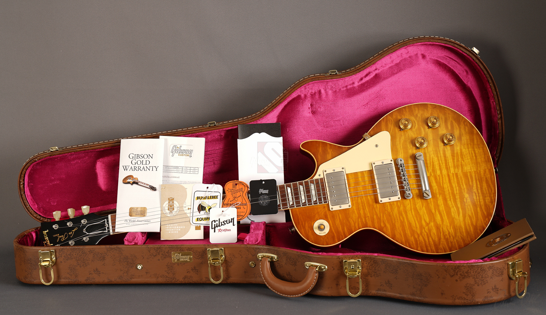 - Inklusive Original-Case, Zertifikat, Hangtags, Spec Sheet, originale Pickups, Bumble-Bees und Gurtpins