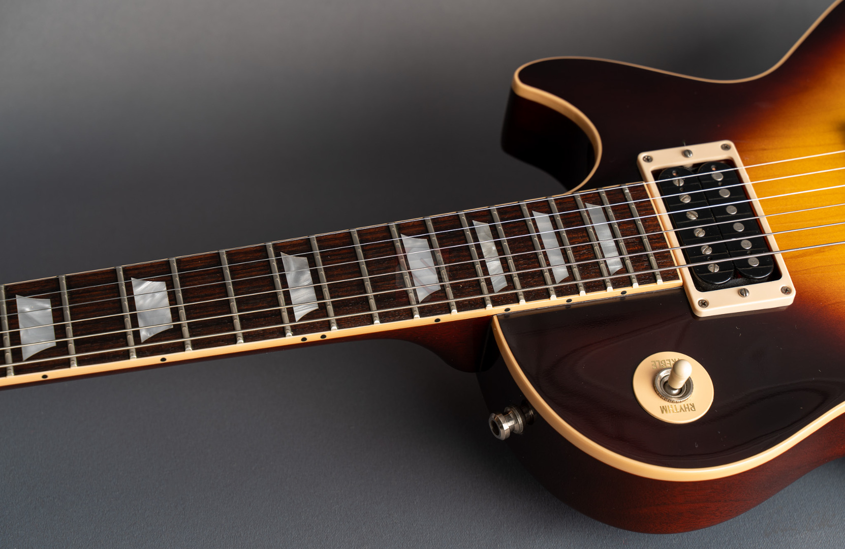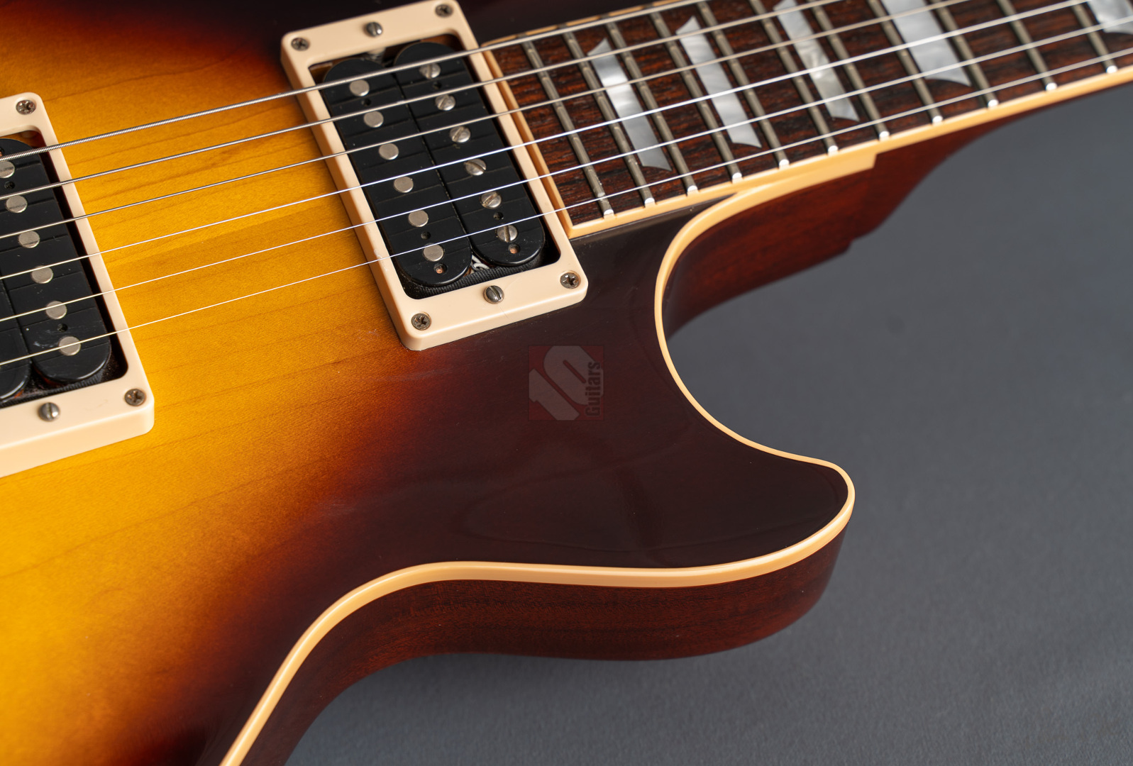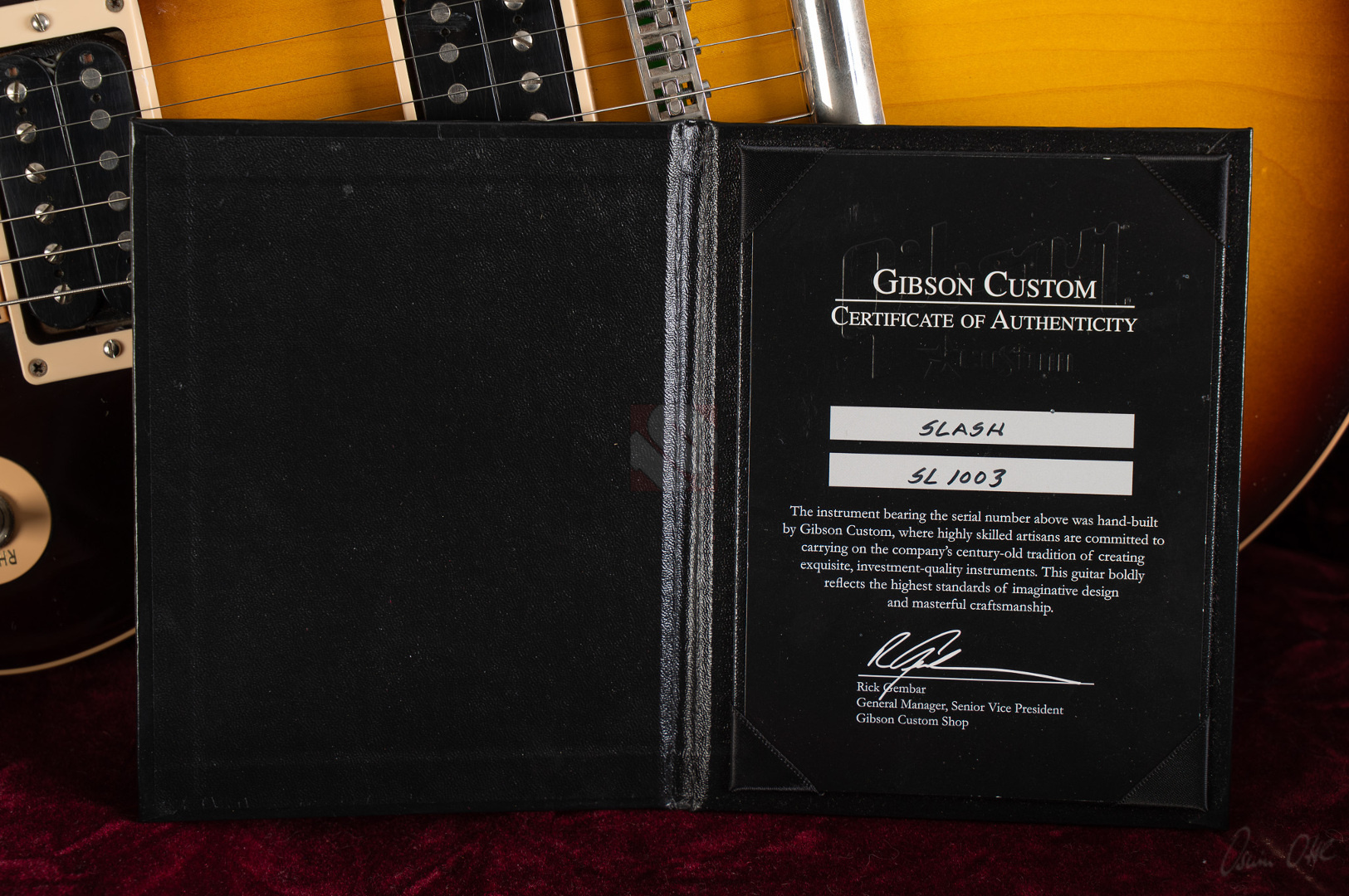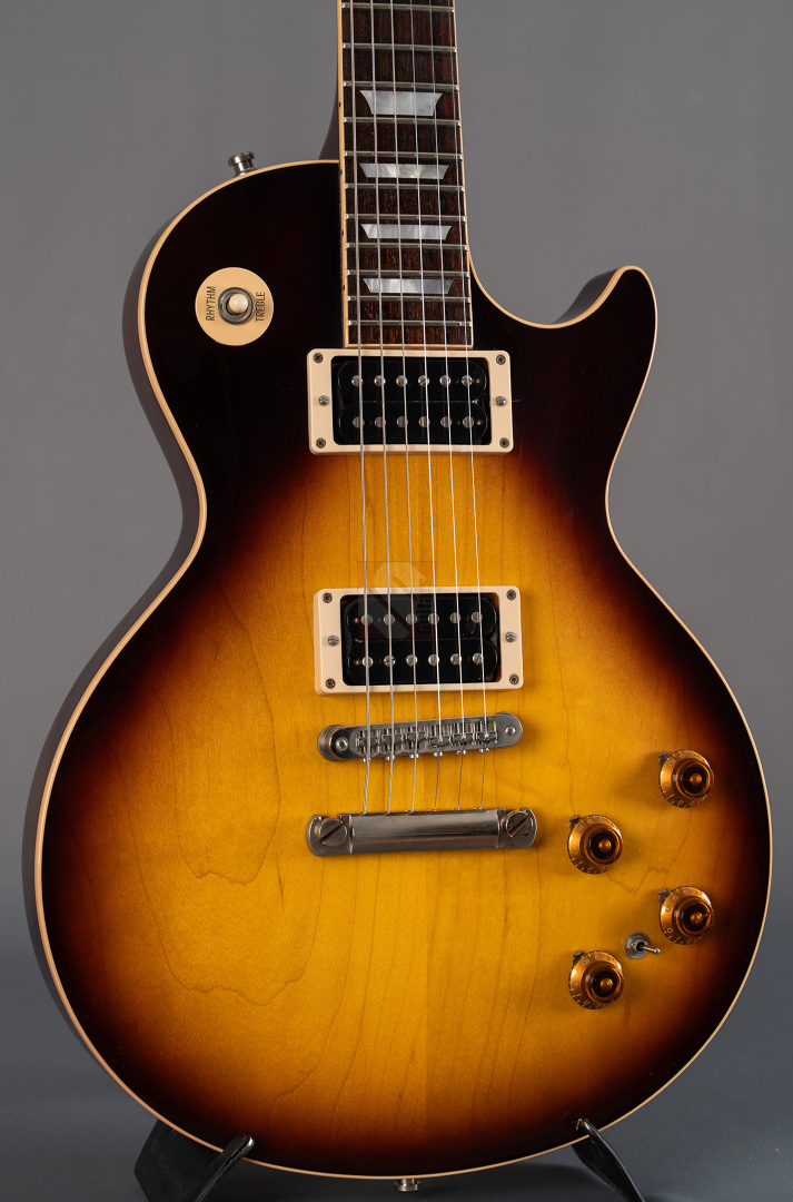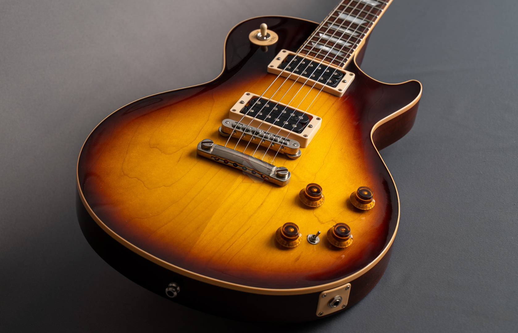 Slash aka Saul Hudson hat in seiner langjährigen Laufbahn viele Gibsons gespielt und dementsprechend gibt es auch vielerlei Signature-Reissues. Zu den interessantesten Gitarren aus dieser bunten Palette zählt für uns sicherlich die Gibson Les Paul Slash Signature Piezo. Eine Les Paul, die neben den fetten, schmatzigen und satten Tönen, für welche die verbauten Seymour Duncan "Alnico-II Pro"-Humbuckers verantwortlich zeichnen, auch noch über einen Piezo-Bridge-Tonabnehmer verfügt, der mittels Mini-Toggle-Switch geregelt wird und entweder alleine oder in Kombination mit dem Humbucker-Sound geschaltet werden kann. Und ganz ehrlich, dieser Piezo-Pickup ist wirklich eine Macht! Wir haben definitiv schon wesentlich schlechter klingende, echte Akustik-Gitarren gehört. Somit erhält man das Beste aus beiden Welten: den typischen, rockigen Slash-Sound und wunderbar sanfte, seidige Akustikklänge, sodass man außer für "Welcome in the Jungle" jederzeit auch für "One in a Million" bestens gerüstet ist. Weiterhin spielt sich der angenehme Medium-Neck mit den Rounded-Shoulders bestens. Dass darüber hinaus das dunkle Tobacco-Finish mit dem tollem Sunburst und sensationellem Farbverlauf so richtig gut aussieht, rundet das perfekte Gesamtpaket optimal ab. Wir können Euch die Gitarre bis auf minimale Spiel- und Gebrauchsspuren in Top-Zustand anbieten.