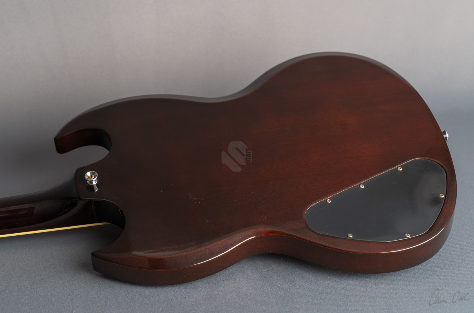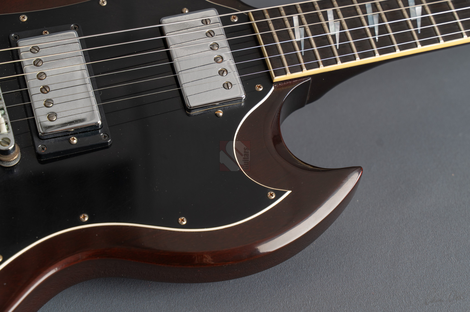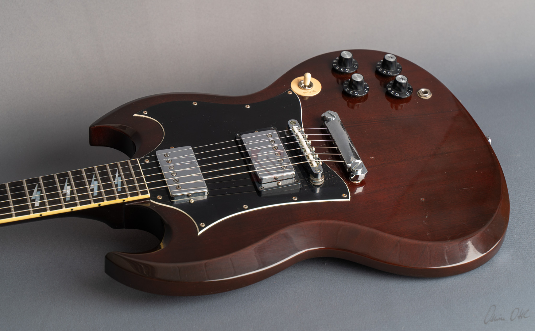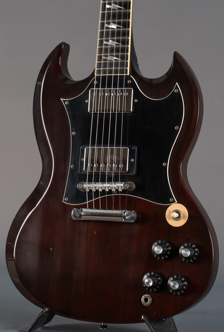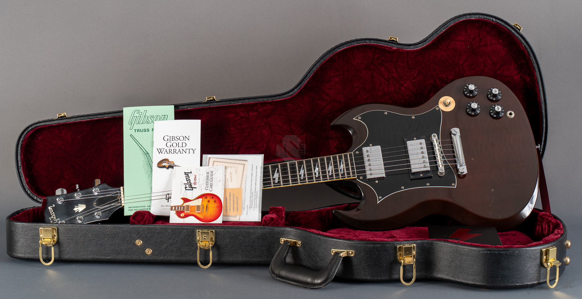 Was soll man zu dieser SG noch schreiben :-) ? Nur 200 Stück wurden von der AC/DC Thunderstruck Angus Young SG in der VOS Version gebaut. Das charakteristische daran sind die AC/DC lightning bolt inlays, das Slim Custom Angus Young neck profile, das Ebony Griffbrett und die beiden, nicht angeschlossenen Tone Potis, so wie der Meister sie auch live spielt. Die Pickups sind Pearly Gates Pickups, wobei der Steg-Pickup für Angus Young modifiziert wurde und mehr Output hat. Der Sound ist natürlich AC/DC pur! Die Gitarre stammt von einem Sammler und ist so gut wie ungespielt. Leider fiel dem Vorbesitzer etwas auf die Decke und dadurch hat sie die Macken auf der Decke. Diese Angus Young SG's sind so gut wie nicht zu finden und wenn, dann liegen sie zwischen 15.000,- und 20.000,- Euro. Wegen den kleinen Macken auf der Decke bieten wir euch diese Rarität zum Sonderpreis an. Die Bünde haben keinerlei Spielspuren.