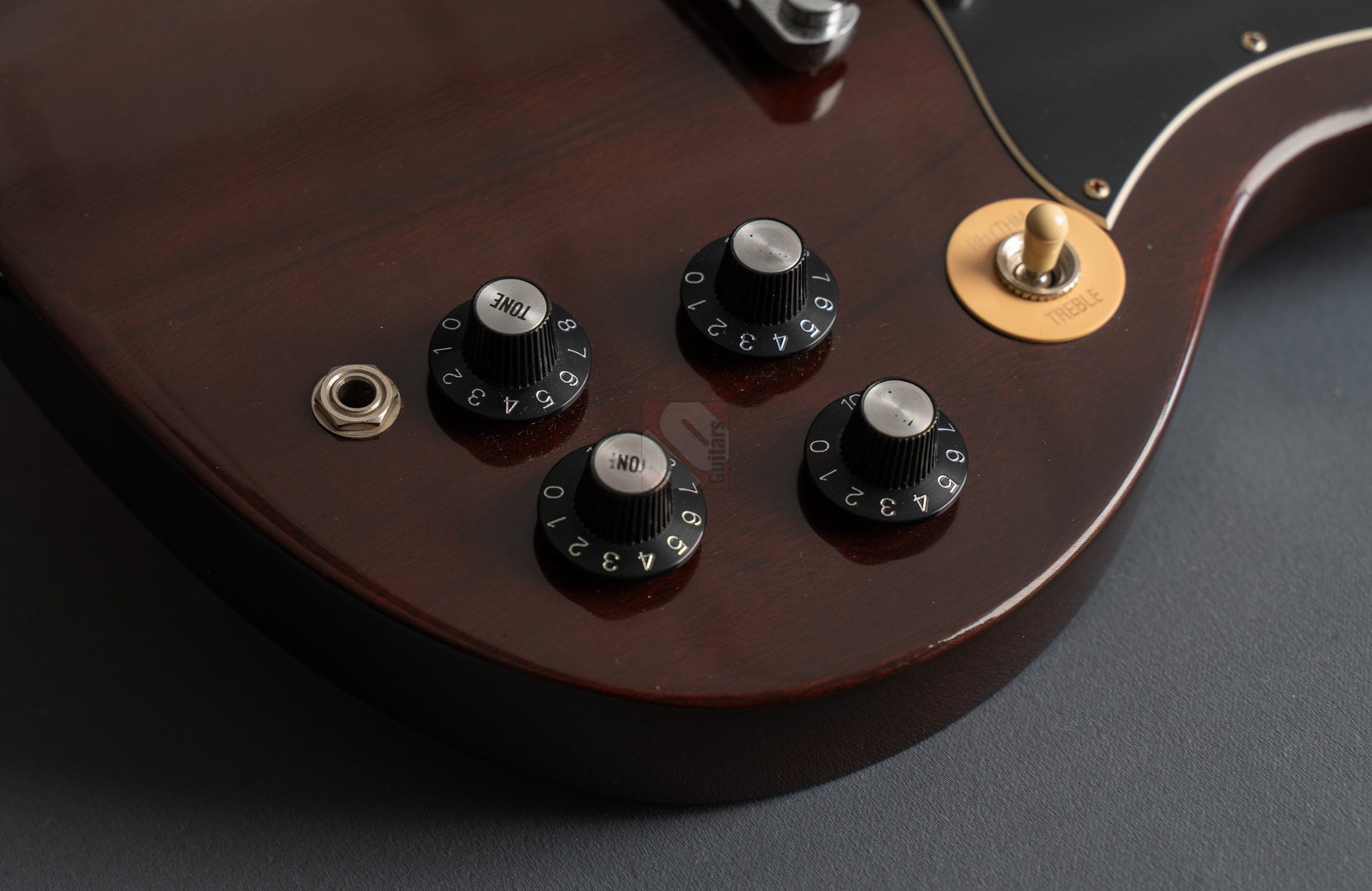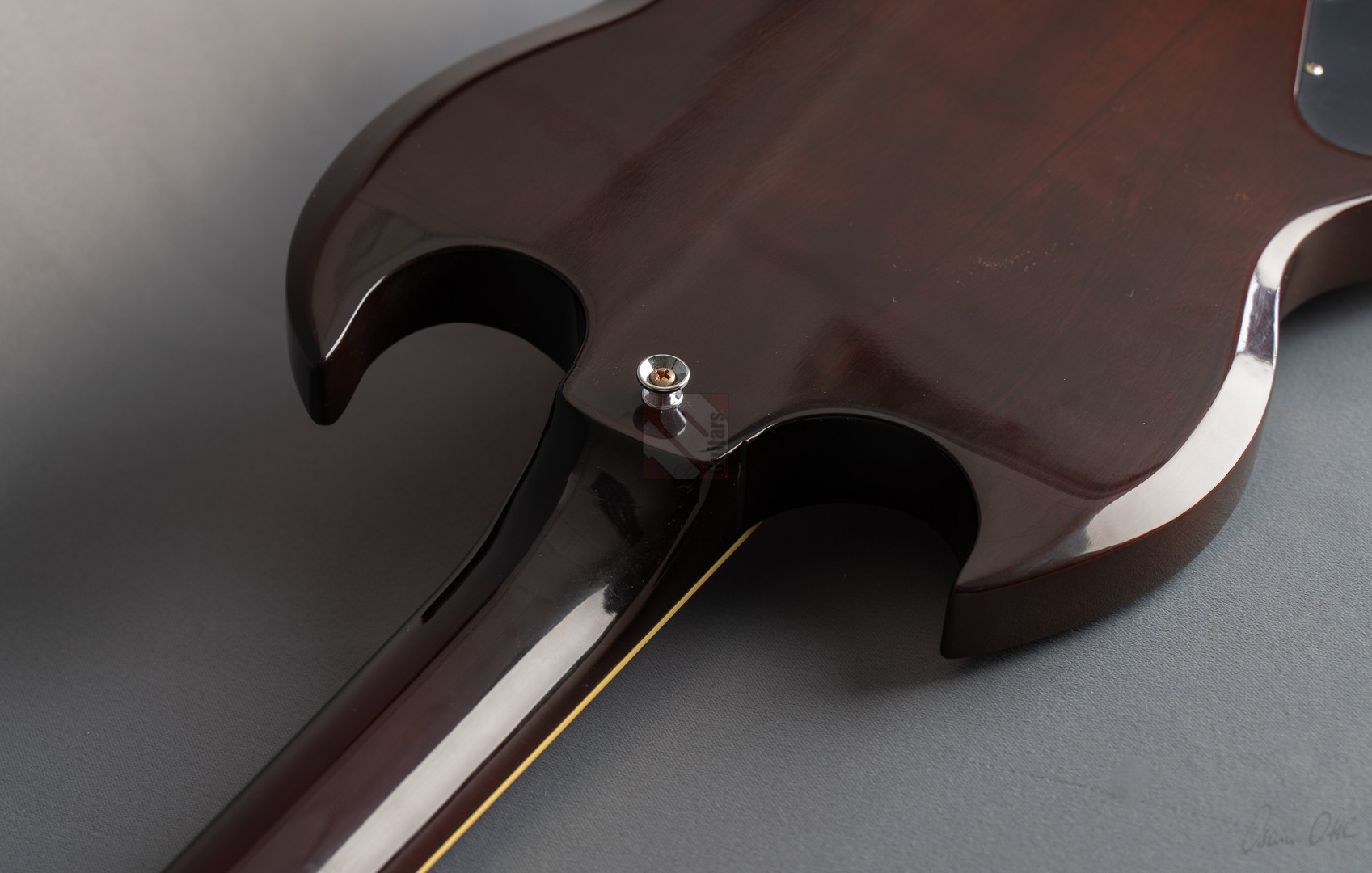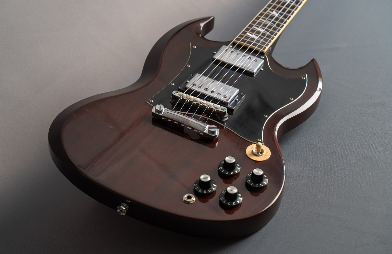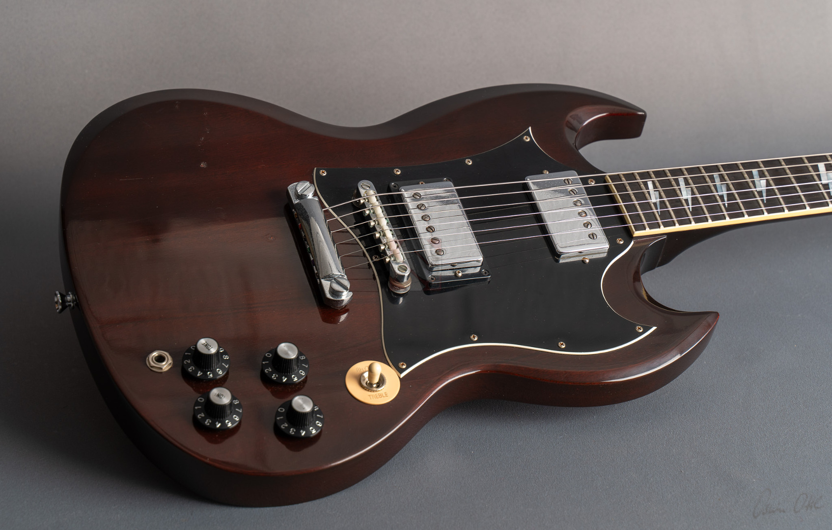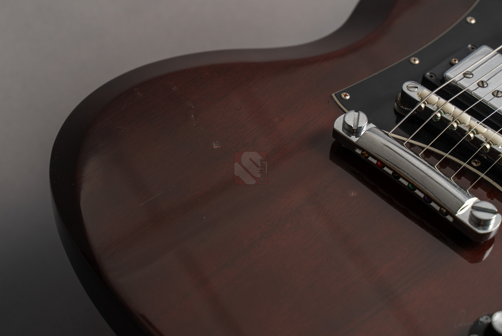 Was soll man zu dieser SG noch schreiben :-) ? Nur 200 Stück wurden von der AC/DC Thunderstruck Angus Young SG in der VOS Version gebaut. Das charakteristische daran sind die AC/DC lightning bolt inlays, das Slim Custom Angus Young neck profile, das Ebony Griffbrett und die beiden, nicht angeschlossenen Tone Potis, so wie der Meister sie auch live spielt. Die Pickups sind Pearly Gates Pickups, wobei der Steg-Pickup für Angus Young modifiziert wurde und mehr Output hat. Der Sound ist natürlich AC/DC pur! Die Gitarre stammt von einem Sammler und ist so gut wie ungespielt. Leider fiel dem Vorbesitzer etwas auf die Decke und dadurch hat sie die Macken auf der Decke. Diese Angus Young SG's sind so gut wie nicht zu finden und wenn, dann liegen sie zwischen 15.000,- und 20.000,- Euro. Wegen den kleinen Macken auf der Decke bieten wir euch diese Rarität zum Sonderpreis an. Die Bünde haben keinerlei Spielspuren.