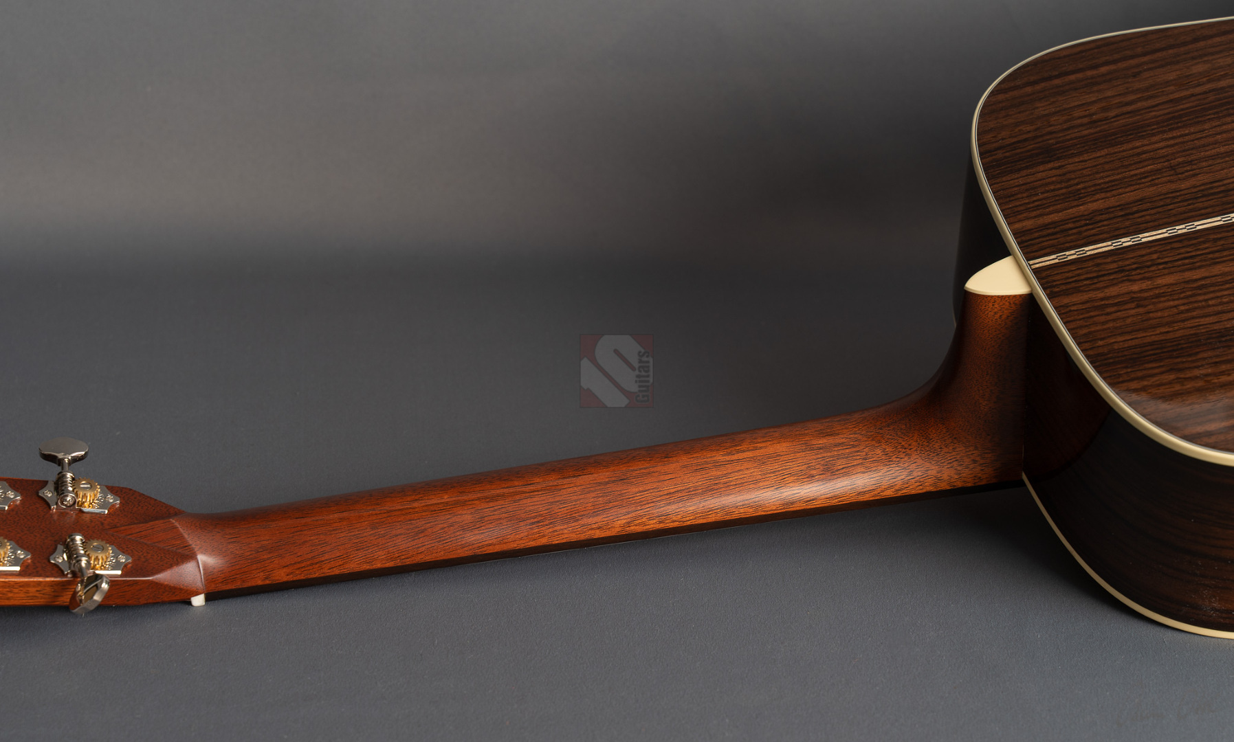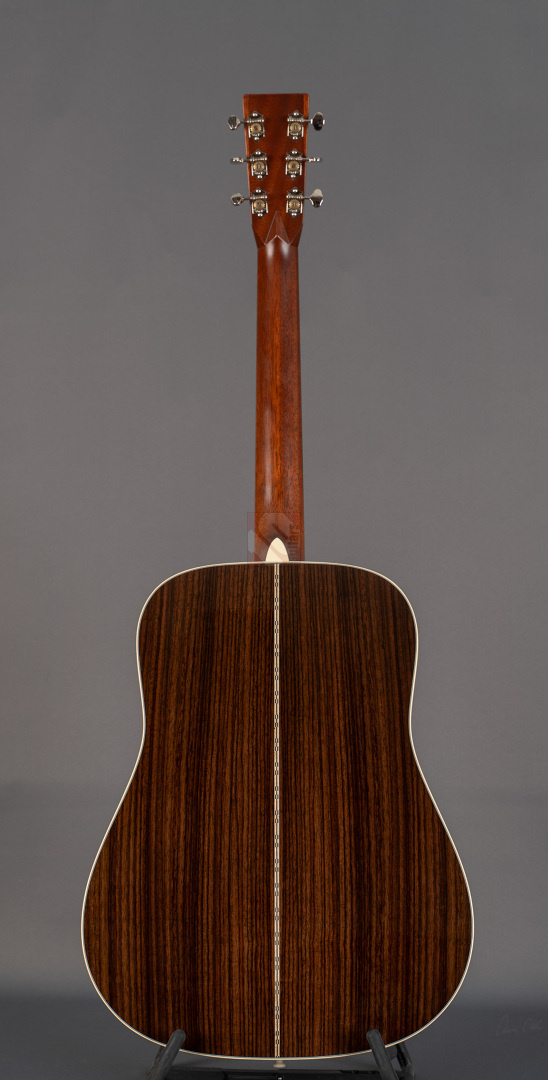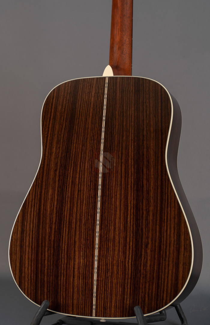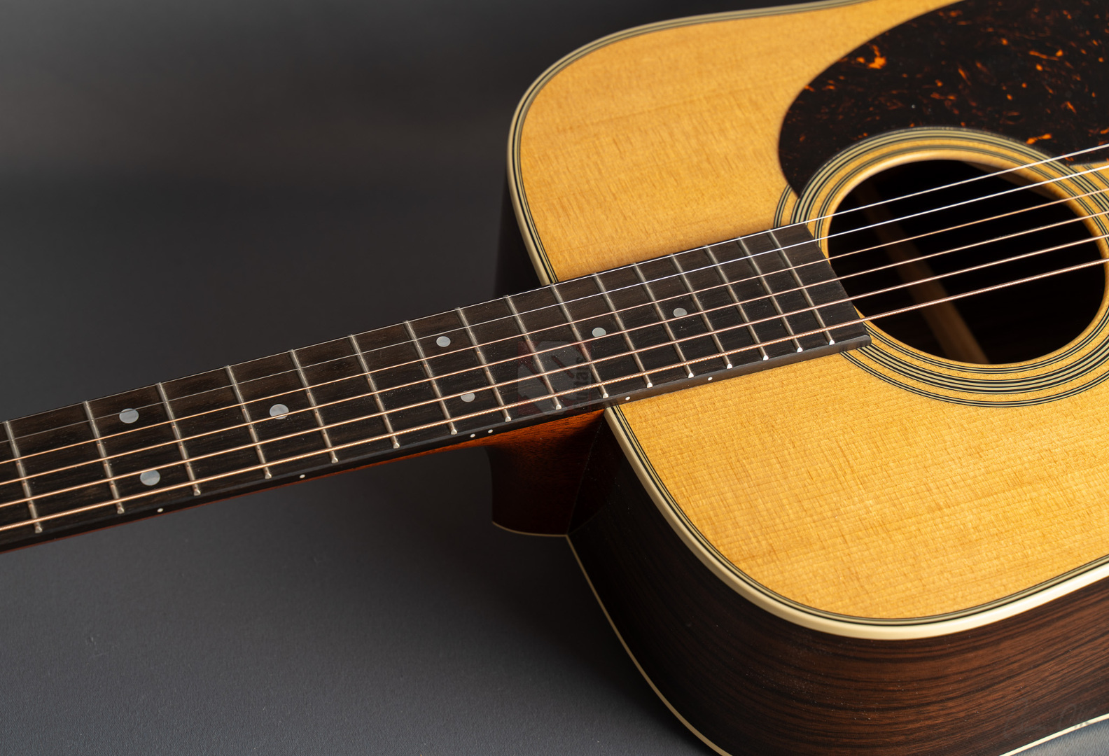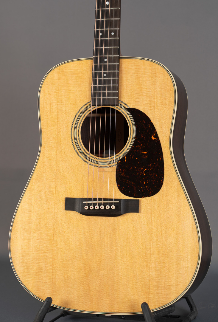 Mit einer Martin D-28 Reimagined holt man sich eine Dreadnought der höchsten Güteklasse ins Haus, die nicht nur Ohr und Hand, sondern auch das Auge auf klassisch-traditionelle Weise verwöhnen kann. Innovation steckt hier im Detail, indem diese im Jahre 2017 überarbeitete musikalische Ikone einige moderne Features erhielt. So blieben natürlich Elemente wie offene Mechaniken, eine getönte Decke und ein Pickguard aus künstlichem Schildpatt erhalten, doch zugunsten eines moderneren Gefühls erhielt die Gitarre ein neues Halsprofil sowie eine neue, klangmächtigere Deckenbeleistung. Die Konstruktion der Sitka-Fichtendecke besteht nunmehr aus einem "Forward Shifted X-Bracing", der Hals ist aus sortiertem Hardwood gefertigt und verfügt über eine matte Rückseite, das enorm komfortable "Low Oval"Profil und ein Griffbrett aus tiefdunklem Ebenholz. Sattel und Stegeinlage sind aus Knochen gefertigt, Boden und Zargen aus indischem Palisanderholz. Aber was uns natürlich immer am meisten interessiert, ist der Klang des Prachtstücks. Und hier schöpft man wirklich aus dem Vollen! Obwohl die Gitarre nicht viel gespielt wurde, entwickelt sie ein fantastisches Frequenzspektrum. Klassischer, ausgewogener und kraftvoller D-28-Sound. Diese Akustik ist laut und voluminös, doch trotz aller Durchsetzungskraft zeigt sie auch genügend Wärme, äußerst differenziert und präsent. Eignet sich sowohl für Fingerpicking als auch für Strumming. Wir freuen uns, Euch die Akustik in neuwertigem Zustand anbieten zu können.