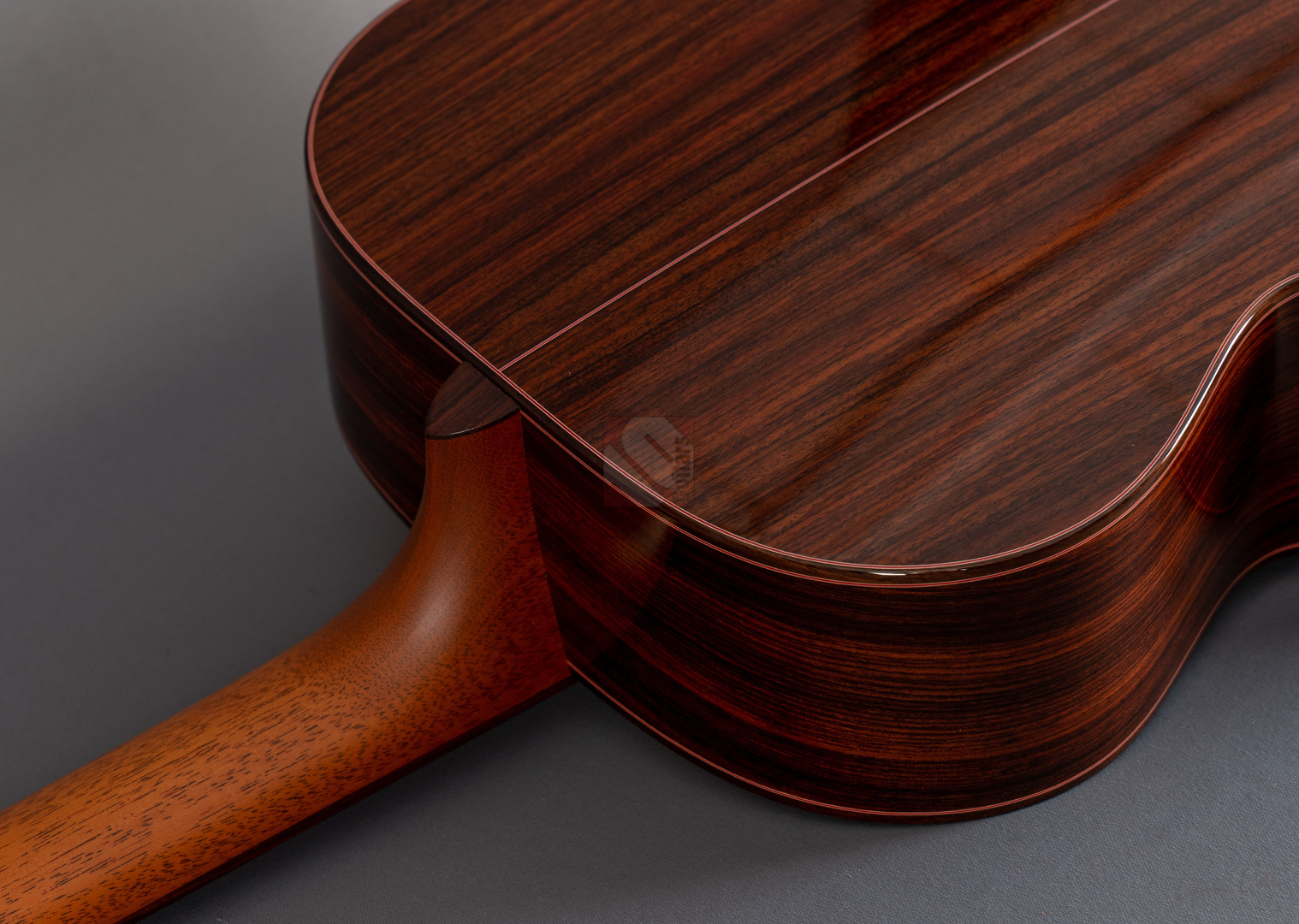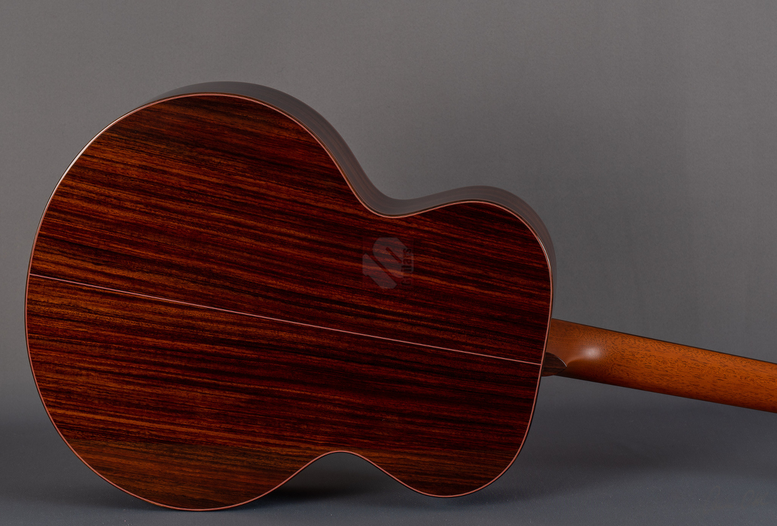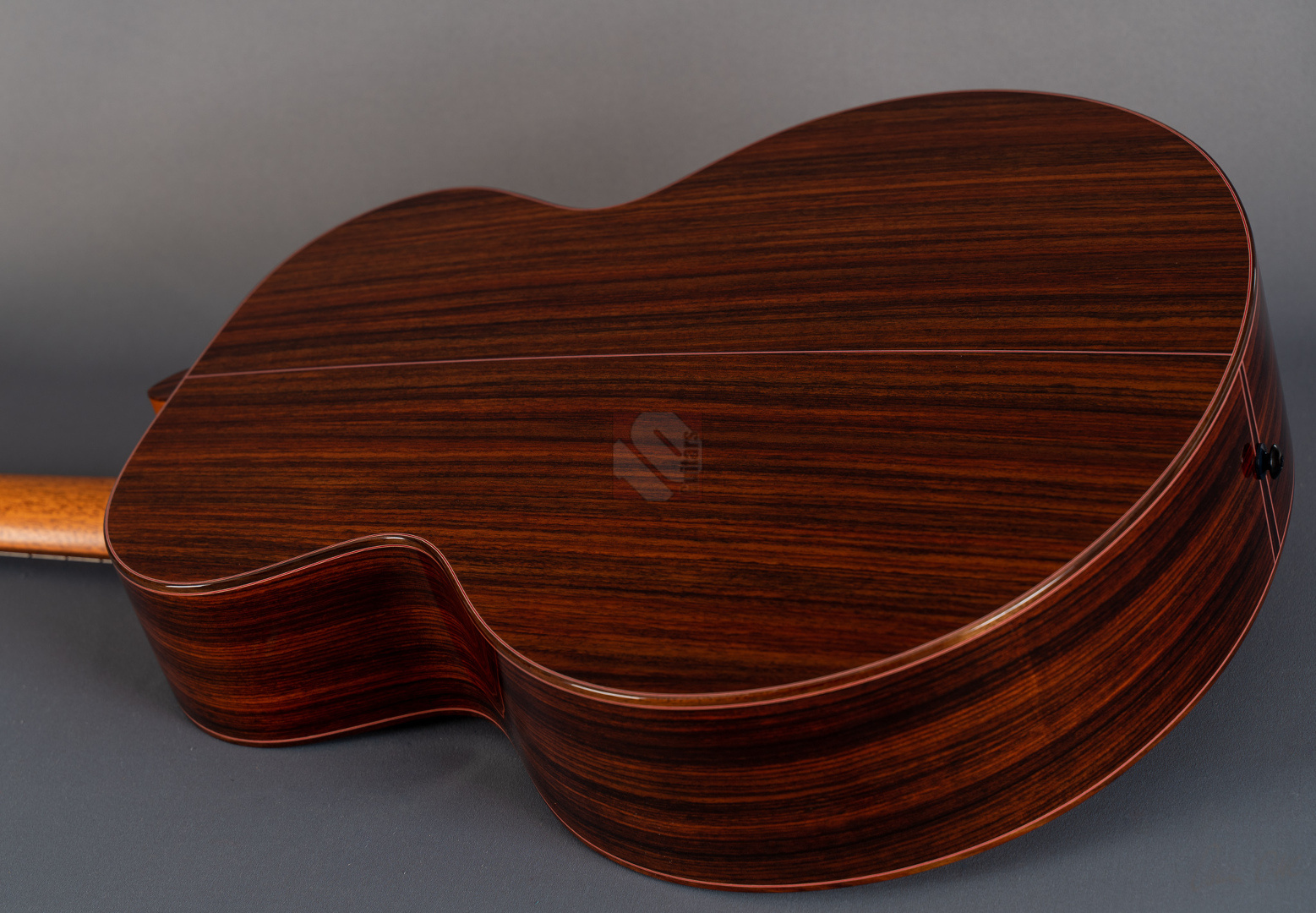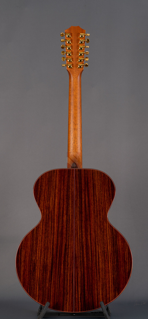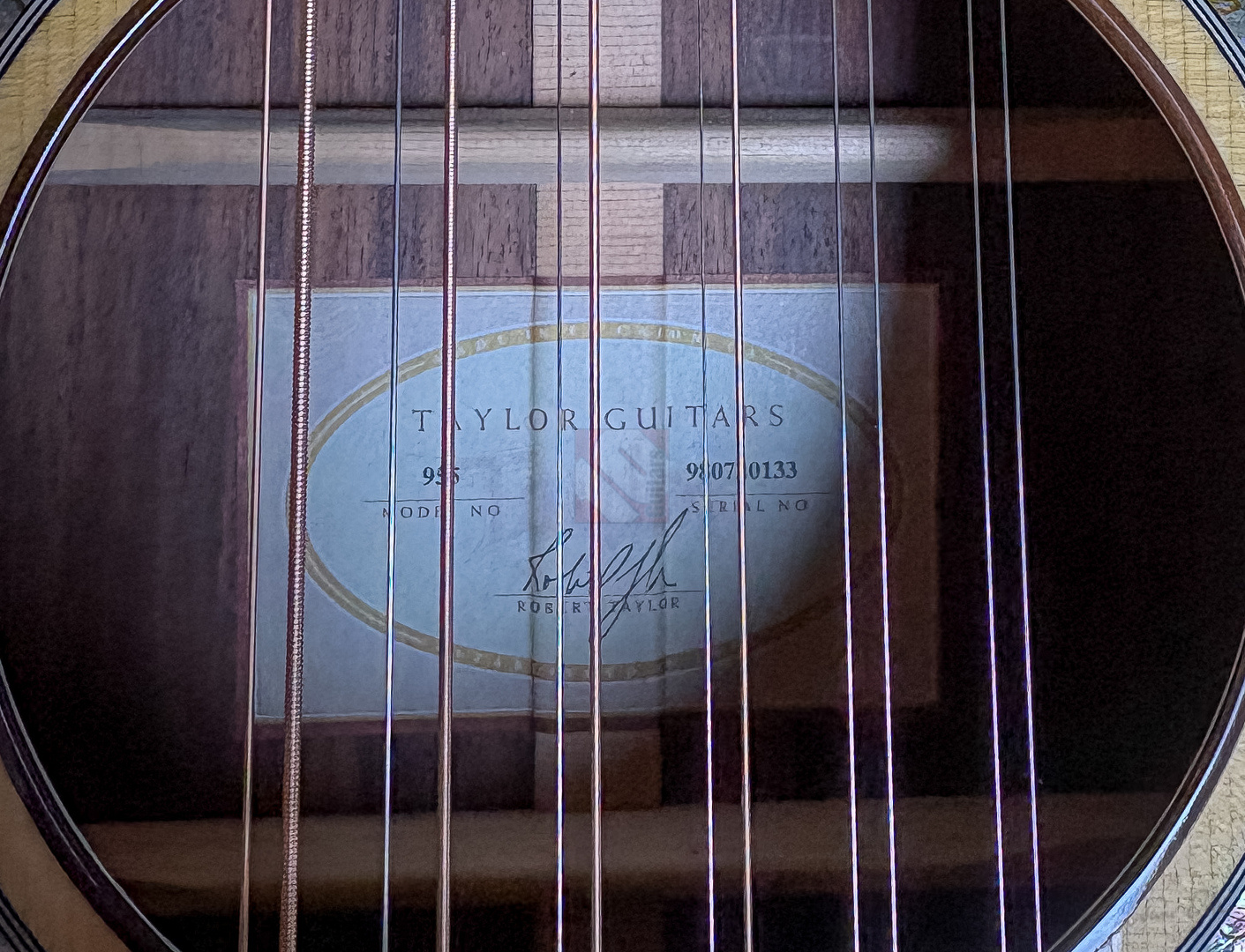 Nichts klingt so üppig wie eine 12-saitige Gitarre und mit einem einzigen Abschlag stellt man hier fest, dass es sich um ein Instrument handelt, das man nicht mehr aus der Hand legen will. Diese Taylor 955 12-String, die von 1992 bis 2003 produziert wurde, verfügt über einen Jumbo-Korpus, eine massive Sitka-Fichtendecke, Boden und Zargen aus indischem Palisander, einen Mahagoni-Neck sowie über Bridge und Griffbrett aus tiefdunklem Ebenholz. Letzteres wird verziert – ebenso wie Binding und Rosette – durch wunderschöne Abalone-Inlays. Ein Look zum Verlieben! Schon aufgrund der robusten Bauweise hält die 955 einiges an Volumen bereit. Dadurch kann sich der Ton angemessen entfalten, erscheint stark in den Mitten und im Bass und die Höhen sprechen äußerst schnell an. Klassischer, voller Klang mit satten, aber keinesfalls überbetonten Bässen in den tiefen Lagen, der immer seine brillante Klarheit behält. Dieser Effekt wird durch die Verdoppelung der Saitenanzahl nur noch verstärkt, sodass die Akustik auch ohne Verstärkung in all ihren klanglichen Nuancen weithin zu hören ist. Selten haben wir eine 12-String gehört, die den Raum dermaßen füllen konnte mit solch wunderbar schimmernden Obertönen. Ihr Hals spielt sich mit seinem angenehmen, medium V-Profil so komfortabel, dass man das Gefühl hat, es sei eine E-Gitarre. So freuen wir uns, dass wir Euch hier die perfekte Symbiose aus edelstem Look, bester Klangentfaltung und perfekten Playereigenschaften in so gut wie neuwertigem Zustand anbieten dürfen.