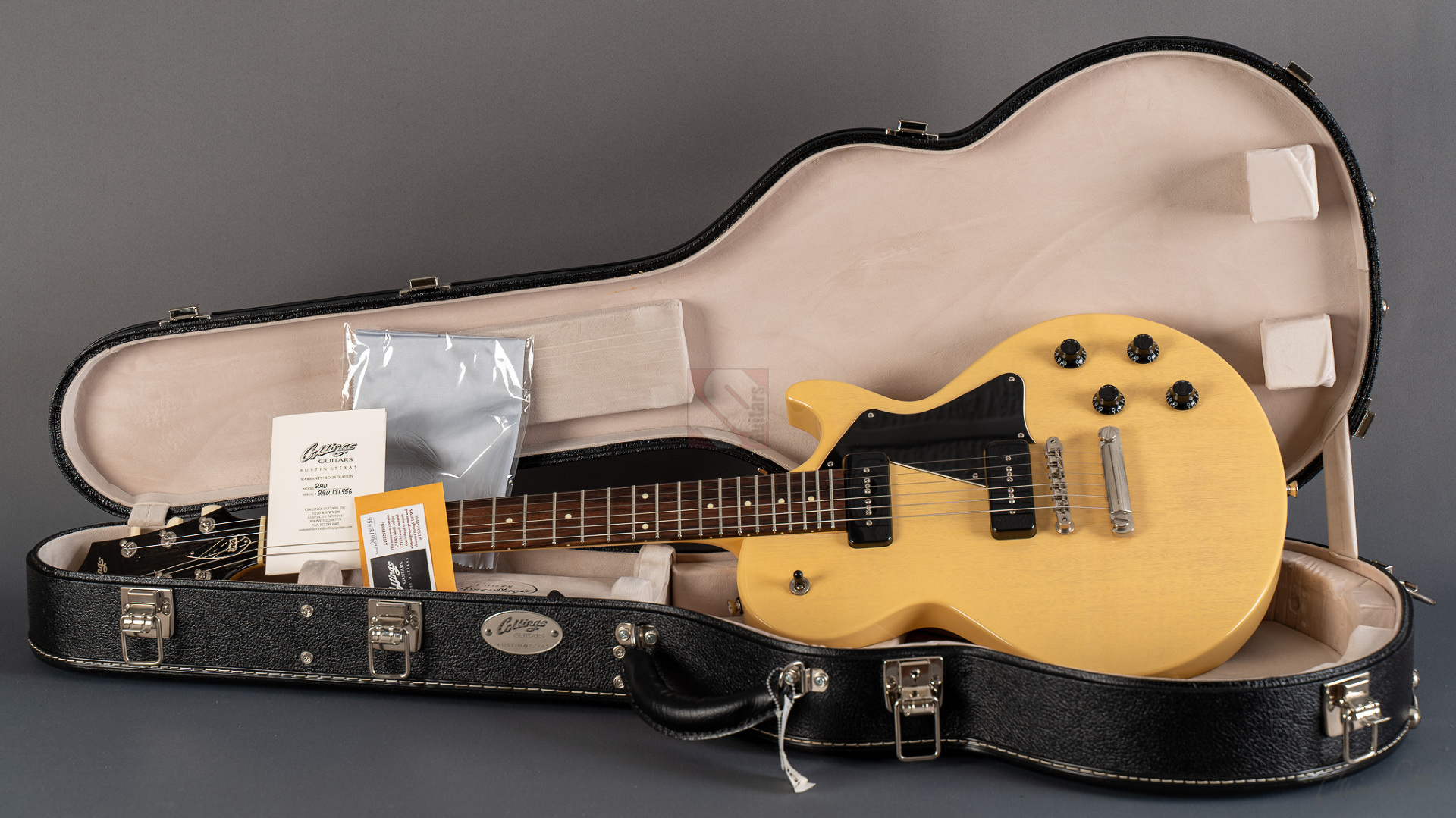 We are delighted to offer you this rare Collings 290 TV Yellow from 2018 in mint condition. An absolute dream for any guitar lover looking for uncompromising quality, vintage vibe, and modern precision. The Collings 290 is Collings' interpretation of the classic Junior/Special shape, built to the highest quality standards. Near mint and virtually unplayed! The two hand-wound Lollar P90s deliver classic rock and blues tones with wonderful dynamics and punch. All this is supported by the guitar's above-average resonance. The extremely comfortable Medium 59 neck profile plays very comfortably with the perfectly dressed frets, which show no signs of wear. Made in Austin, Texas – built with the highest precision and attention to detail. Not to be missed!