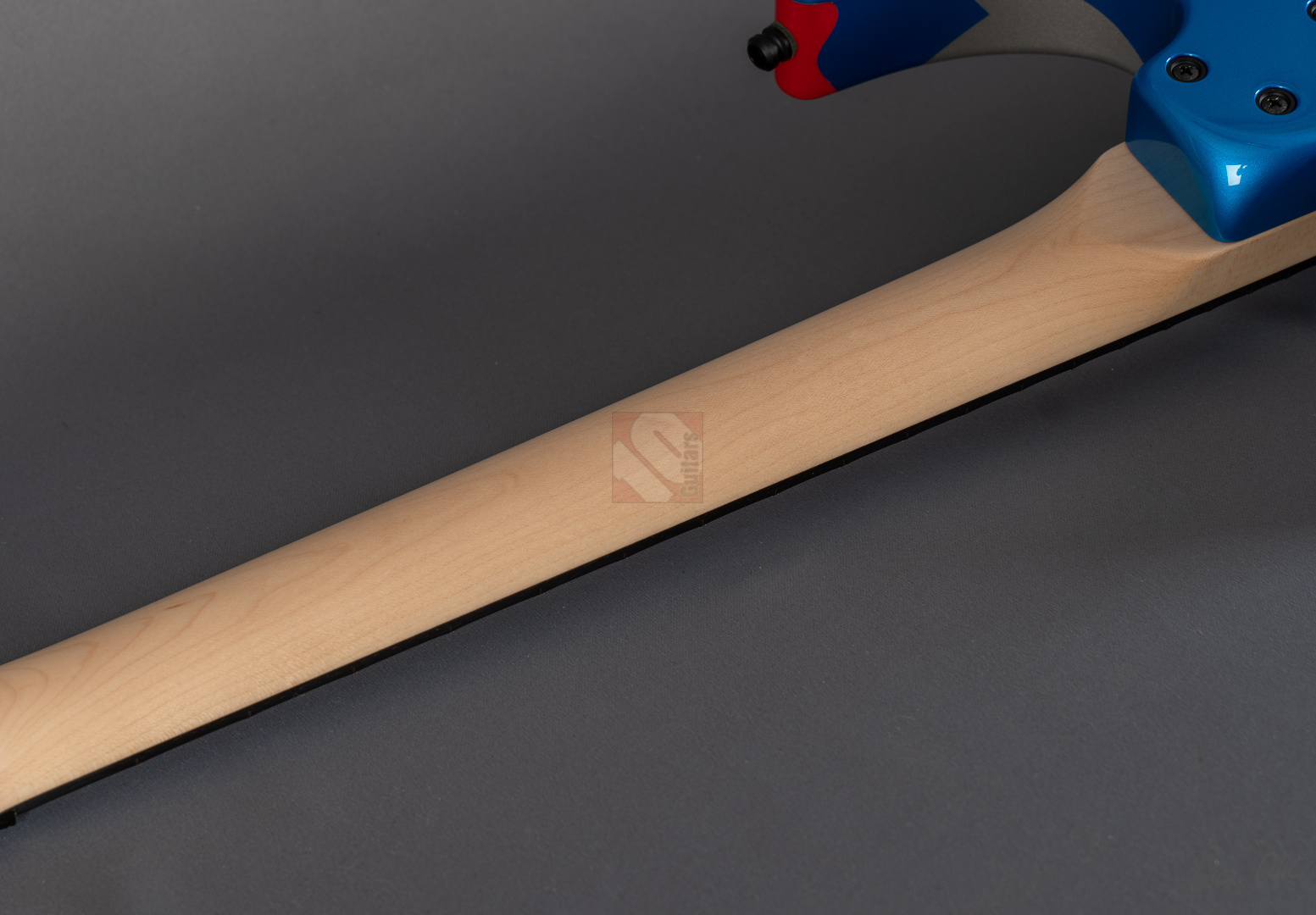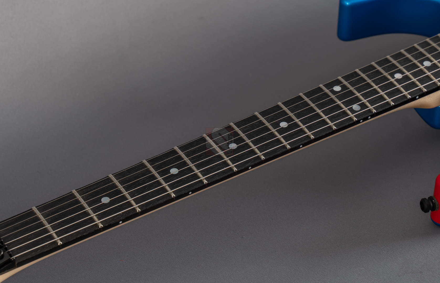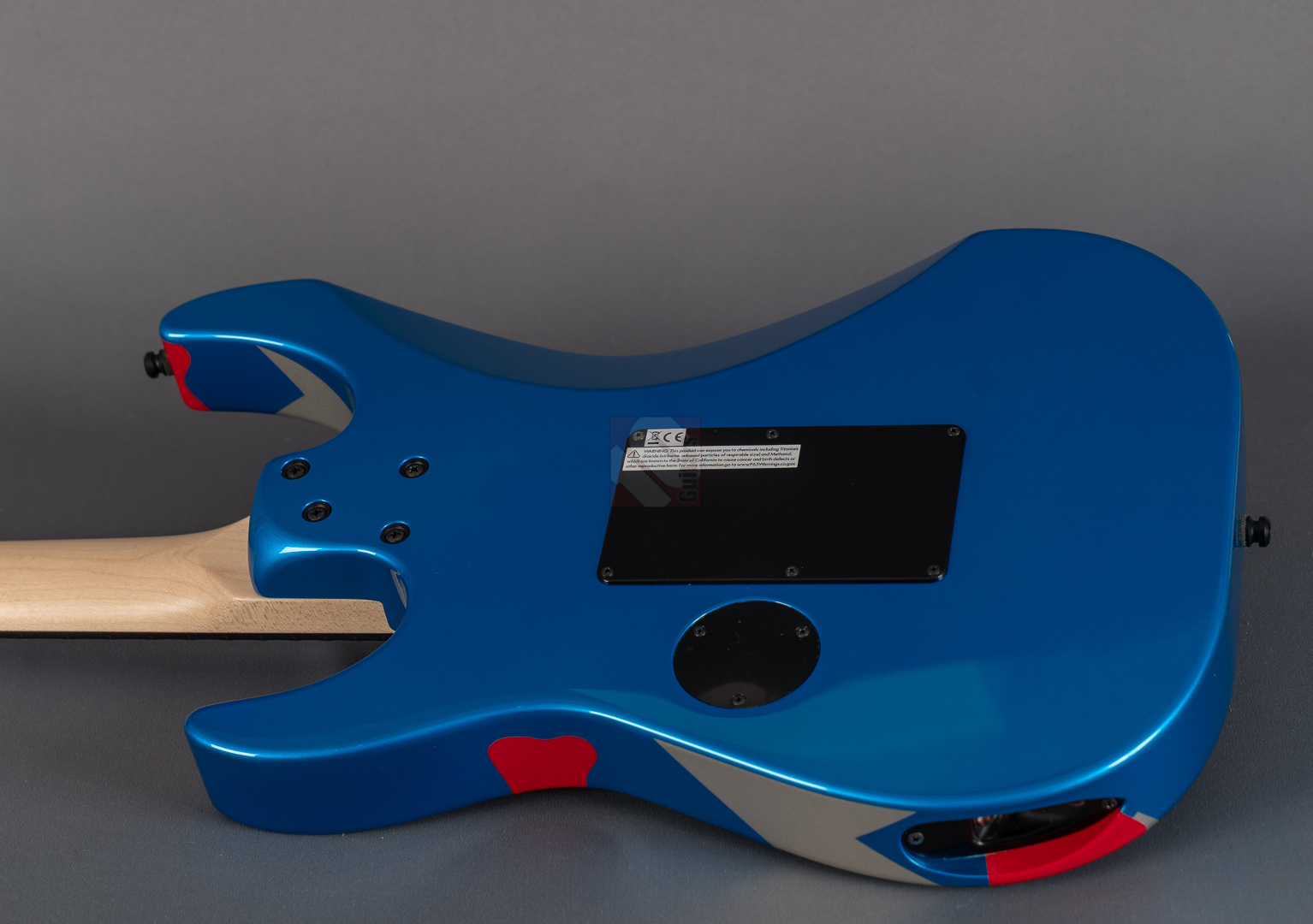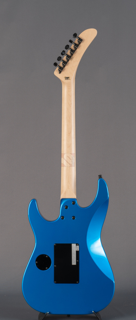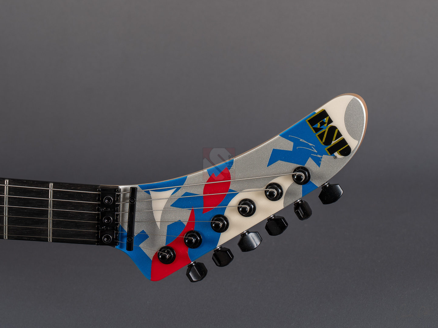 We're thrilled to offer you a guitar that's truly rare. Especially with the "Blue Camo" finish it's produced in such limited numbers that each one disappears almost immediately after hitting the market. The ESP George Lynch Kamikazes are synonymous with the Hair Metal era and the 80s/90s like few other guitars. Very few are made in "Blue Camo" and what makes this one so special is that it's in mint condition. An absolute must-have for any Hard Rock and Heavy Metal fan! It features a solid maple body and neck, an ebony fretboard with mother-of-pearl dot inlays, black Gotoh tuners (sealed diecast), a beautiful gloss finish with the characteristic Kamikaze motifs and, as expected, the kind of craftsmanship that only the Japanese ESP Custom Shop can provide. These guys work with such meticulous attention to detail and precision that it's a real pleasure to watch. But all Hair Metal fans will also get their money's worth in terms of sound and playability. A slim neck with the superb "GL Original U" profile and a 305 mm radius, 22 "Extra Jumbo" frets and a Floyd Rose tremolo system that never goes out of tune. You could even get your blonde highlights done while you're doing a dive bomb or a Metal riff. A fat, articulate sound with enough mids and highs to make your Marshall amp sizzle. Beautiful clean sounds at the neck position and the richest Metal riffs in the bridge position! It doesn't get any better than this! The whole package is thoughtfully complemented by a push/pull pot that allows you to adjust the volume and also serves as a pickup selector. This absolute highlight of Japanese guitar craftsmanship is not to be missed!
