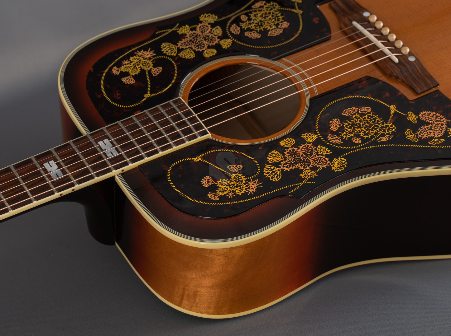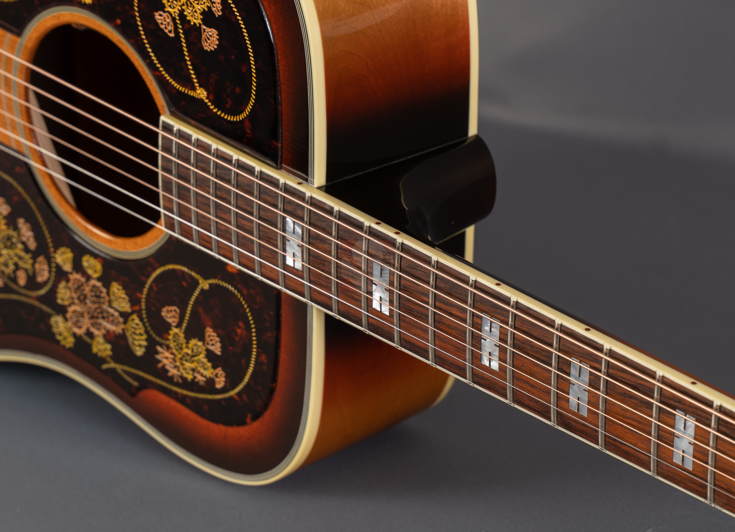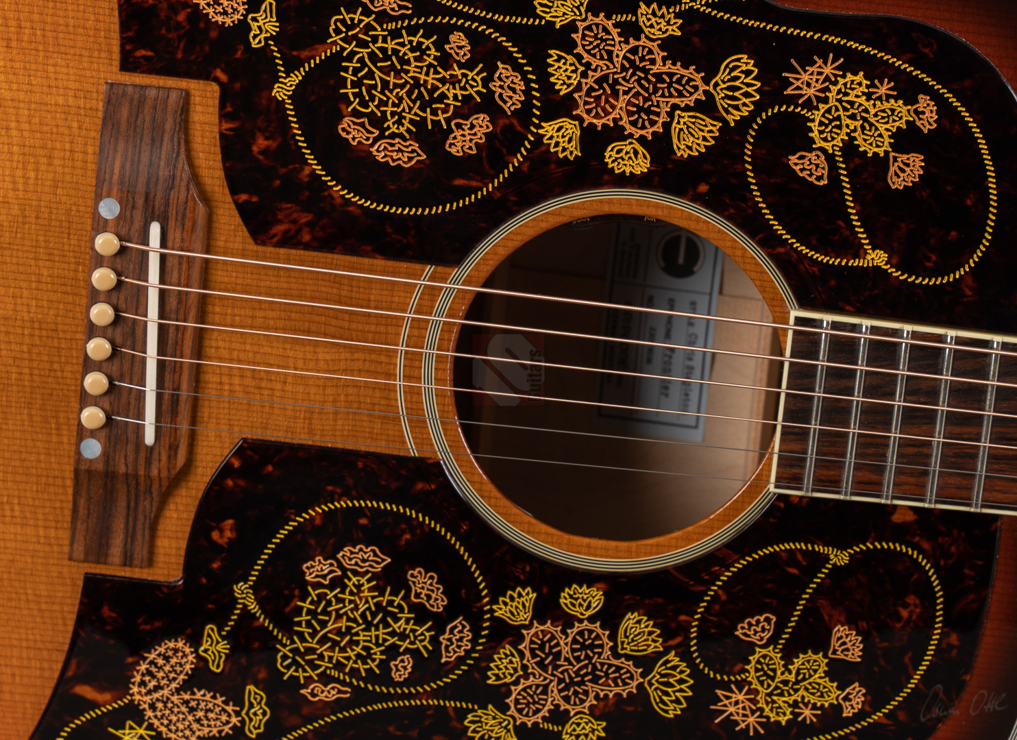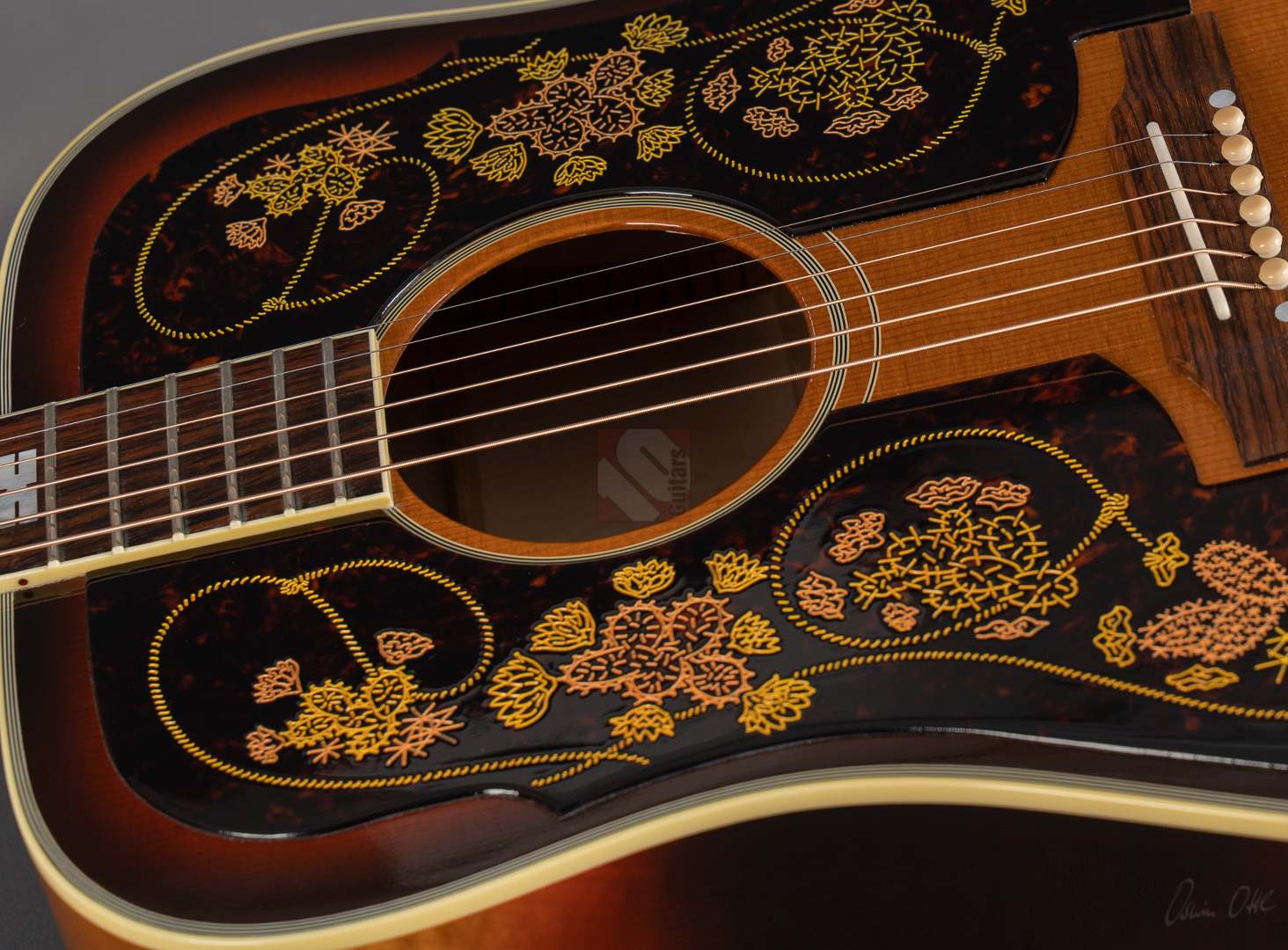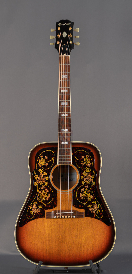 Chris Stapleton from Kentucky is one of the most popular Country musicians and is highly respected as a singer, songwriter and guitarist. After winning numerous Grammy awards, Academy of Country Music awards and Country Music Association awards Gibson is now honoring him with his own signature model. The Epiphone Frontier, made in the USA, is the perfect partner for his soulful voice. The Chris Stapleton Frontier features a thermally aged Sitka spruce top, maple back and sides and double engraved pickguards with the lariat and cactus motif of the classic Frontier. Sonically, this guitar is pure Country! Whether for fingerpicking or strumming, it leaves nothing to be desired in terms of sound. Open, differentiated sound and superb response. The experienced luthiers in Bozeman, Montana, produced only 300 specimens of this very special limited edition. The guitar is equipped with an L.R.Baggs VTC pickup and comes in a special case decorated with ornaments. We are pleased to offer you this exceptional instrument in mint condition with all case candies.