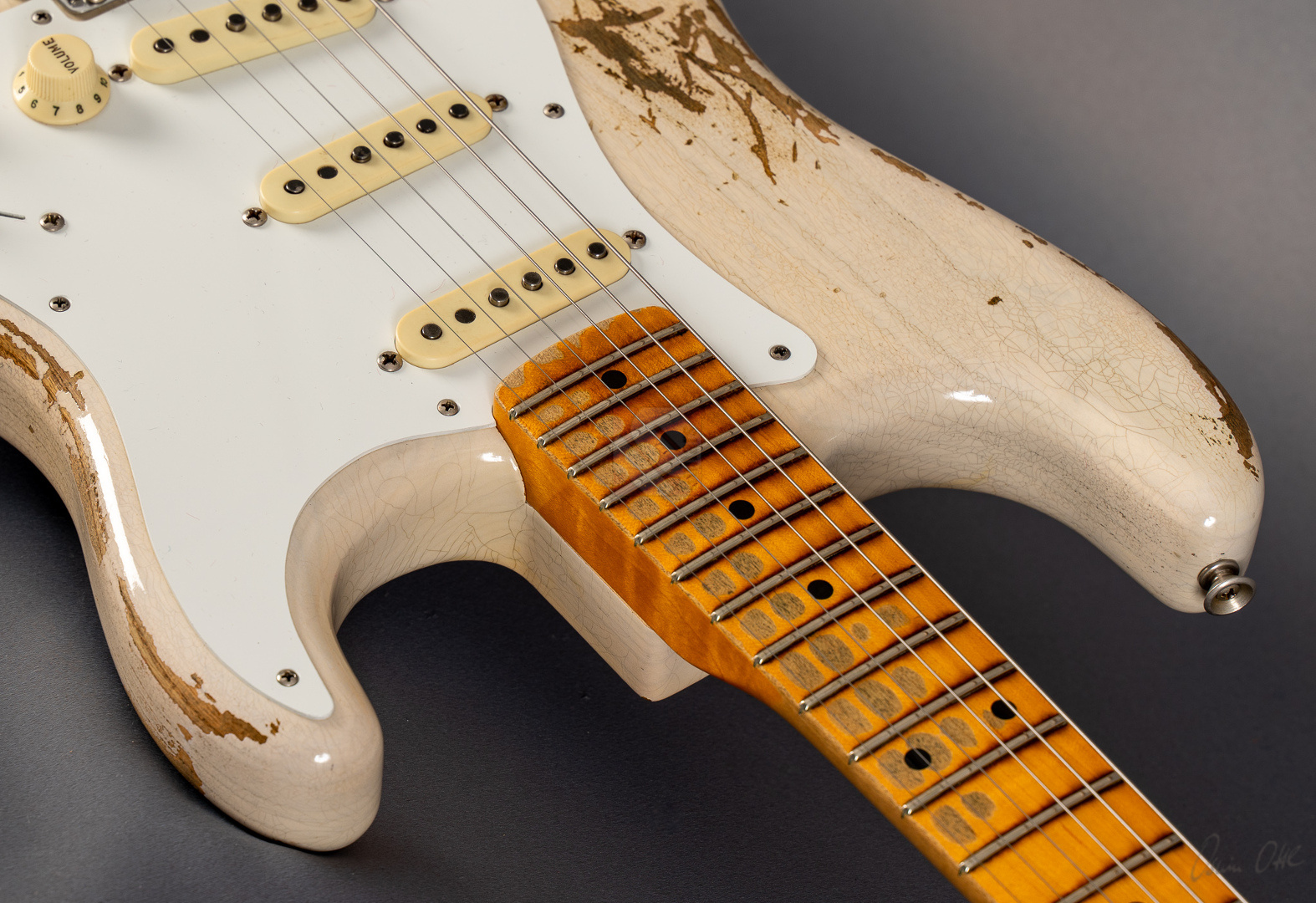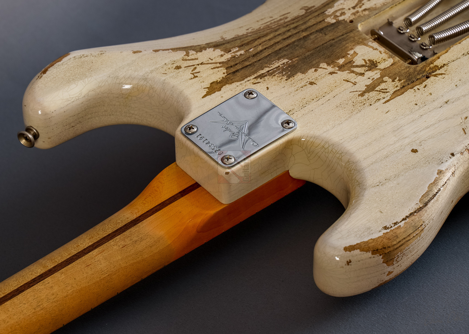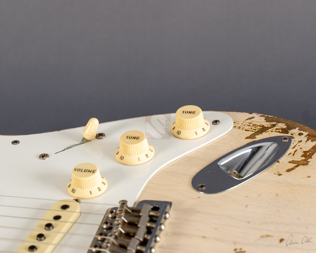 Everything about this '58 ash Strat in “Aged White Blonde” is just right, ...look, sound, feel and price. The Heavy Relicing is perfectly done here. Super authentic look with a beautifully grained body under the White Blonde. The neck is simply a dream. Very nicely grained back with a silky matte, woody feel. 6105 frets and a 9.5" fretboard radius for a modern feel and the "59 Esquire C" shaping fits perfectly in the hand. A nice, strong neck that is by no means too thick. Even played dry the superb resonance is striking and the "Josefina Handwound Fat 50s" pickups transfer this to the amp in the best possible way. A bell-like, balanced tone with a wide frequency spectrum and great attack. Anyone looking for the perfect ash maple neck Strat will be delighted with this one. The Stratocaster is in absolutely top condition, including strap and case candies.