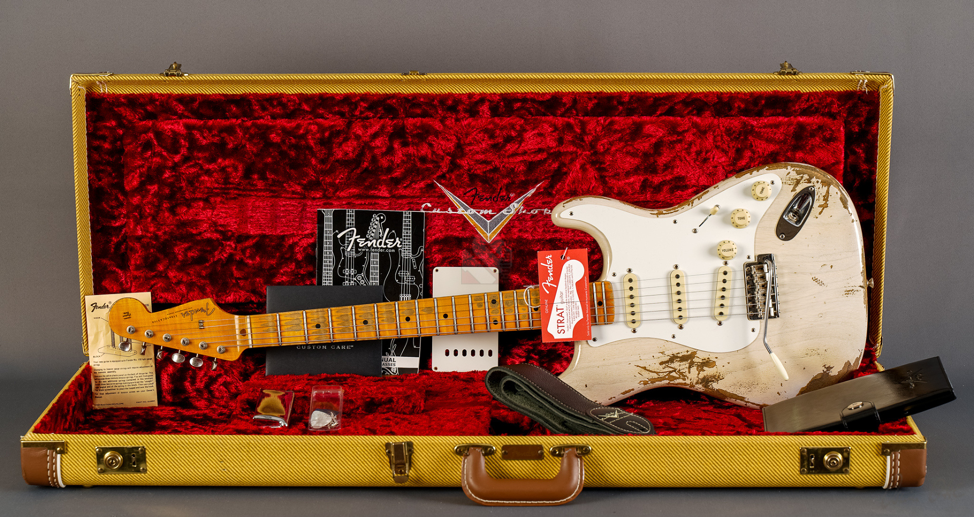 - Includes original case, certificate, spec sheet, strap, picks
