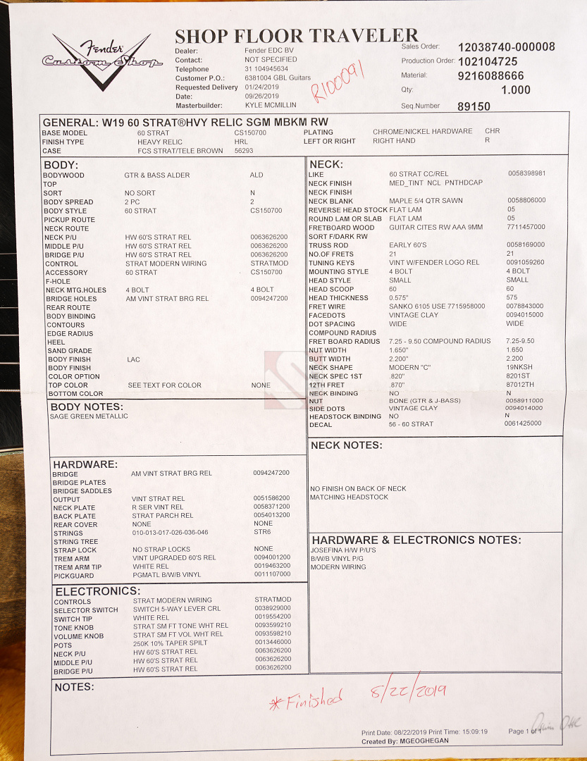 Fender Stratocaster 60 Heavy Relic Masterbuilt Kyle McMillin (2019)