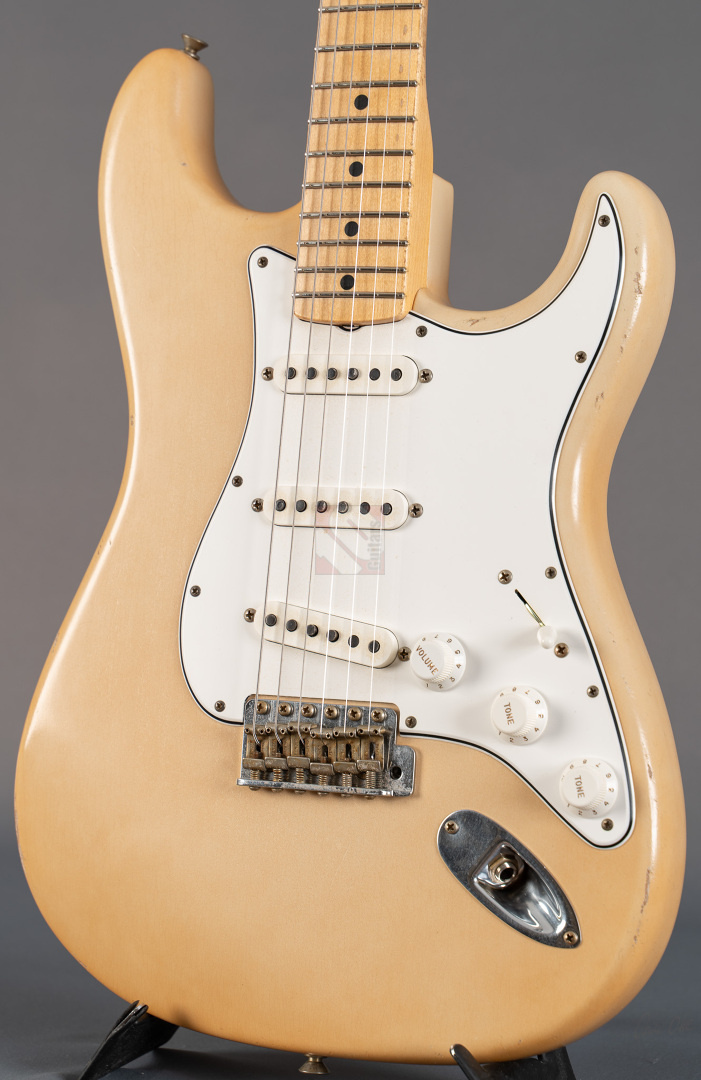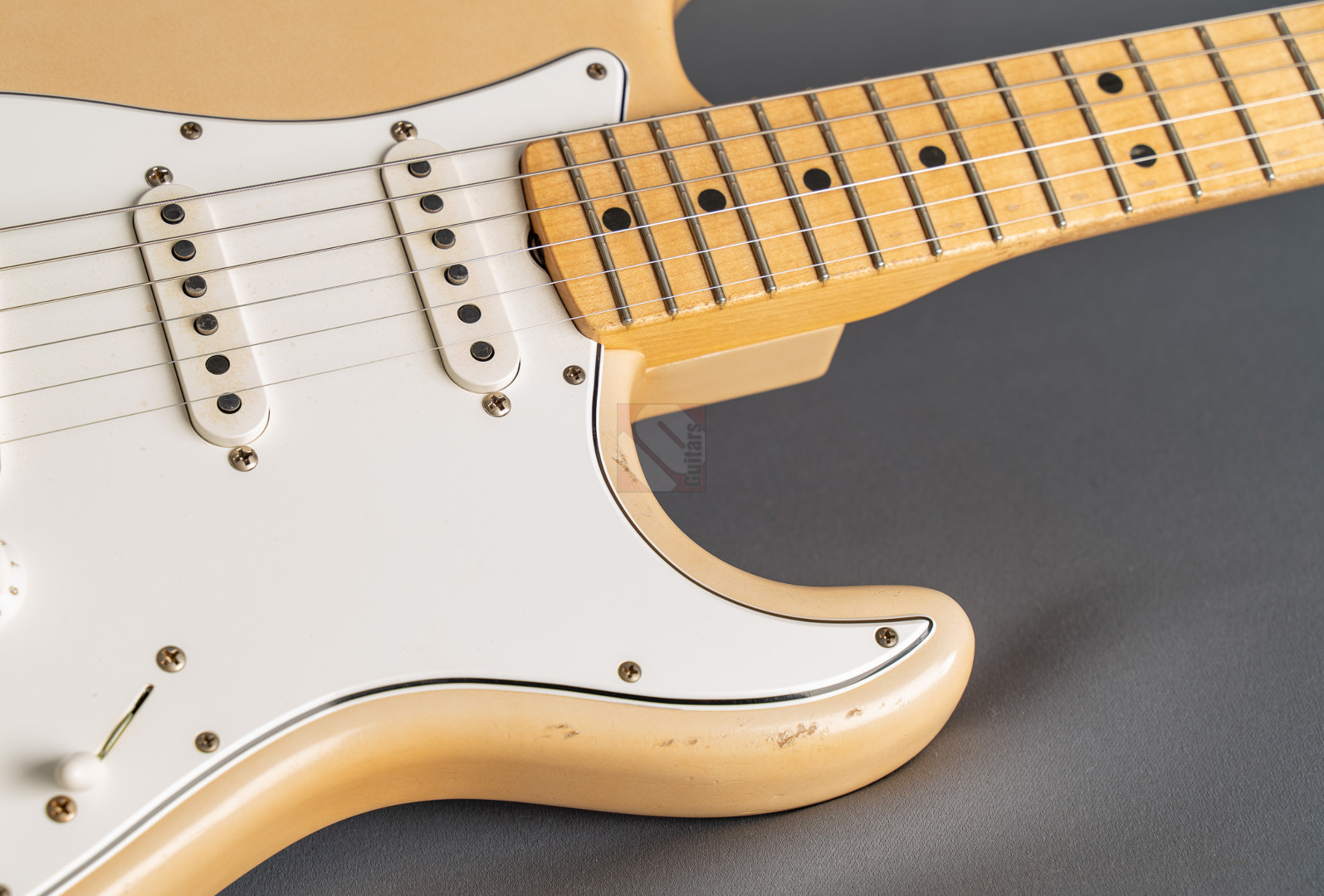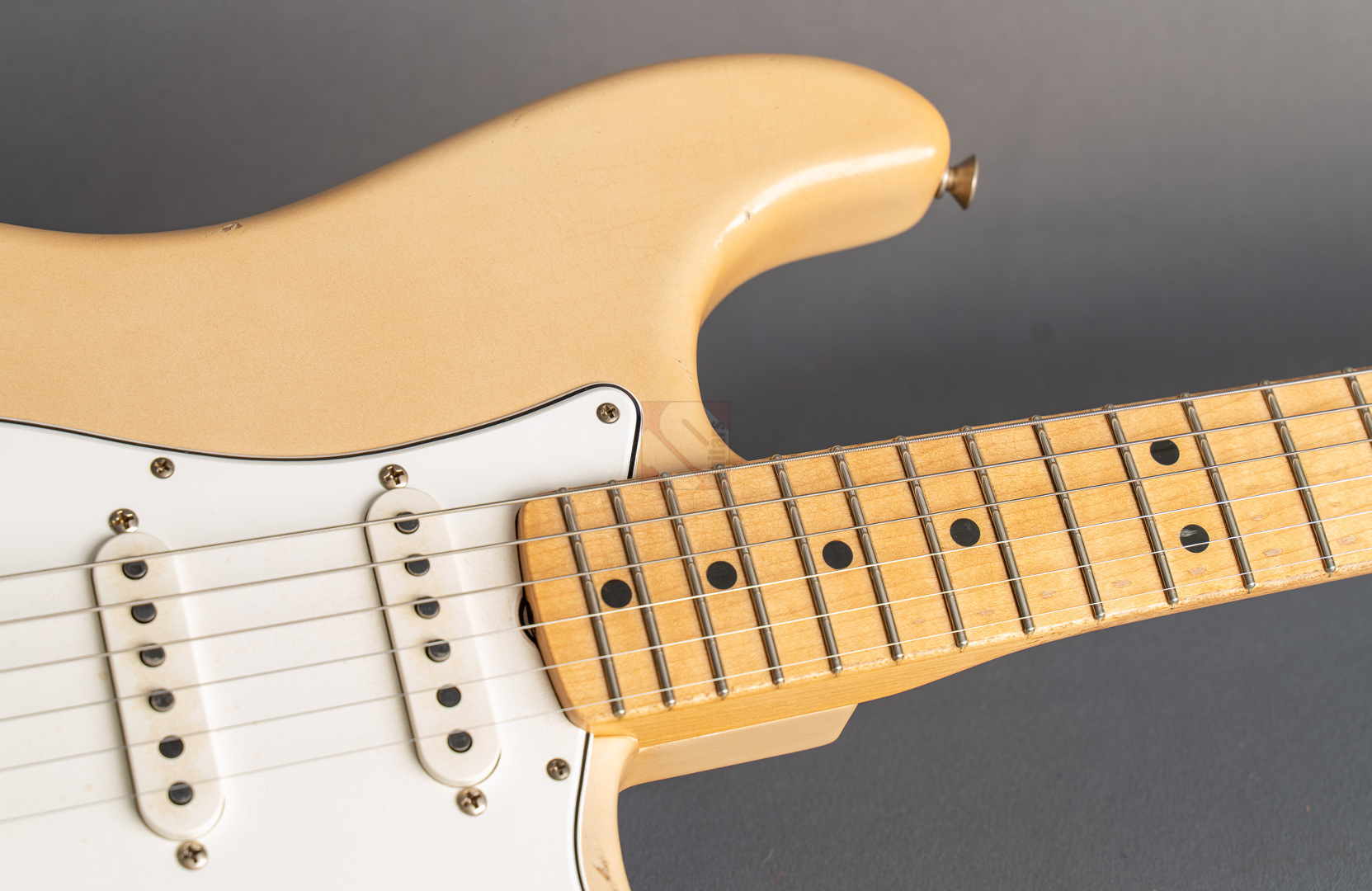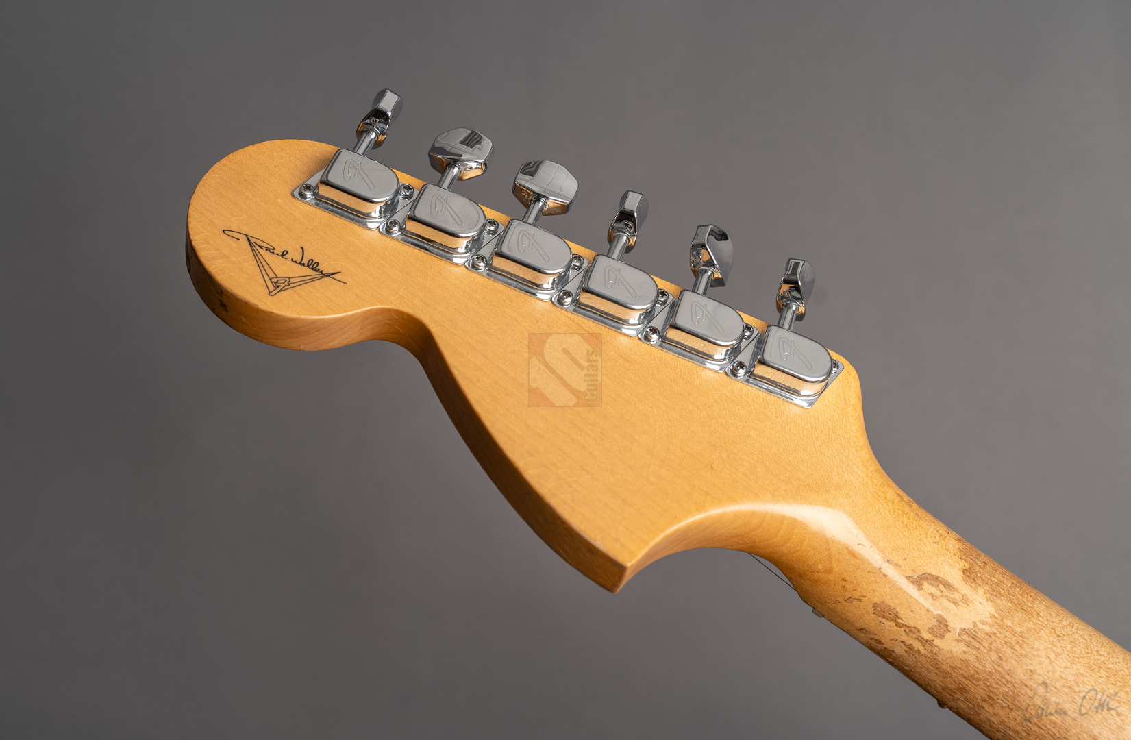 What a killer '68 Strat from masterbuilder Paul Waller! Even when you first play it, this Stratocaster puts a big smile on your face. Resonance at its finest! Super loud even when played dry! 6100 Jumbo frets, a 9.5“ fretboard radius and the grippy ”60 Style Oval C“ neck profile ensure the very best playability. The look is perfect and with its large headstock and ”Aged Olympic White" finish immediately brings to mind master Jimi. The beautiful, rather subtle aging is particularly noteworthy here, resulting in a great matte vintage patina. The “Josefina Handwound 69” pickups provide the typical bell-like sound of the late 60s, ...bell tone at its finest in the intermediate positions! You can really rock out on the bridge and neck. A rich sound with just the right highs and mids to always sound nice and round. What's more, this guitar from 2024 is in mint condition. An absolute must for all fans of late 60s Strats, ...it doesn't get any better than this ;-)
