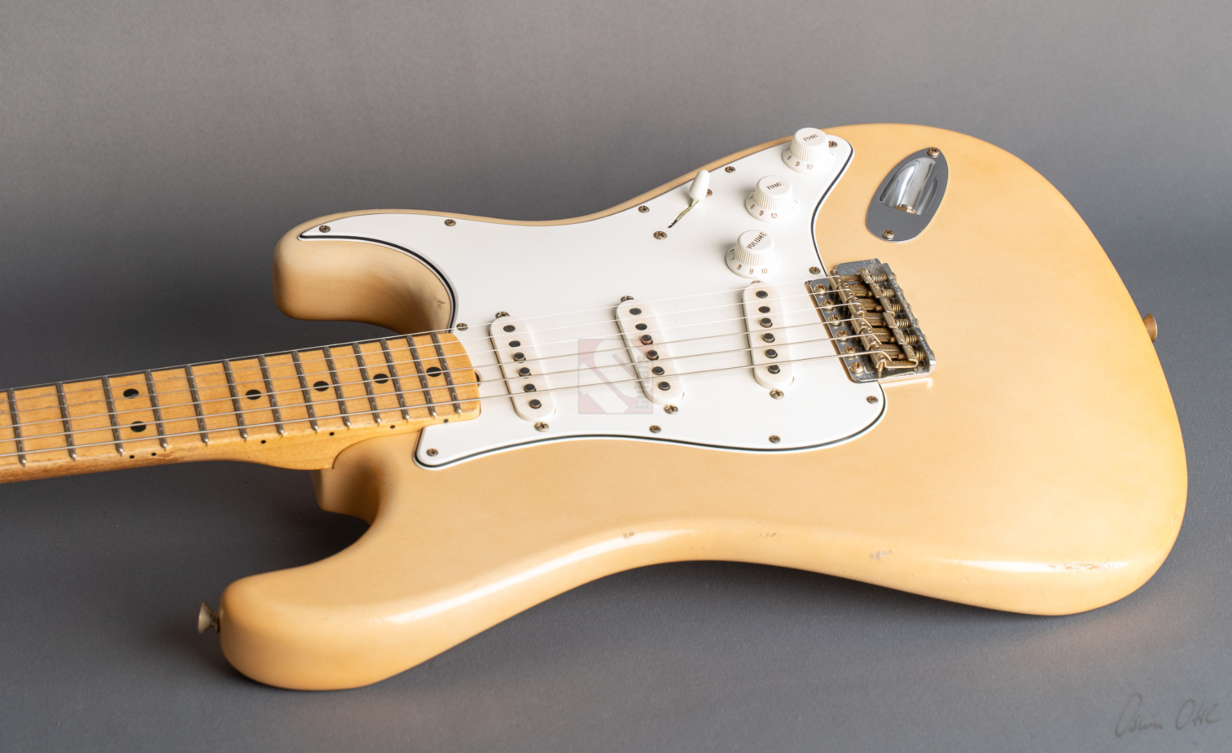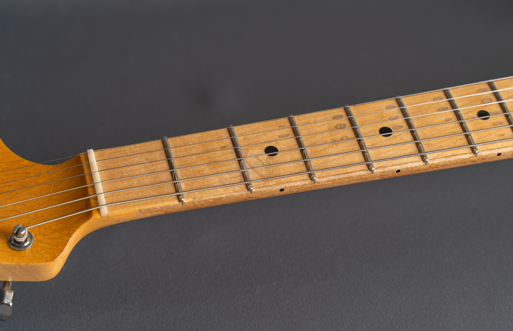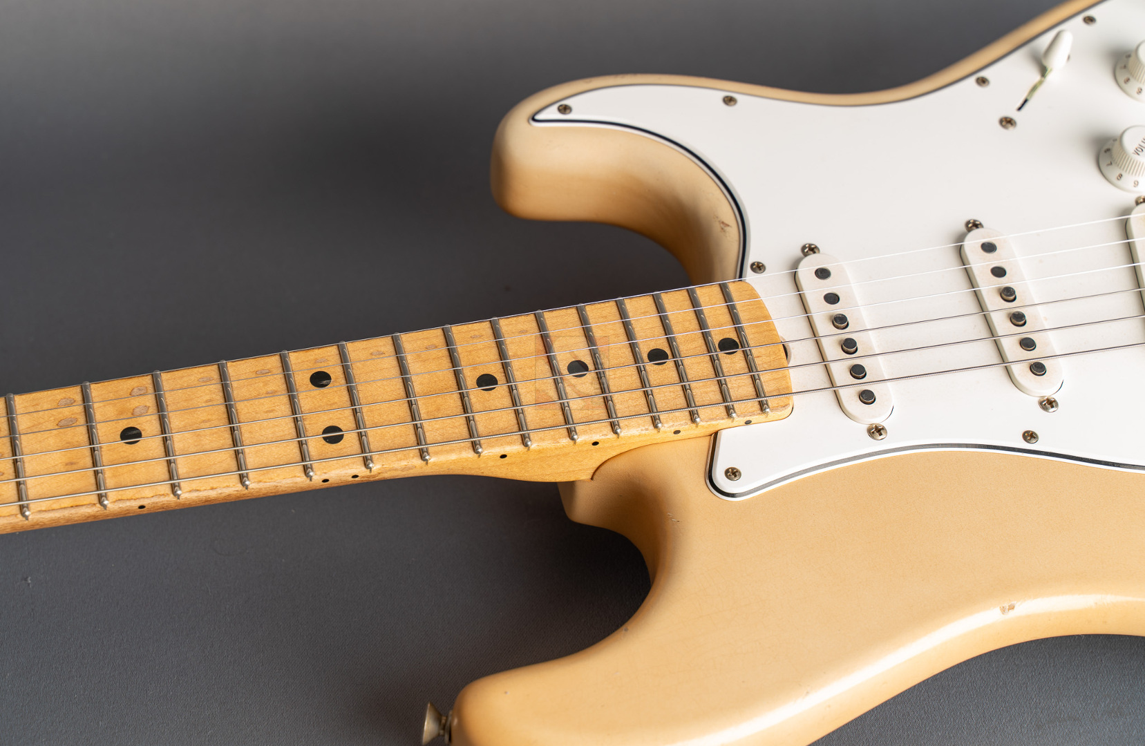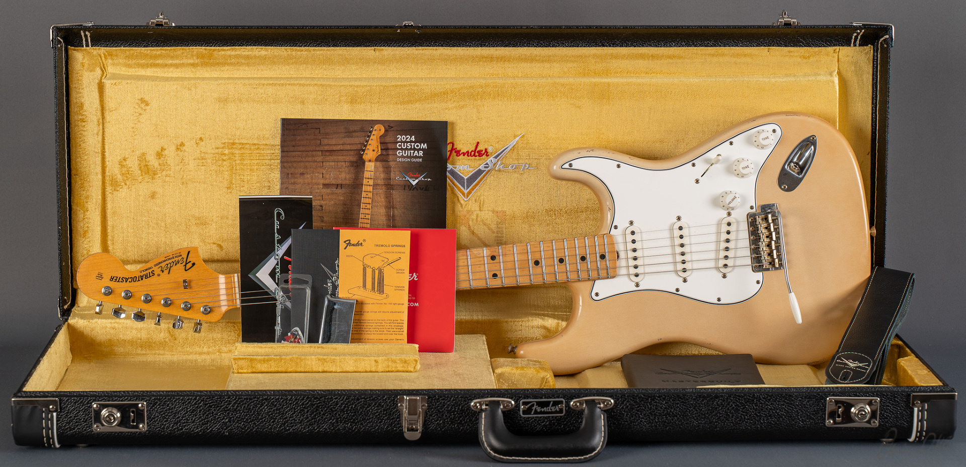 What a killer '68 Strat from masterbuilder Paul Waller! Even when you first play it, this Stratocaster puts a big smile on your face. Resonance at its finest! Super loud even when played dry! 6100 Jumbo frets, a 9.5“ fretboard radius and the grippy ”60 Style Oval C“ neck profile ensure the very best playability. The look is perfect and with its large headstock and ”Aged Olympic White" finish immediately brings to mind master Jimi. The beautiful, rather subtle aging is particularly noteworthy here, resulting in a great matte vintage patina. The “Josefina Handwound 69” pickups provide the typical bell-like sound of the late 60s, ...bell tone at its finest in the intermediate positions! You can really rock out on the bridge and neck. A rich sound with just the right highs and mids to always sound nice and round. What's more, this guitar from 2024 is in mint condition. An absolute must for all fans of late 60s Strats, ...it doesn't get any better than this ;-)