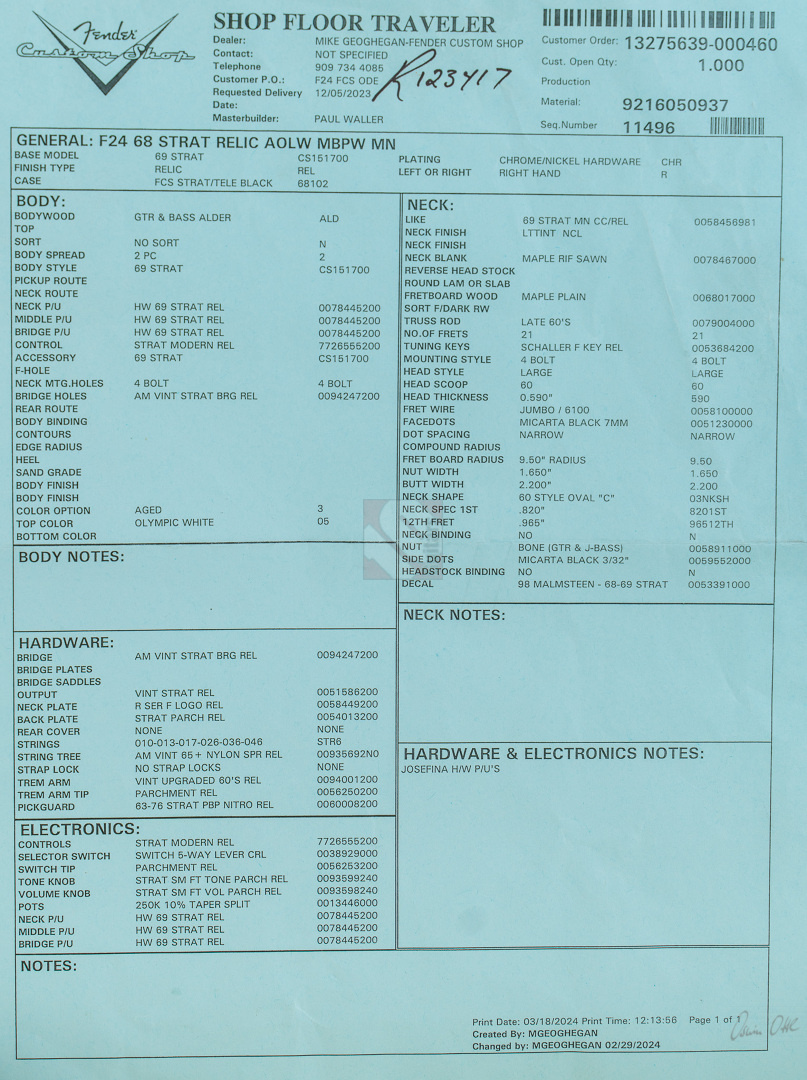 Fender Stratocaster 68 Relic Masterbuilt Paul Waller (2024)