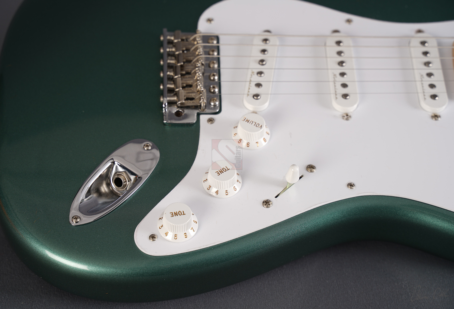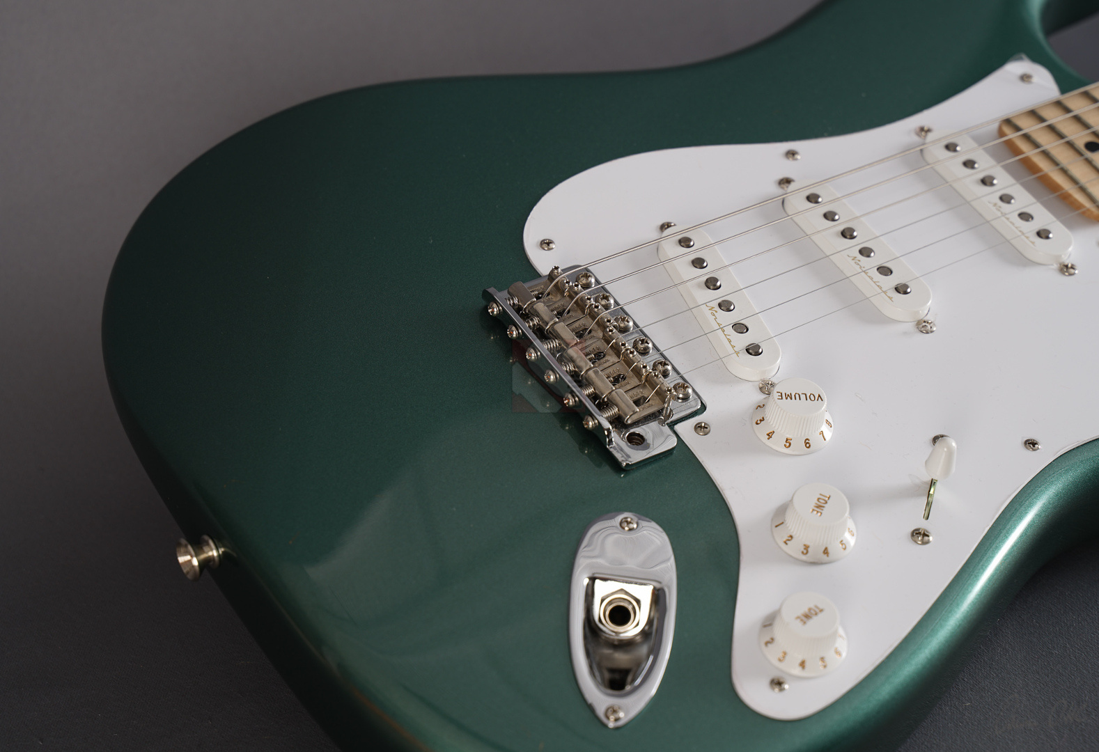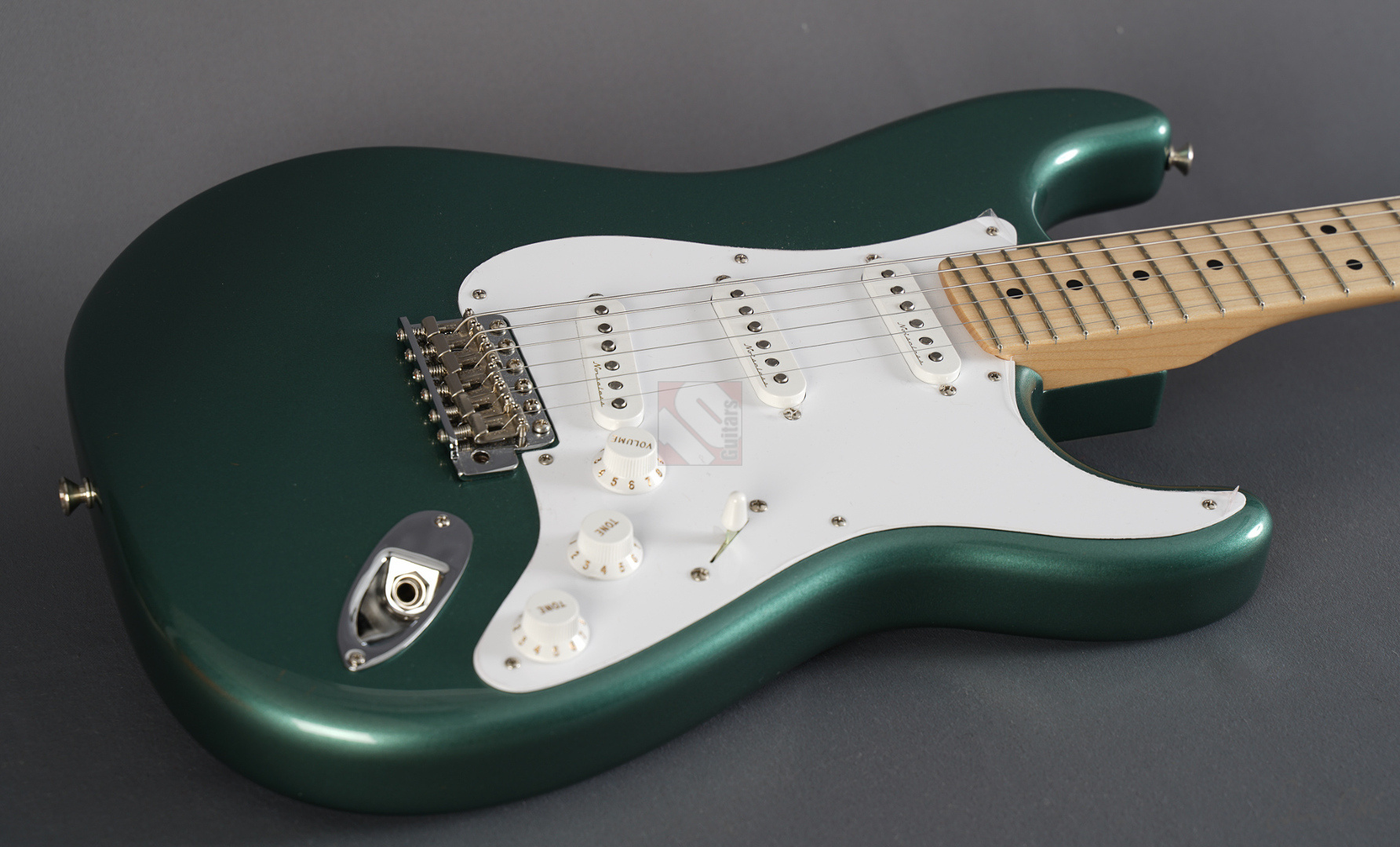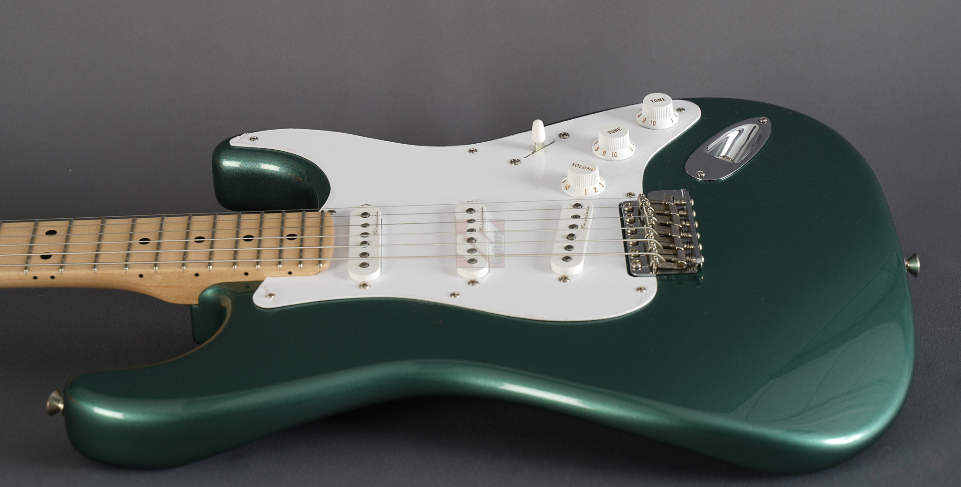 Todd Krause, “the” Clapton masterbuilder par excellence, produces unique and special custom models, which together with the work of Vincent van Trigt and Dale Wilson are among the most sought-after masterbuilds with considerable waiting times. Krause is definitely the masterbuilder who knows Eric's exact preferences better than anyone else. So we are delighted to be able to offer you a very special guitar from Krause today, a Stratocaster Eric Clapton in the extremely rare special color “Almond Green” (also known as “Aston Martin Green”) with a flawless NOS (“New Old Stock”) finish, adjustable Bi-Flex truss rod and “Vintage Staggered” tuners. And this Clapton Strat has it all! Its special features include three Fender “Vintage Noiseless” pickups and an active 25dB mid-boost, giving this guitar incredible versatility. The maple neck with a “Soft V” profile fits comfortably in the hand, the “Vintage Upgrade” frets are perfectly dressed as expected, and the alder body is incredibly resonant. When played clean, the guitar sounds very open, lively, sparkling and clear, and with every change of the mid-boost control you can visit another soundscape from Clapton's decades-long musical journey, even down to the fat, uncompromising sounds from his days with Cream and Derek & the Dominos. ...and as if all that weren't enough, we can offer you this gem including the frets in mint condition.