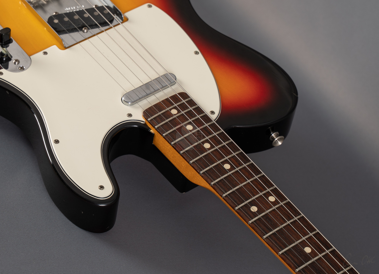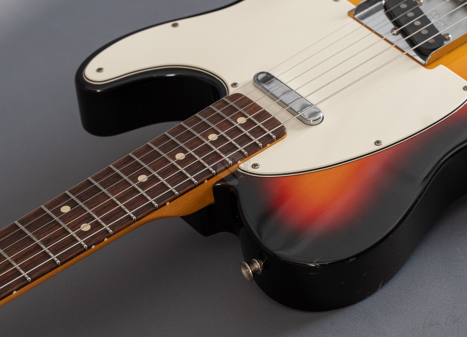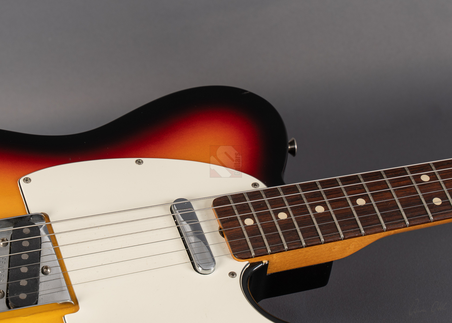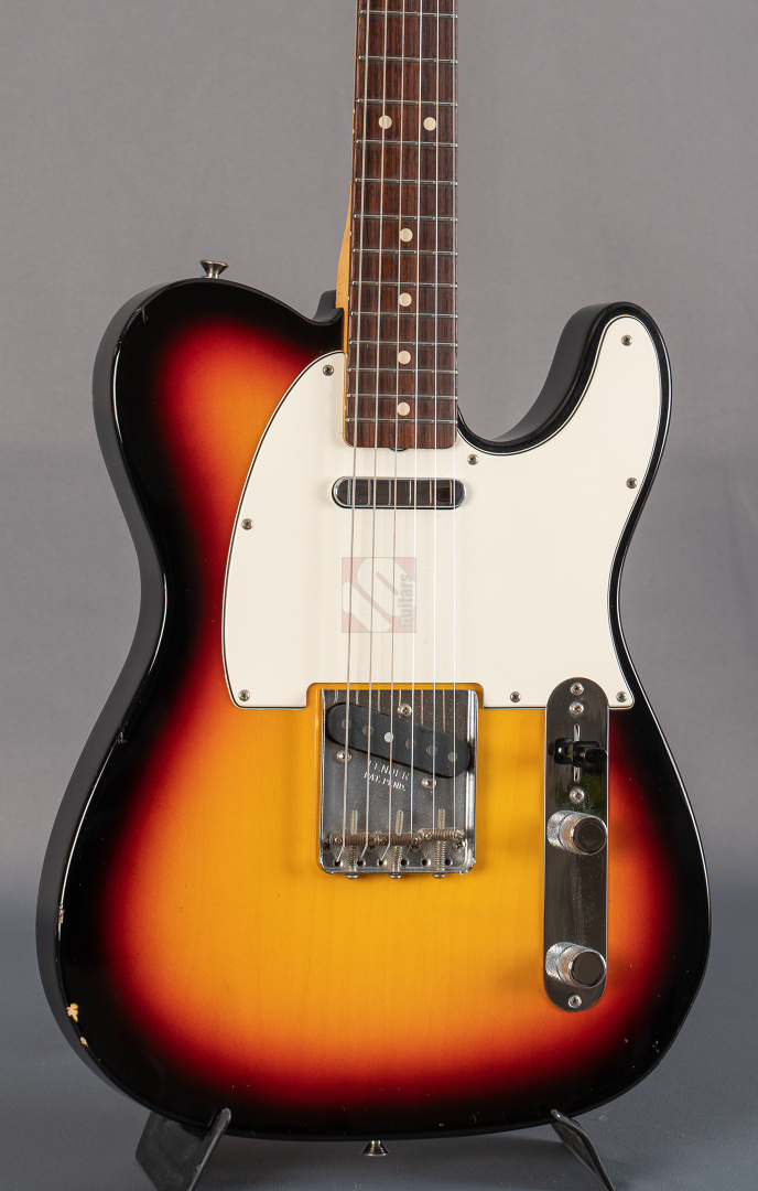 When it comes to sound and playability, this '63 Tele immediately provides the very best feel. Your fingers glide effortlessly across the neck and the guitar delivers a twangy, but always pleasant and balanced Tele sound without much adjustment time or tweaking on the amp. A glance at the spec sheet reveals why: the neck comes with popular features such as a 9.5“ fretboard radius, 6105 frets and a ”60 Style Oval C" profile. “63 Tele” singlecoils are used, which transfer the very resonant and balanced basic character of the guitar 1:1 to the amp. Bell-like, twangy, never too sharp or thin, with a great attack. Great response and you can articulate wonderfully with your touch. I can highly recommend this Telecaster to anyone looking for a superb player with excellent resonance. We also really like the look of it. Originally the beautiful “3-Tone Sunburst” finish came in the NOS (New Old Stock) version, but over the years the previous owner has added some “natural relicing” in the form of a few scratches and minor blemishes, giving it the look and feel of a genuine vintage Tele. ...and of course the signs of wear on the case also show that this guitar wasn't just played in the living room. The capacitor has been replaced with a higher-quality one and there are minimal signs of wear on the first few frets, but the frets will surely provide many more years of great playing pleasure. Otherwise, the guitar is in top condition. We are delighted to offer you this super player at a special price and with an excellent price/performance ratio.