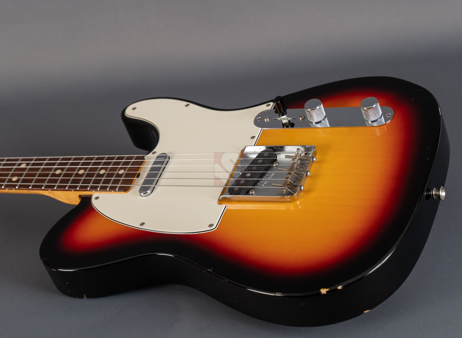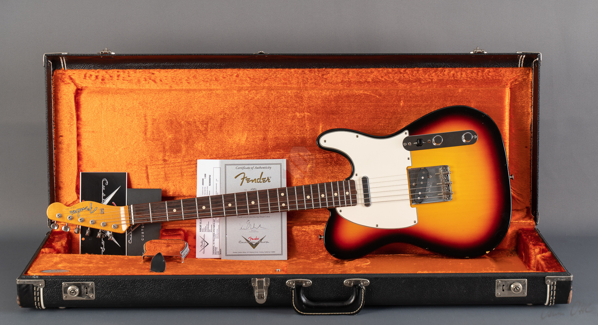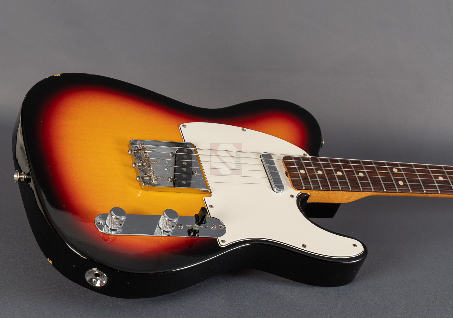 When it comes to sound and playability, this '63 Tele immediately provides the very best feel. Your fingers glide effortlessly across the neck and the guitar delivers a twangy, but always pleasant and balanced Tele sound without much adjustment time or tweaking on the amp. A glance at the spec sheet reveals why: the neck comes with popular features such as a 9.5“ fretboard radius, 6105 frets and a ”60 Style Oval C" profile. “63 Tele” singlecoils are used, which transfer the very resonant and balanced basic character of the guitar 1:1 to the amp. Bell-like, twangy, never too sharp or thin, with a great attack. Great response and you can articulate wonderfully with your touch. I can highly recommend this Telecaster to anyone looking for a superb player with excellent resonance. We also really like the look of it. Originally the beautiful “3-Tone Sunburst” finish came in the NOS (New Old Stock) version, but over the years the previous owner has added some “natural relicing” in the form of a few scratches and minor blemishes, giving it the look and feel of a genuine vintage Tele. ...and of course the signs of wear on the case also show that this guitar wasn't just played in the living room. The capacitor has been replaced with a higher-quality one and there are minimal signs of wear on the first few frets, but the frets will surely provide many more years of great playing pleasure. Otherwise, the guitar is in top condition. We are delighted to offer you this super player at a special price and with an excellent price/performance ratio.