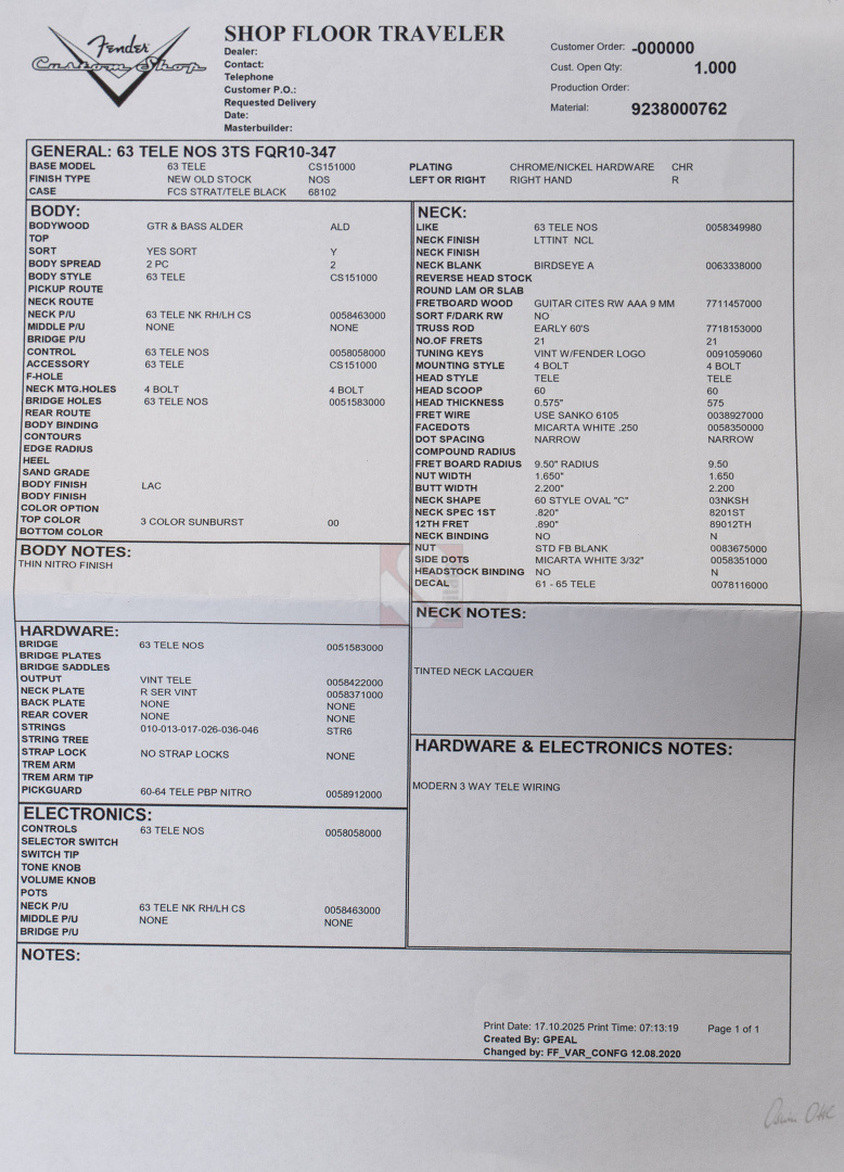 Fender Telecaster 63 NOS 3TS (2011)