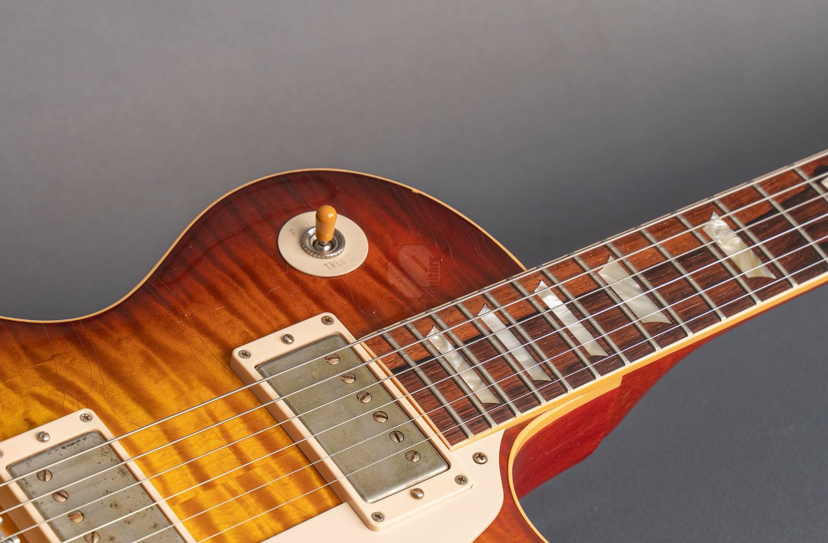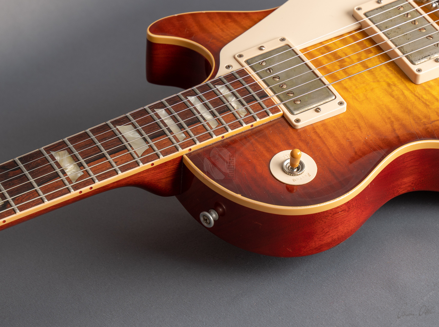 Recently we commemorated the 45th anniversary of Michael Bloomfield's death. Sadly he passed away far too soon, renowned as a fantastic guitar virtuoso, solo artist, member of the Paul Butterfield Blues Band and Bob Dylan's sidekick during his legendary performance at the Newport Folk Festival. For many years he was a dedicated Telecaster player and later also played a Goldtop equipped with P90 pickups. However, after becoming the proud owner of a 1959 Les Paul in 1967 there was no turning back. In Bloomfield's honor the Gibson Custom Shop released a strictly limited-edition replica of this guitar in 2009. We are pleased to offer you serial number 42 of the Aged version, limited to 100 specimens. Beauty, as they say, is in the eye of the beholder and for us a '59 Bloomfield is undoubtedly one of the most beautiful Les Pauls. But this particular example really caught our eye: a gorgeous flame top in the legendary "Bloomfield Burst" finish with a pronounced grain and a beautiful color gradient. None other than Tom Murphy himself meticulously recreated the detailed aging process, painstakingly replicating every tiny mark of play and wear on the original. The aged hardware perfectly complements the look, complete with a blackened bridge screw. Even the control knobs are spot-on, combining top-hats with a reflector and a speed knob. The somewhat stronger '59 neck offers a fantastic playing feel and sits extremely comfortably in the hand. Sonically, the two Burstbuckers deliver rich, clean tones with sparkling highs, as well as screaming, gritty distortion with plenty of punch. Plugged into an amp it truly shines: fat, nuanced Les Paul sounds brimming with tone and character! Aged Bloomfields were only available on the market for a short time, as they sold out immediately. Even today these exceptional Les Pauls are extremely rare. Therefore this guitar combines the highest rarity and collector value with phenomenal sound and superb playability! We can offer you this guitar in top condition.