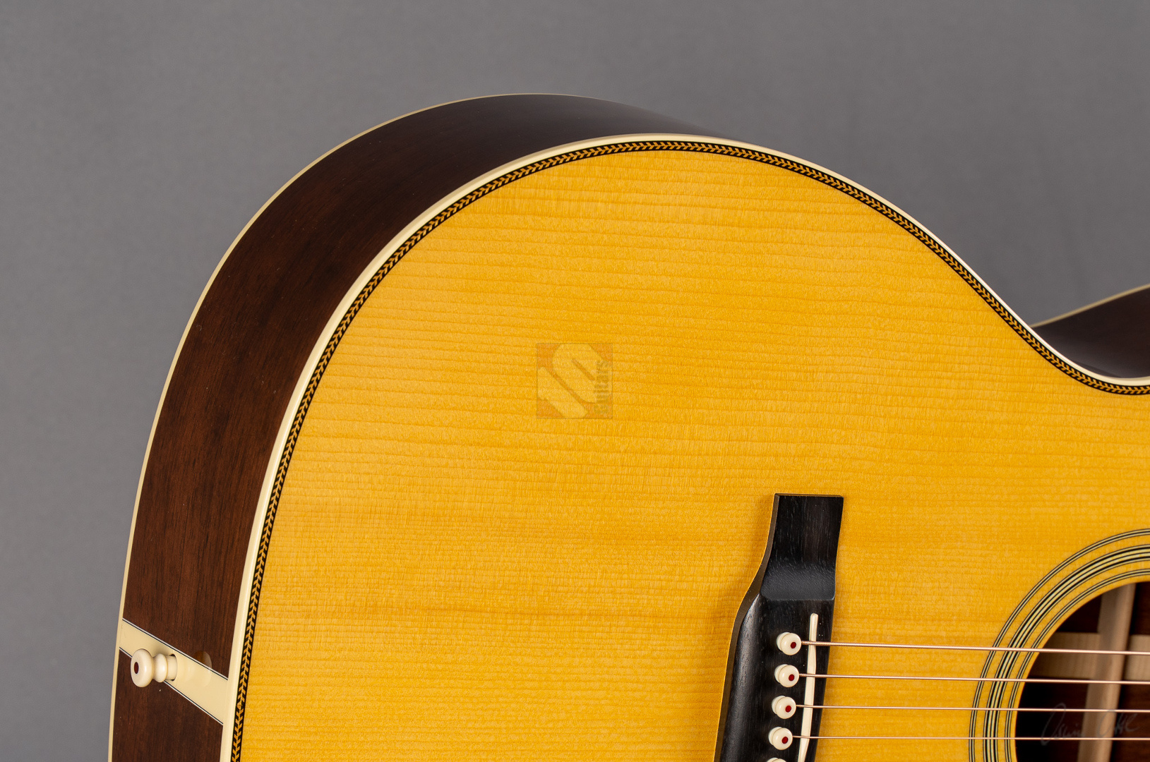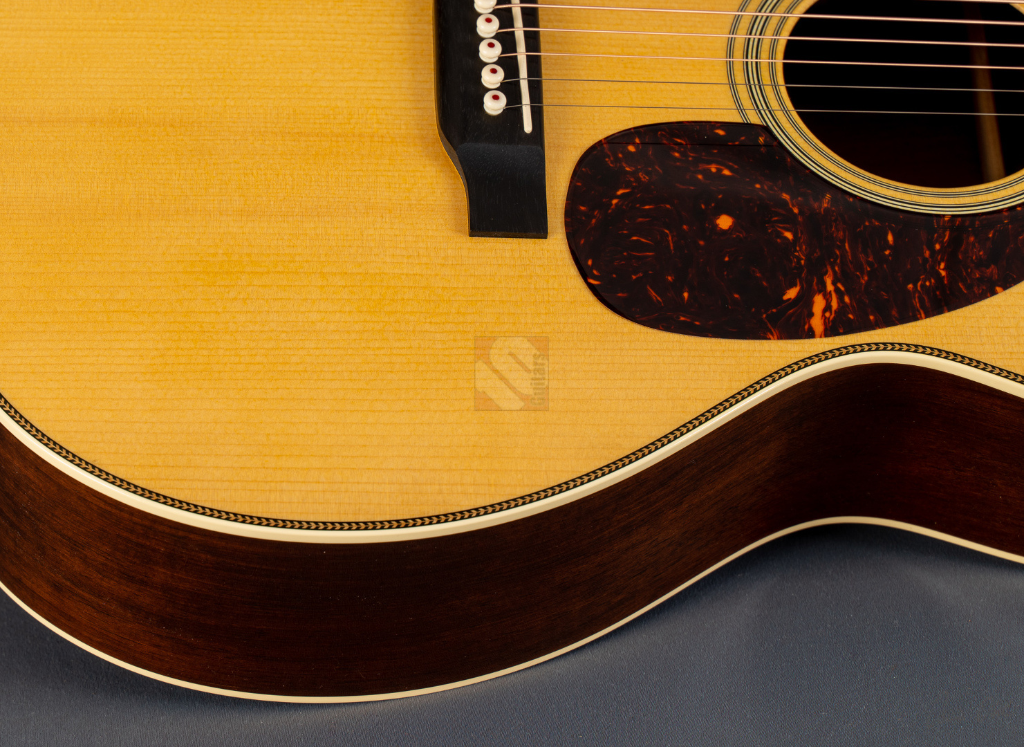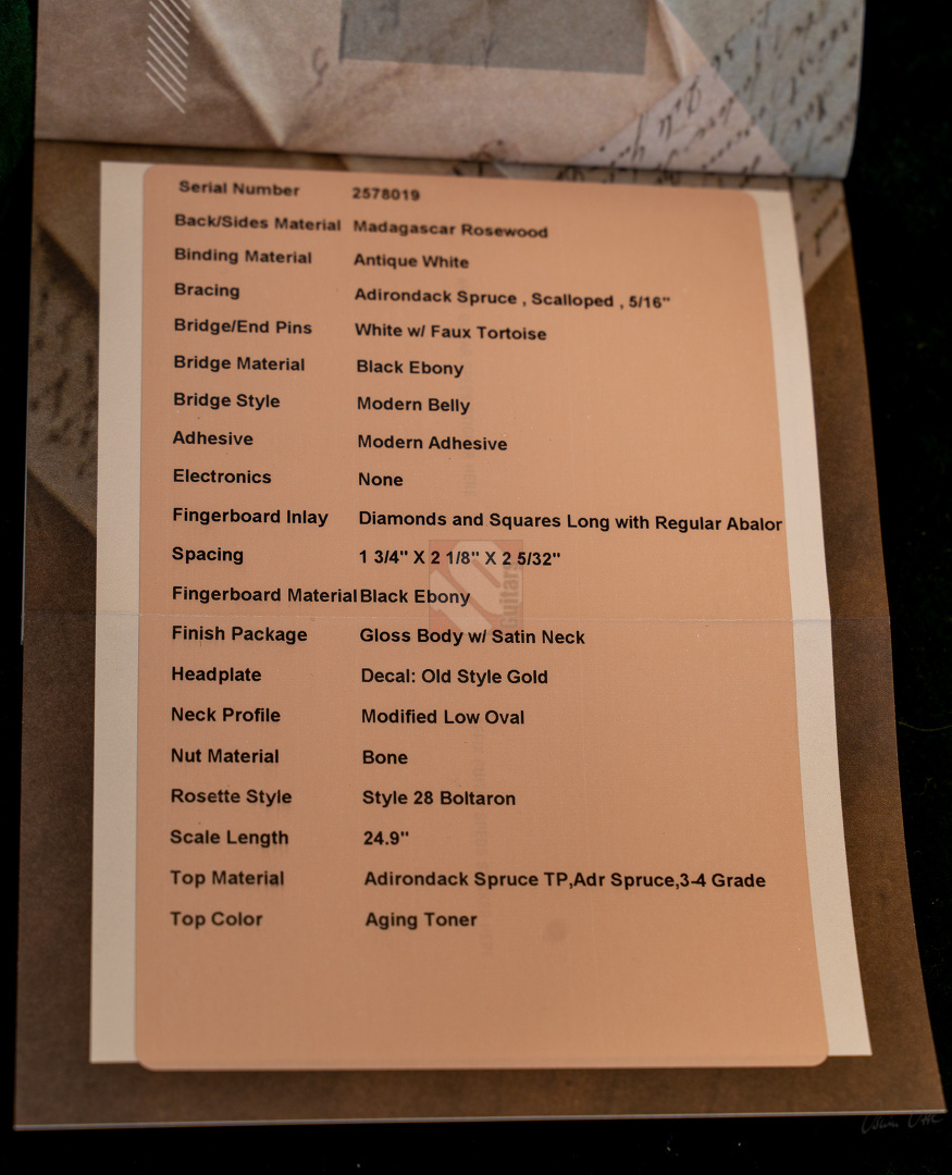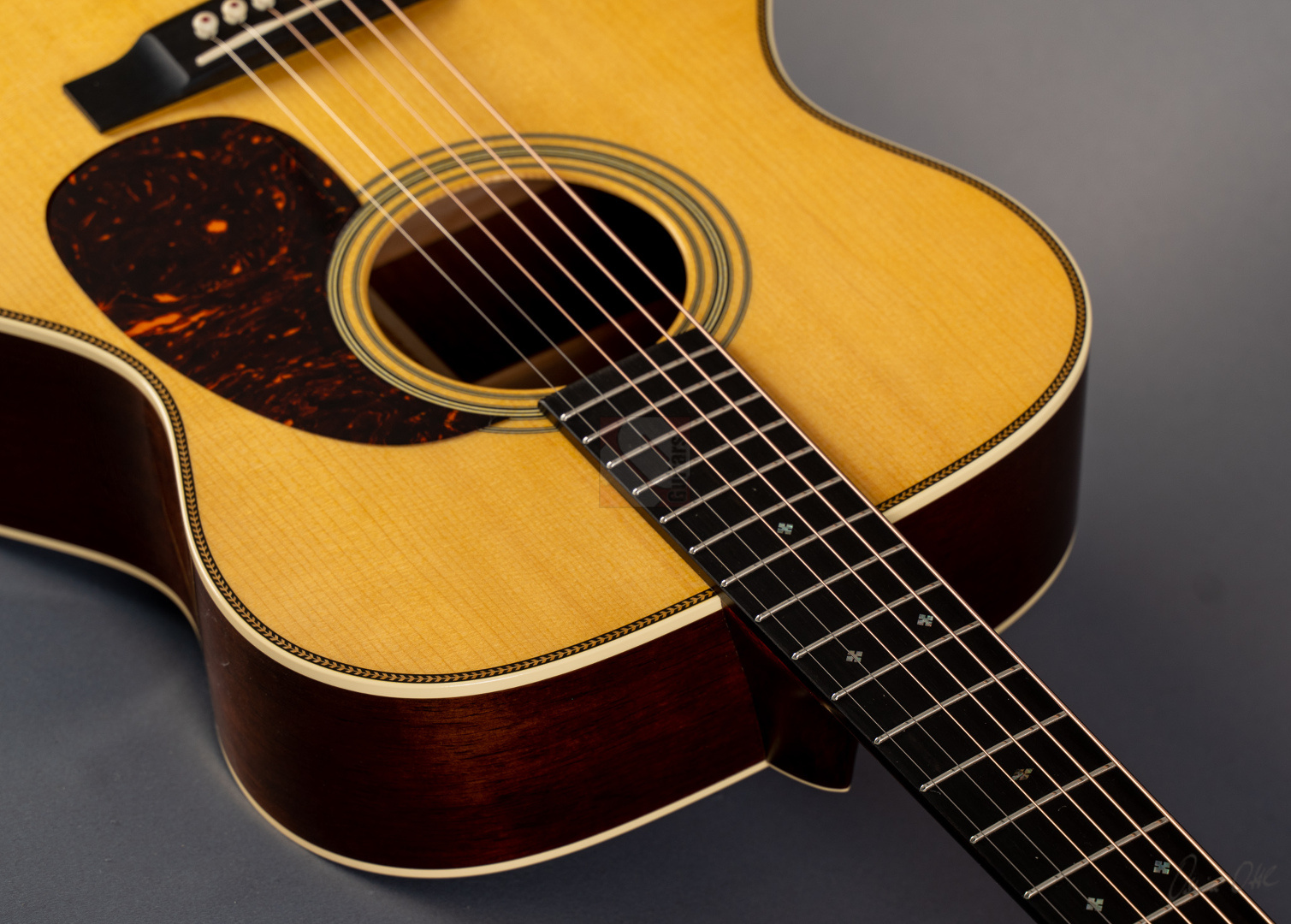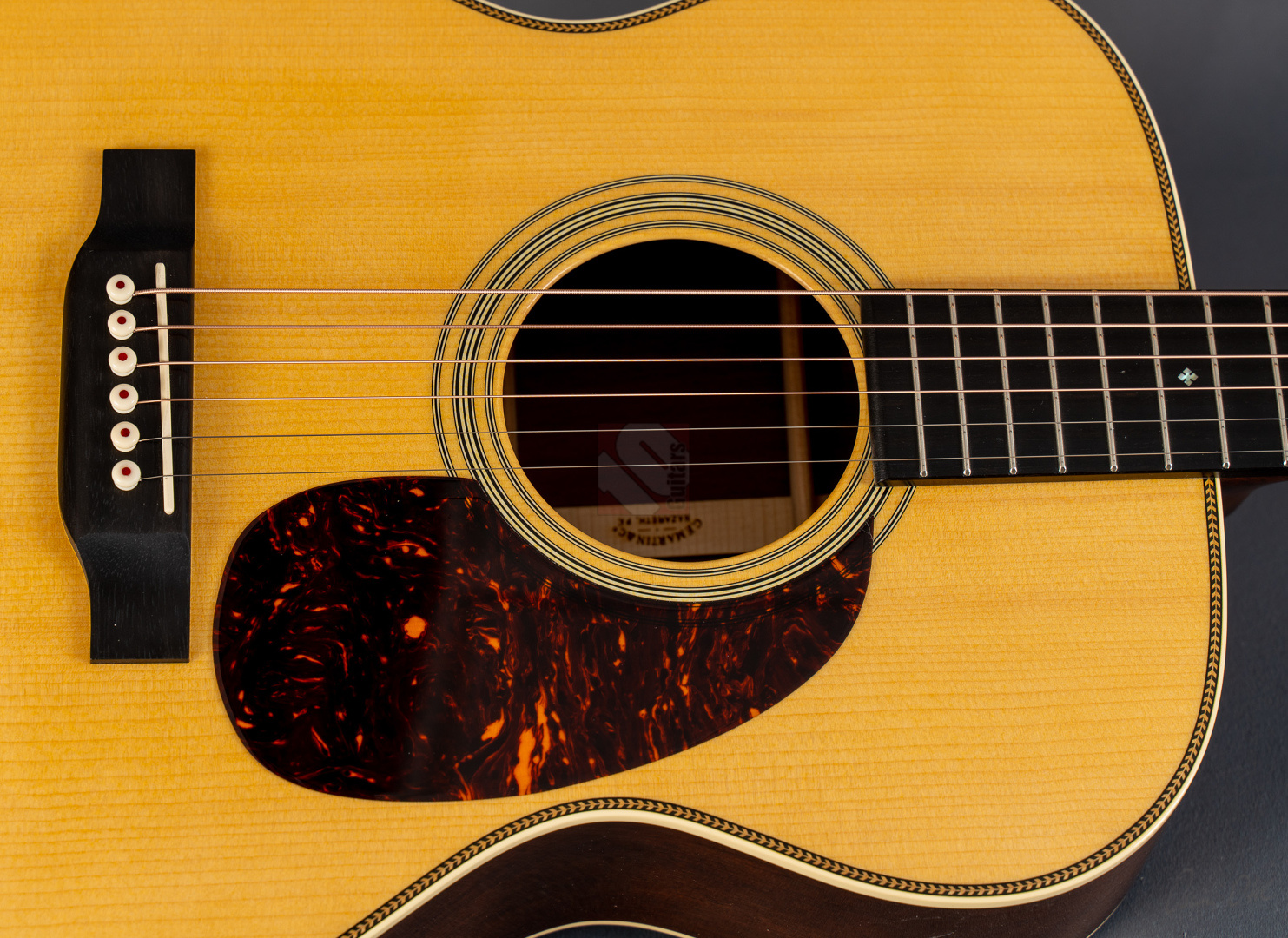 This 000-28 from the Martin Custom Shop is simply a masterpiece! It features a fantastic Adirondack spruce top as well as back and sides made from beautiful Madagascar rosewood, which is now almost impossible to find. Furthermore it has a comfortable, medium “Modified Low Oval” neck profile, which ensures optimum playing comfort and excellent string action. In addition, it features high-quality open tuners for excellent tuning stability, a faux tortoise pickguard, elegant “Diamonds and Squares” fingerboard inlays, and of course the typical herringbone decoration around the body. The classic vintage look is even enhanced by treating the top with aging toner, adding a beautiful patina to the guitar's finish. In addition to its elegant appearance this fine instrument impresses above all with its superbly balanced and rich sound. Despite its small size the 000-28 produces a voluminous and orchestral tone that also conveys a warm note. Rich bass, pleasant mids, and brilliant highs — balanced in all dynamic ranges, both with flatpick and fingerstyle. You'll want to play slower and slower to really savor every single note. Rarely have we held an acoustic guitar with such a rich sound. This guitar from 2022 is including the frets in mint condition and has hardly been played. So we are delighted to be able to offer you this exclusive gem, which is virtually impossible to find anywhere else in the world with these specs.
