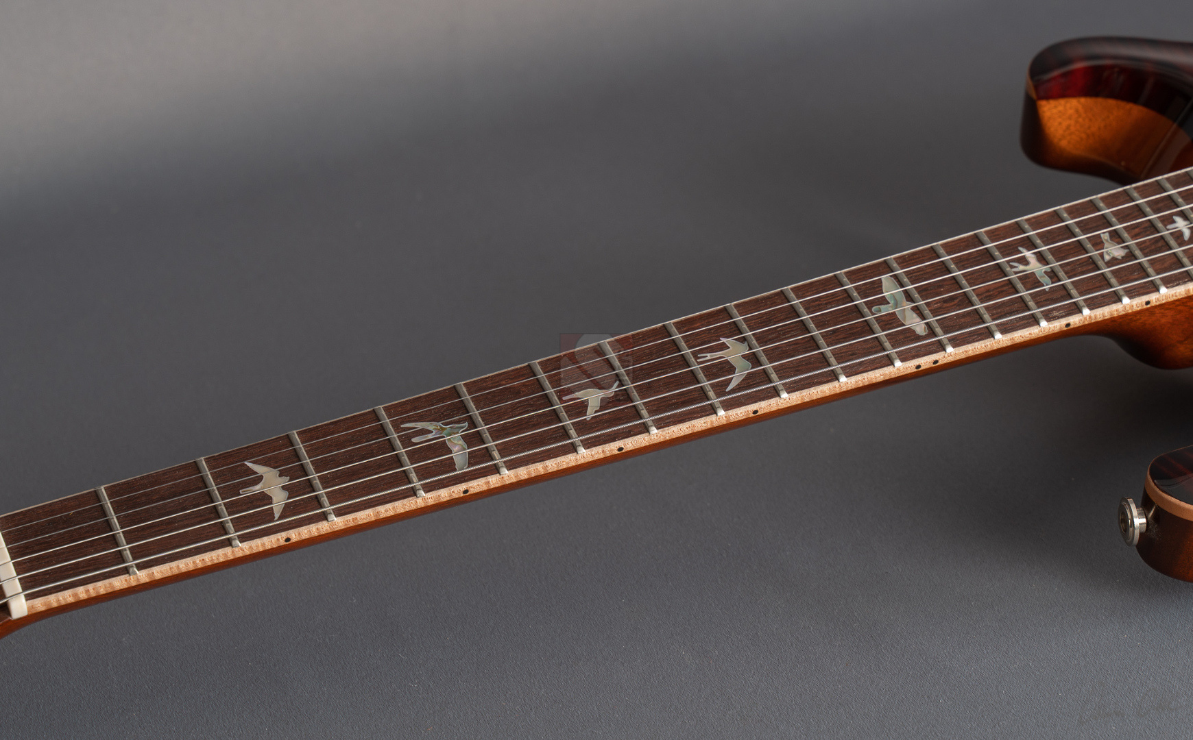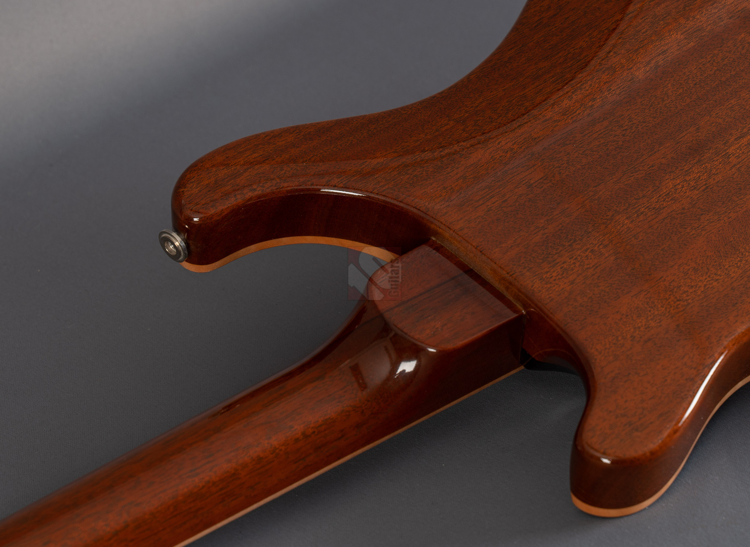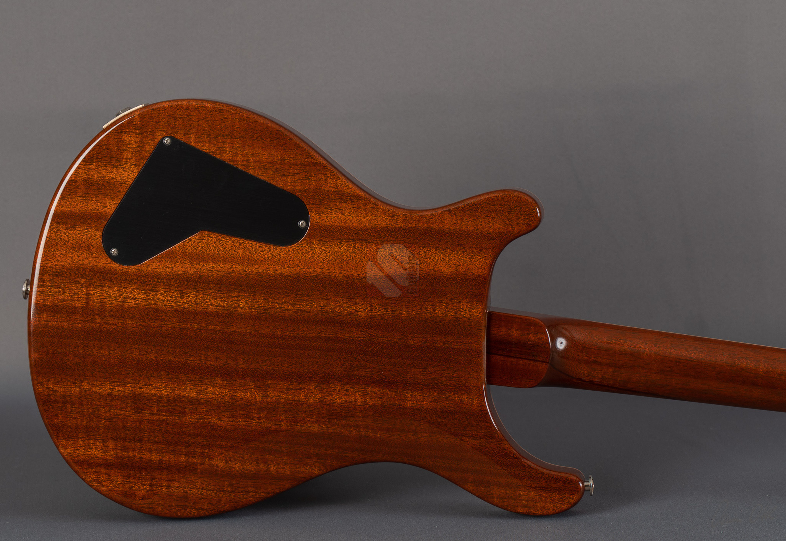 The boss himself was responsible for this very special collector's model from PRS: Paul Reed Smith reserved 85 maple tops for the Paul's 85 guitars and also selected the remaining woods for the strictly limited series of 85 specimens from PRS' Wood Vault himself. The body is made from African mahogany, the neck from dark Peruvian mahogany and the fingerboard from Honduran rosewood with curly maple binding. The look of the guitar is crowned by a curly maple top in the special color “Electric Tiger Glow”. A special staining and spraying technique is used for this color, which emphasizes the beautiful, wide curly maple enormously, resulting in a phenomenal top grain. The final finish is a special paper-thin high-gloss vintage nitro lacquer with numerous hairline cracks appearing over time to give the guitar a special vintage patina. But since this guitar has spent its time almost unplayed in its case, even these deliberate signs of ageing are hardly noticeable and the guitar will be delivered to its future owner in almost mint condition. The very comfortable Pattern neck profile corresponds exactly to Paul's specifications. Together, this results in a guitar with incredible sustain, a balanced and fresh basic sound and optimum playability. The PRS TCI humbuckers, which can be split into singlecoils on this model with two small toggle switches, provide the transmission to the amp. With these specs it's clear that the guitar also plays in the Champions League in terms of sound. And yet, when you hear the guitar “loud” for the first time you can't help but get excited. The humbuckers deliver a singing, full-bodied tone with just the right “nose” to give it a unique character. With such phenomenal playing and sound characteristics it would certainly be difficult to simply place Paul's 85 in a display case as a collector's item... We are extremely pleased to be able to offer you this beautiful, extremely rare dream guitar in top condition.