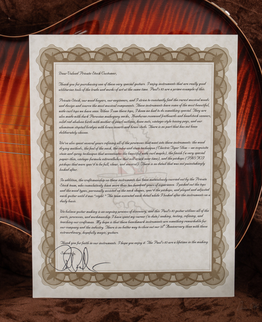 - Includes Private Stock case, certificate, PRS documentation, strap locks