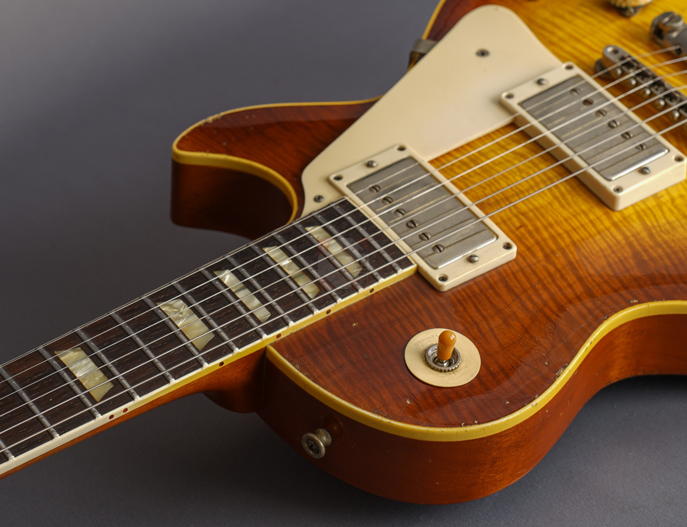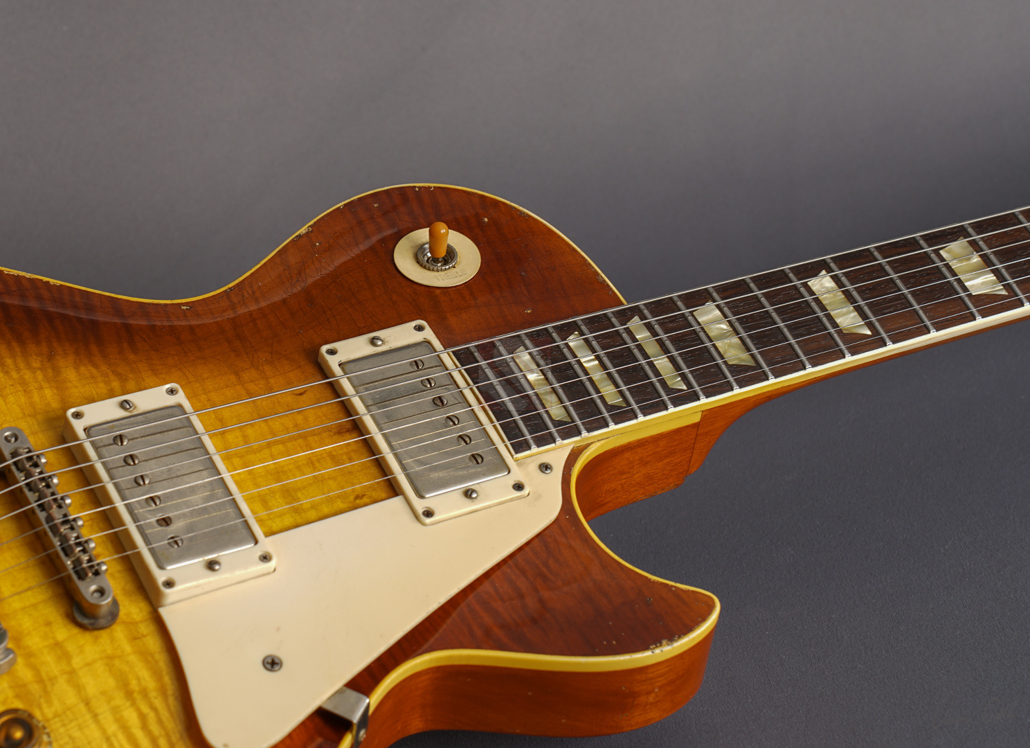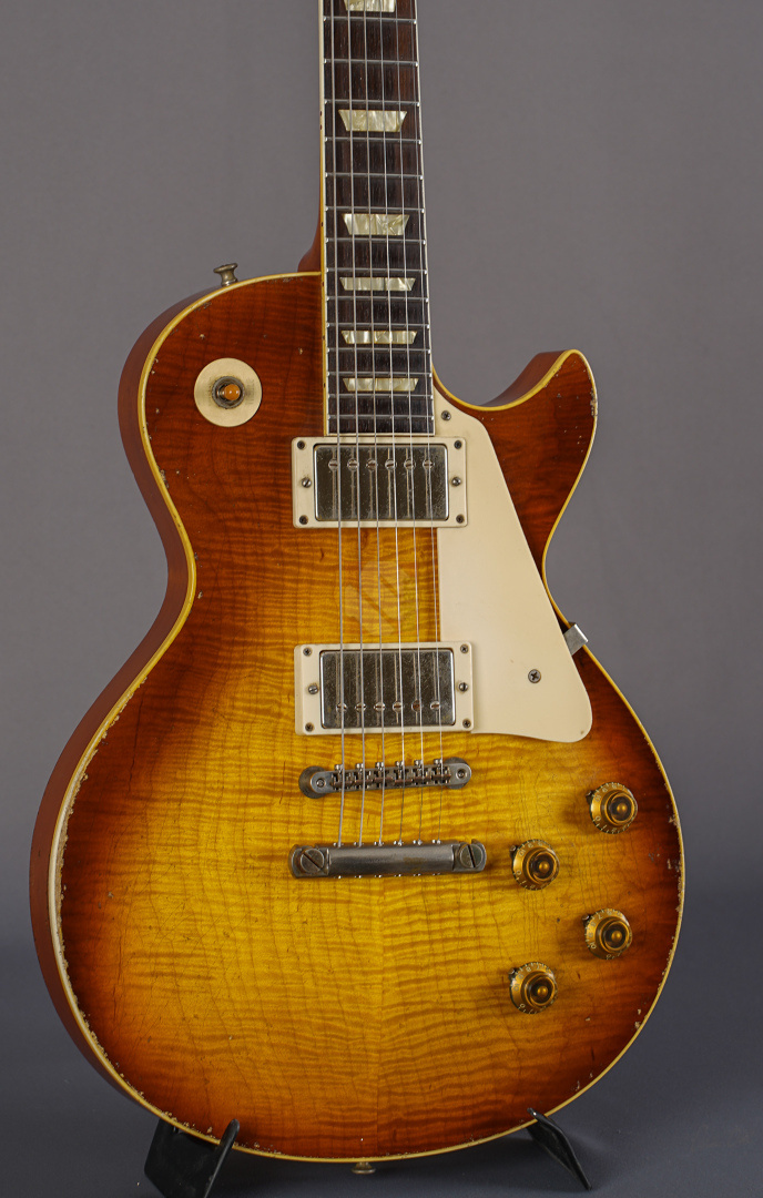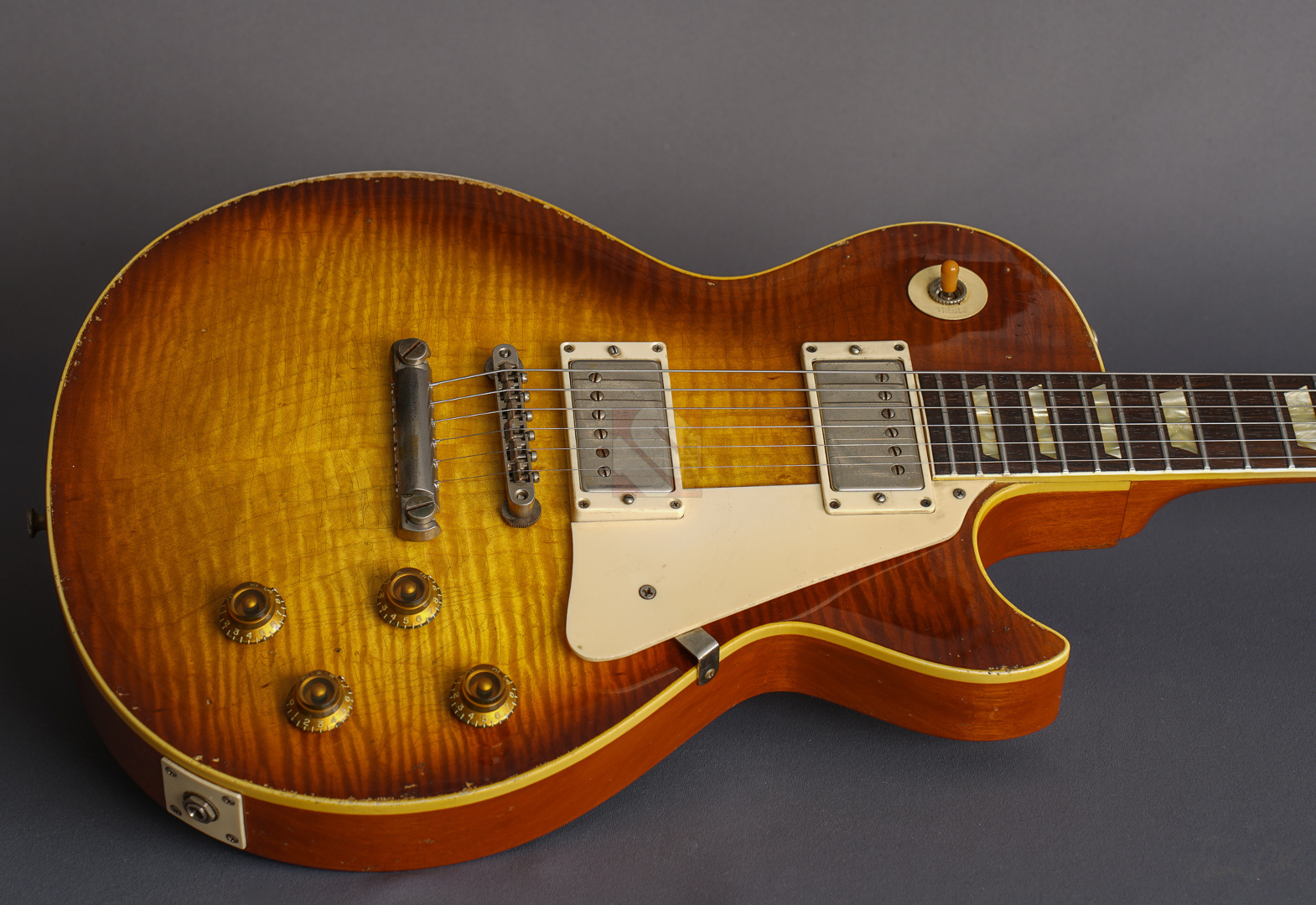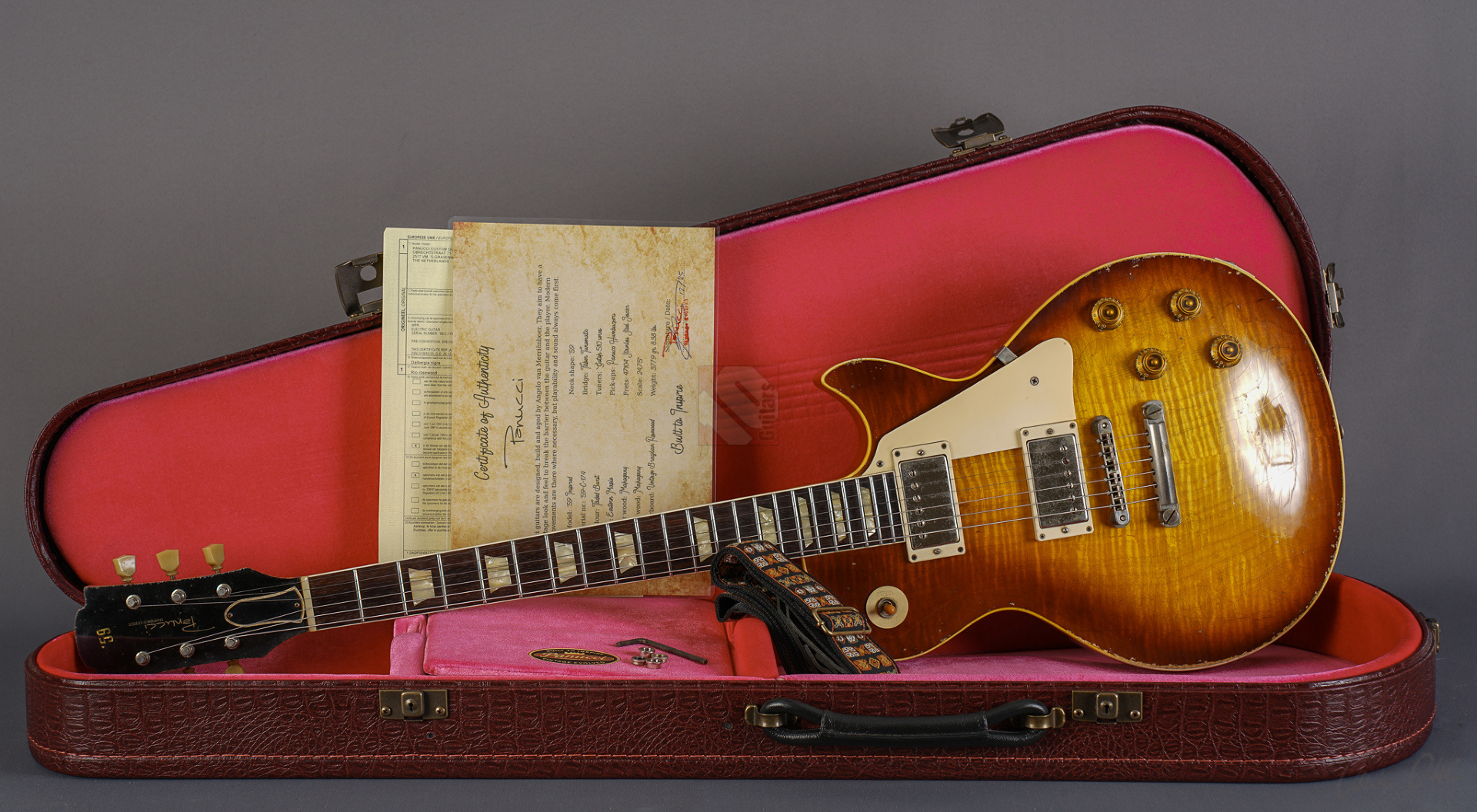 What fantastic dream guitars Panucci keeps producing! Only superlatives can be used to describe these guitars. This is also true of this '59 Inspired model in a beautiful “Faded Burst” finish. The body and neck are made of the finest mahogany, the top is made of Eastern maple with a fabulous grain, the aging is incredibly authentic and detailed and the fretboard is made of “Vintage Brazilian Rosewood,” which is so rare these days (of course with the necessary CITES certificate). The pickups are the company's own Panucci humbuckers, which emphasize the highs more than their famous competitors from Nashville. This comes very close to the old PAFs. In addition, the guitar sounds wonderfully woody and three-dimensional – a real joy, whether clean or distorted. The medium neck with its '59 neck shape also fits perfectly in the hand. Thanks to the perfectly dressed frets the '59 Inspired plays so smoothly that you'd be hard pressed to find a vintage original that comes close. Of course the perfect playability also has to do with the absolute dream weight of only 3779 grams. Here you get sound, playability and looks that you usually only find in guitars twice as expensive from the competition. The only downside: less than 30 Panuccis are built each year. So you'll have to be quick! The guitar is new, unplayed and includes VAT.