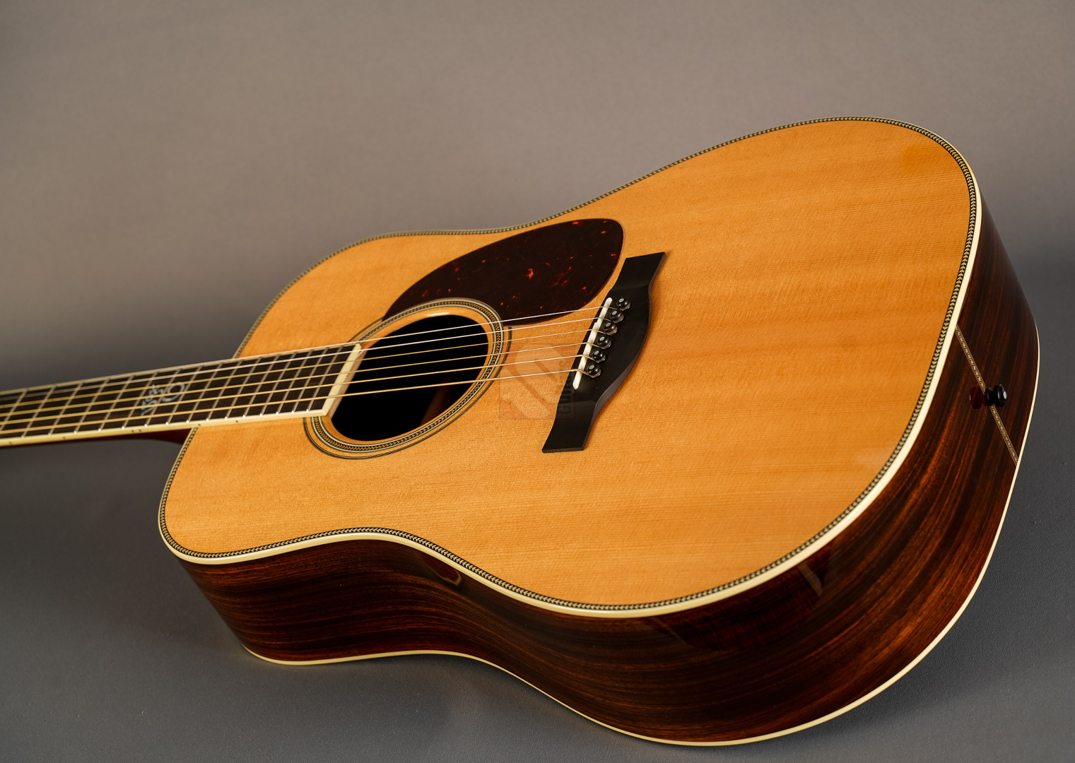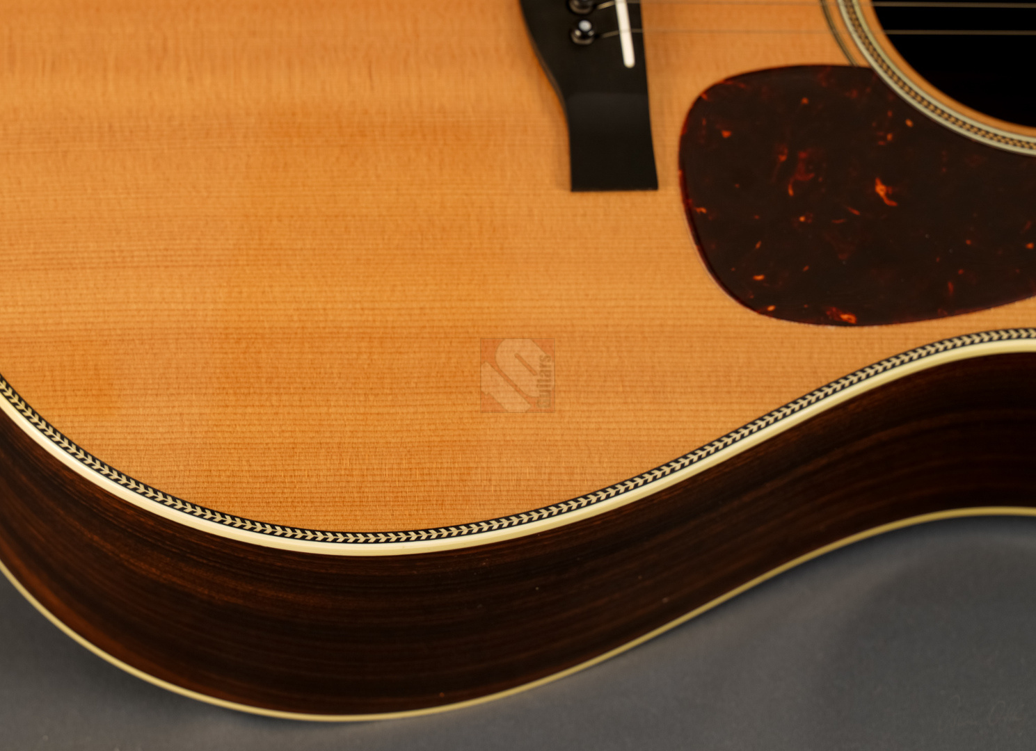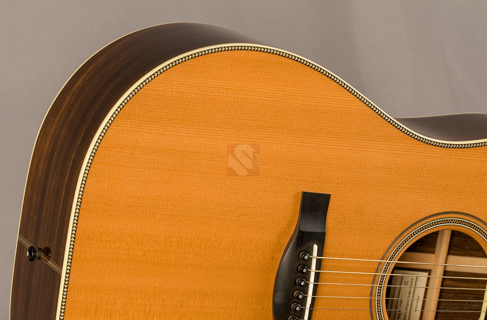 Guitarist Tony Rice is known for his incredible flatpicking technique and has been a highly renowned name in the Bluegrass scene since the 1970s. Richard Hoover from Santa Cruz and Tony Rice worked together for many years to create one of the best contemporary Bluegrass guitars, which can do so much more. The name Santa Cruz has always been synonymous with top-of-the-line acoustic guitars, but what the Californians have delivered with the creation of the “Tony Rice Signature” is sure to knock the socks off even the most discerning connoisseurs of this exclusive company. This acoustic guitar is based on Rice's original D-28 and features Santa Cruz's signature lightweight construction with a soundmighty spruce top and rosewood back and sides. In Tony's own words: “This is a guitar you can go to war with.” Voluminous, striking bass reproduction without booming, distinctly sparkling highs, superbly differentiated and a harmonious, direct and assertive overall sound! Whether strumming or fingerpicking, this guitar always performs at its best and spoils the player with an absolutely top-notch sound that is rarely heard even on the finest acoustics. Beautiful look with ivoroid binding, herringbone inlays on the top, back and rosette and a deep dark ebony fingerboard. The neck fits perfectly in your hand with its comfortable “Soft V” profile and invites you to play for hours on end, savoring every note. We are delighted to offer you this exclusive acoustic guitar in top condition.