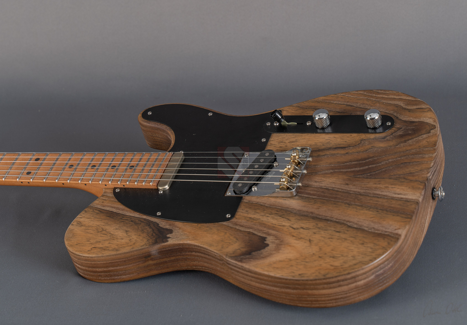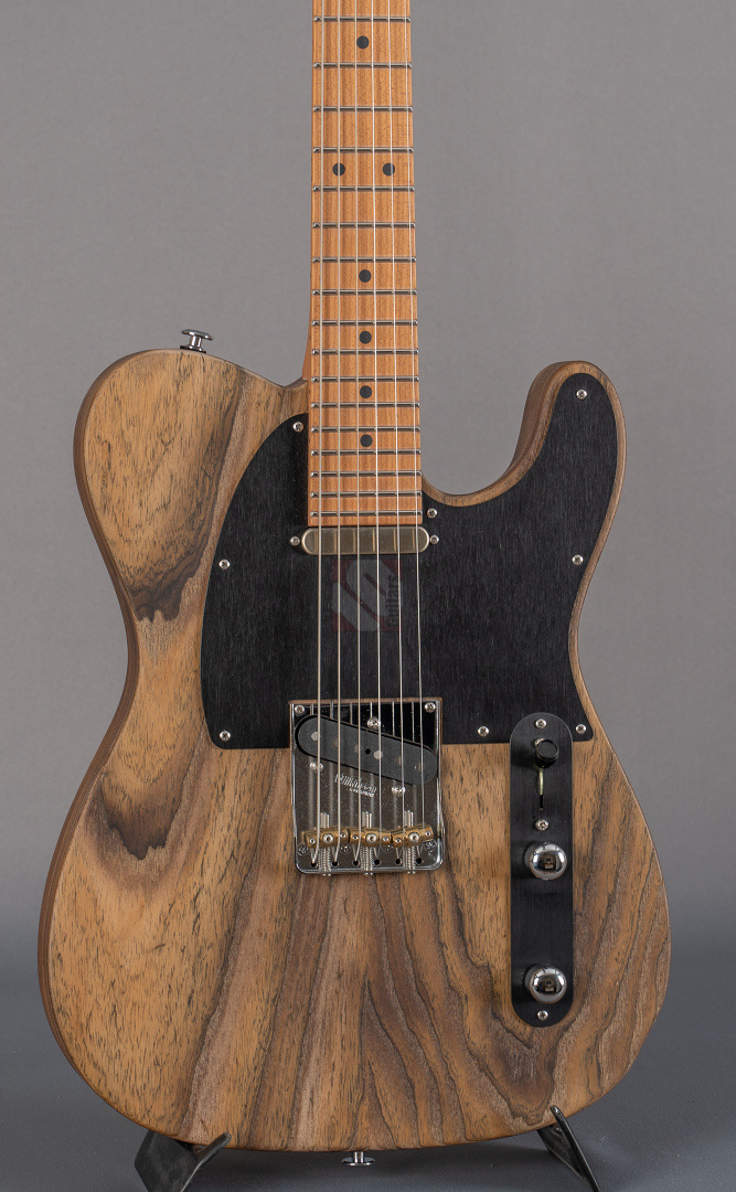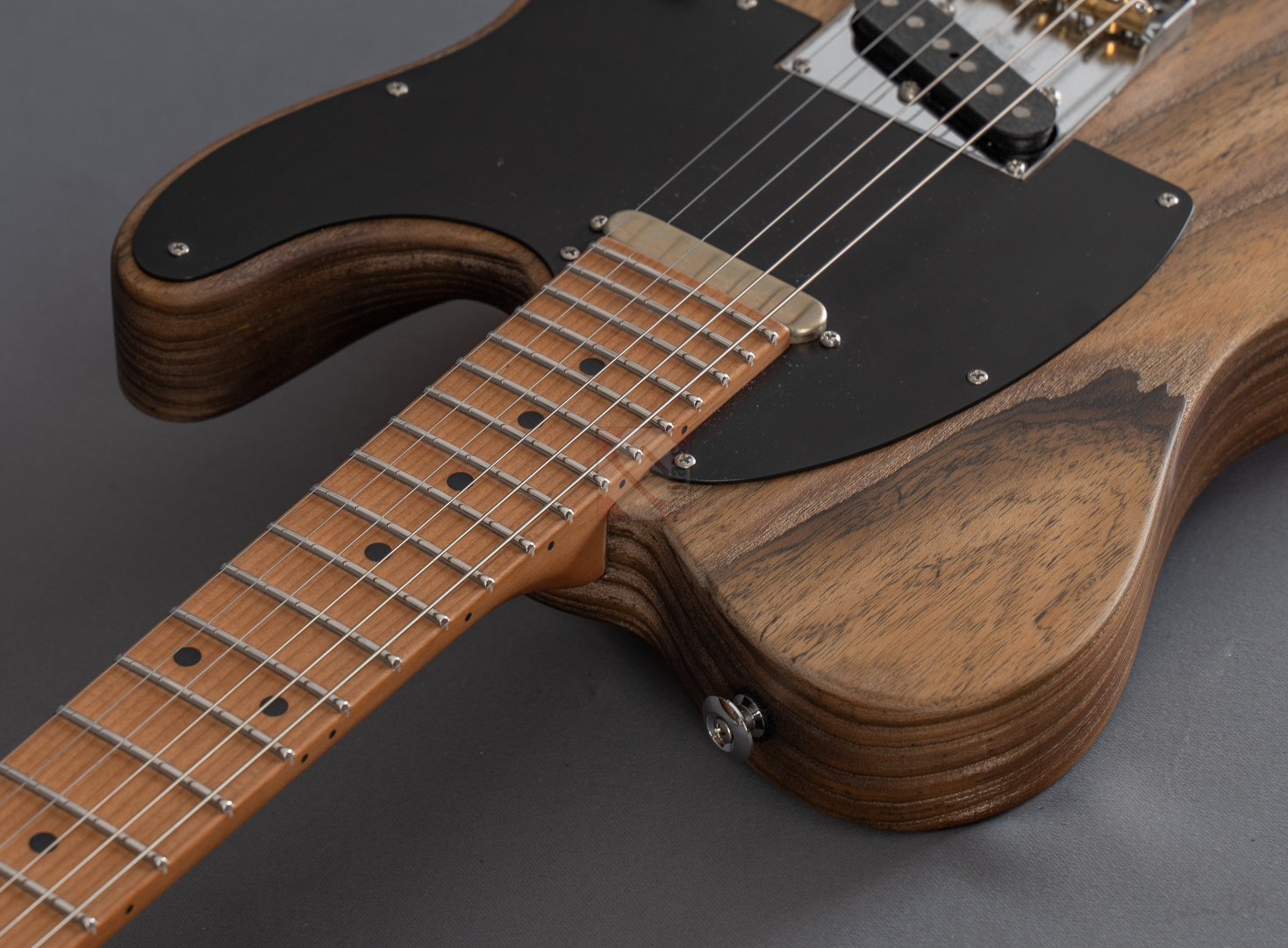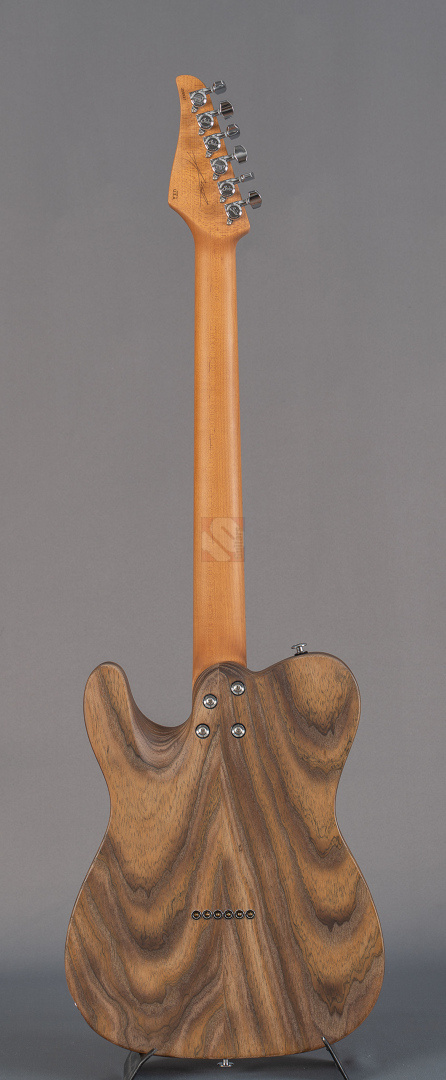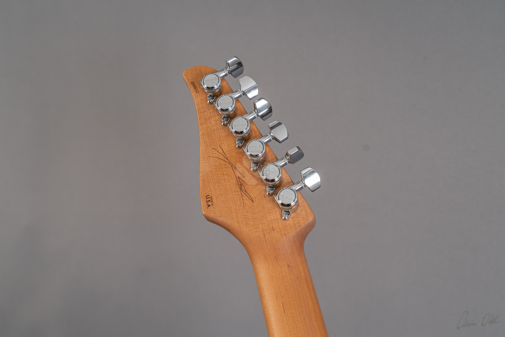 Andy Wood is an American guitarist and mandolinist whose signature series from Suhr consistently produces outstanding instruments. This Modern T, crafted from swamp ash, is no exception, boasting a unique feel thanks to the wood's texture, which is perceptible even beneath the lacquer. This is achieved through a special "Torched Satin" finish, where the body is flamed/burned before lacquering, bringing out and preserving the wood grain. The "Whiskey Barrel" finish also possesses its own distinct charm. The bolt-on neck and fretboard are made of heat-treated roasted maple. 24 Jumbo stainless steel frets adorn the attractive fretboard and together with the "Modern Elliptical" neck profile (.780"-.830") and a 16" fretboard radius they ensure exceptional playability. Furthermore, the two "Woodshed" singlecoil pickups give the instrument the characteristic twang of the T-models and are hum-free thanks to SSCII technology. Warm and bluesy at the neck, assertive at the bridge and never thin or nasal. A superb frequency response, especially with overdriven and distorted sounds! This is simply the ideal workhorse for any musician seeking superior playing comfort combined with fantastic sound and top-notch aesthetics. The guitar is including the frets in top condition.