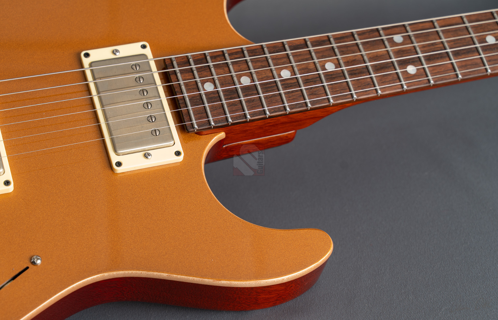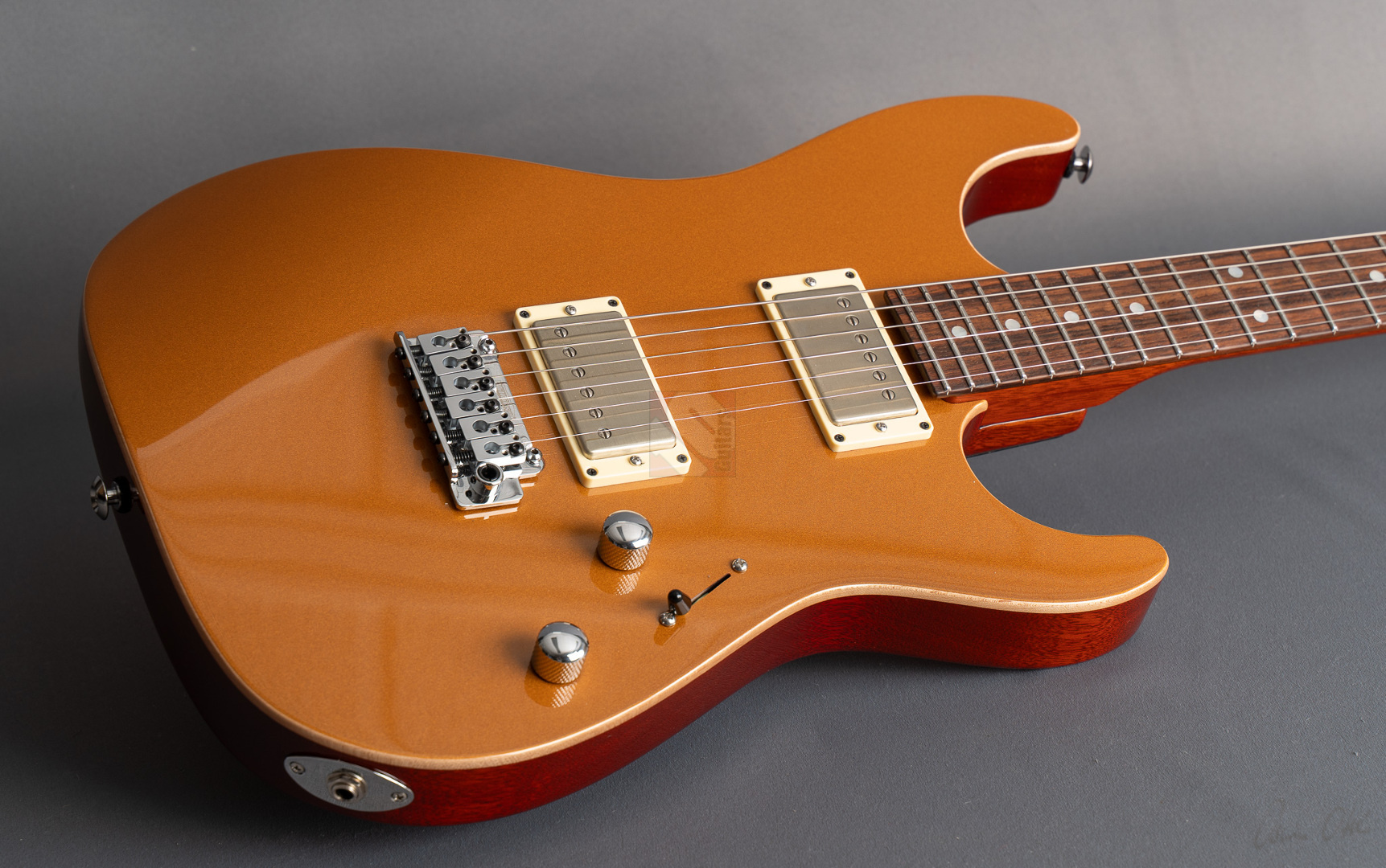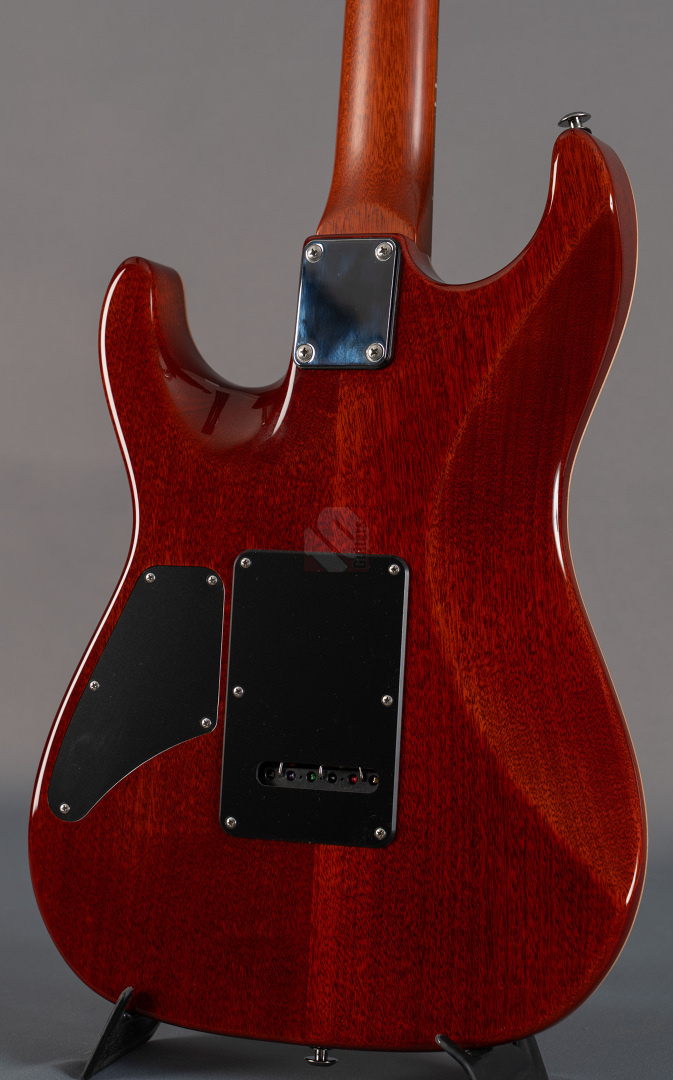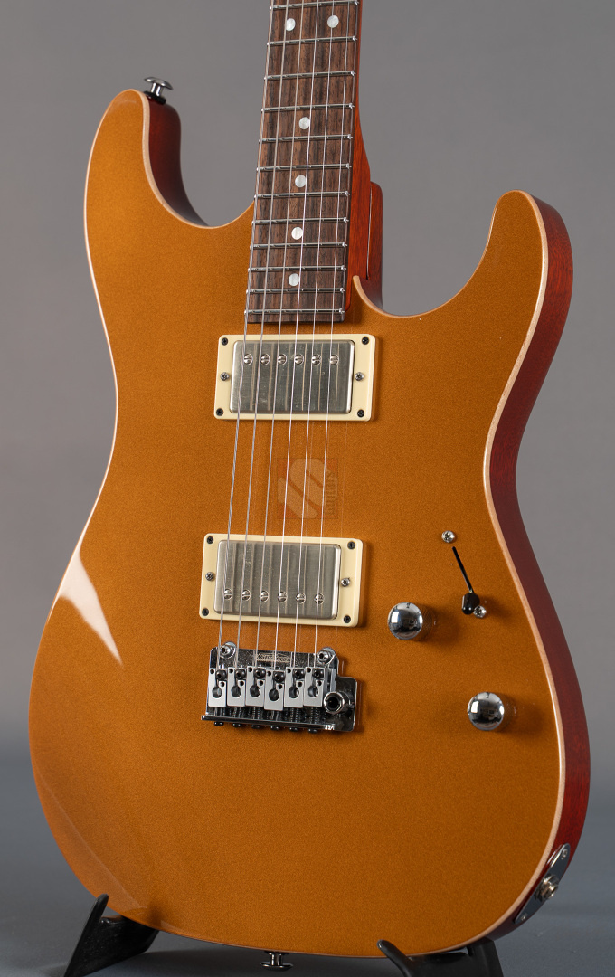 Pete Thorn's signature model is based on a Suhr Standard in the iconic Stratocaster shape with some modern improvements that can cover any type of music and is played by musicians from a wide variety of musical genres. This special series has a chambered mahogany body with a soundmighty maple top and a very attractive “Vintage Gold” finish. Of course the chambering ensures a fantastic weight of only 3428 grams, which in combination with the super-comfortable “Even C Slim” neck profile and a 10-14'' compound radius offers the very best playing characteristics. The same goal is pursued through the use of a Wilkinson “WVS130 Locking Saddle” tremolo and Suhr locking tuners for optimum tuning stability and easier string changes. In terms of sound, we are dealing here with the specially developed Thornbuckers. These in-house humbuckers allow for an immense musical palette ranging from warm Jazz tones to fat Rock sounds. This immense tonal variety, combined with the guitar's phenomenal vibration response, delivers a wonderfully multifaceted playing experience that can best be summed up in the words of Pete Thorn himself: “This guitar is designed to be a sleek, versatile tone machine with a stunning yet understated look that exudes class and rock and roll attitude.” So we are extremely pleased to offer you this perfect “jack of all trades” in top condition.