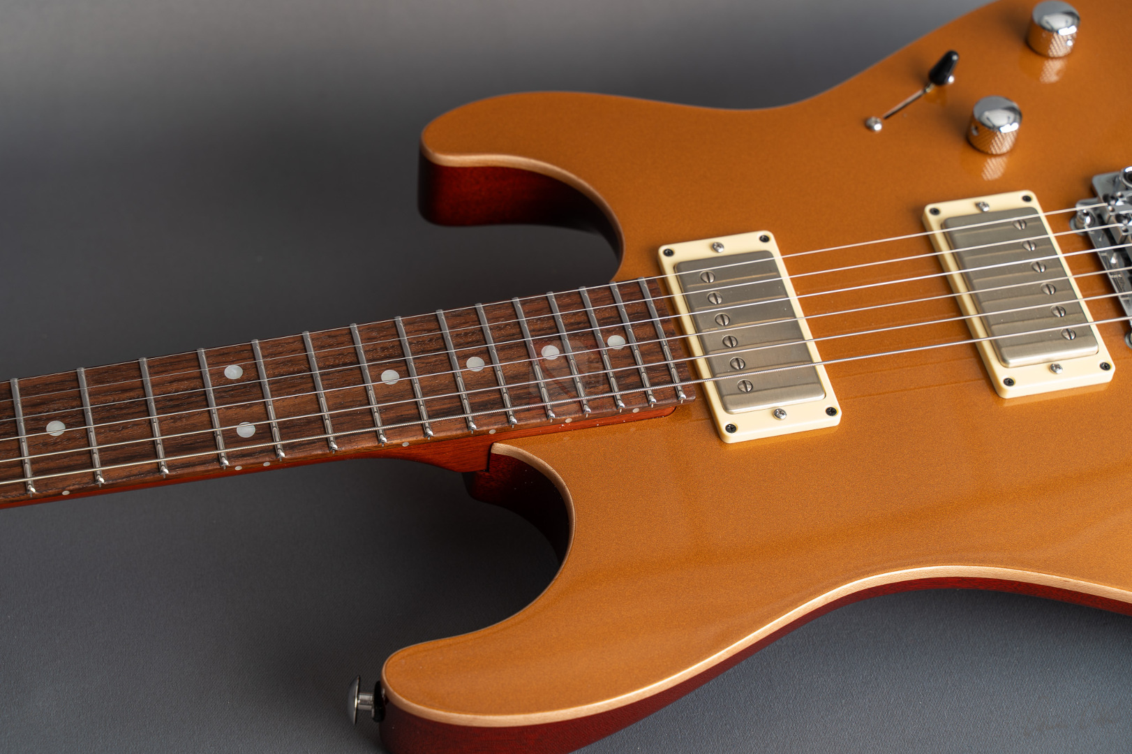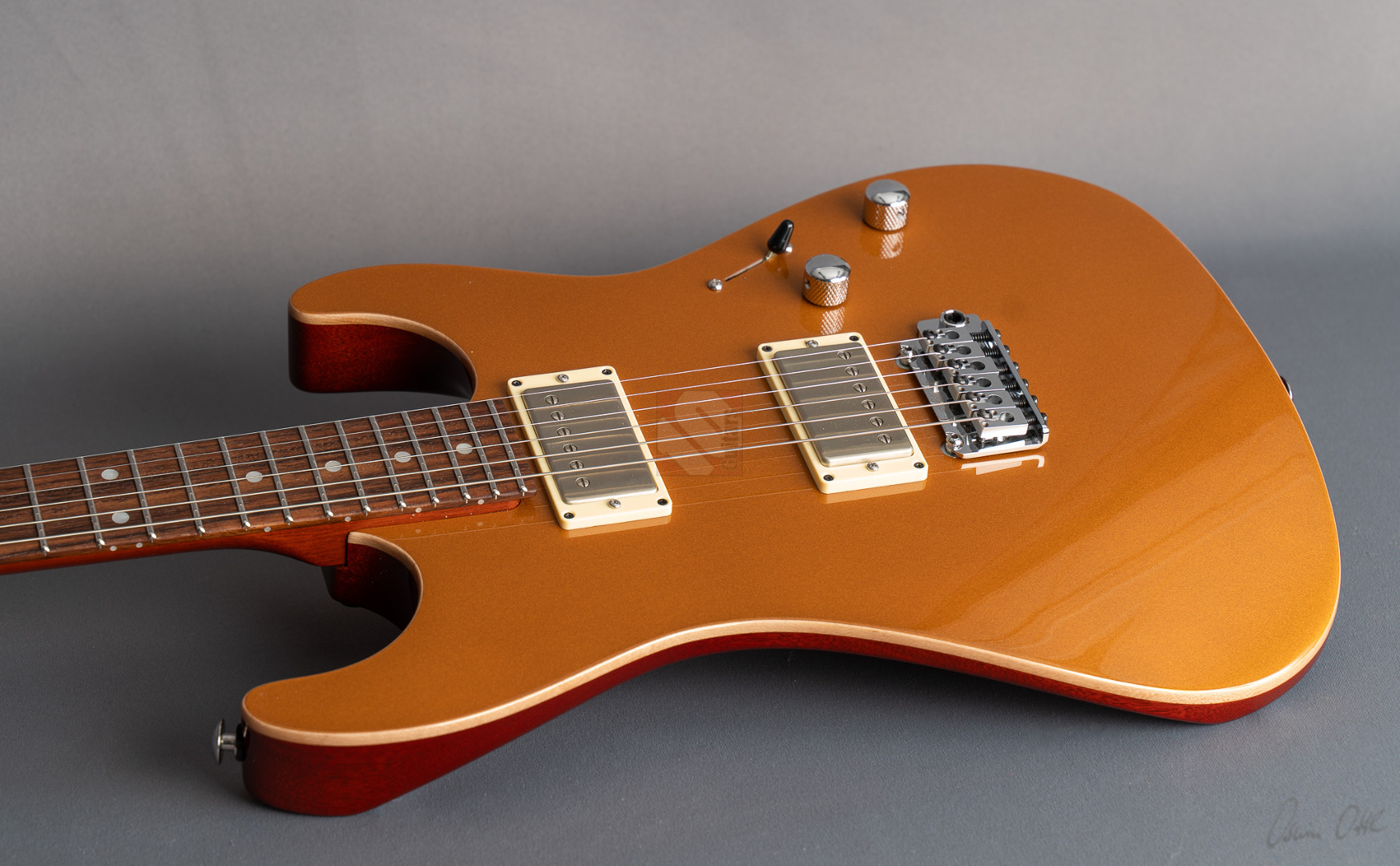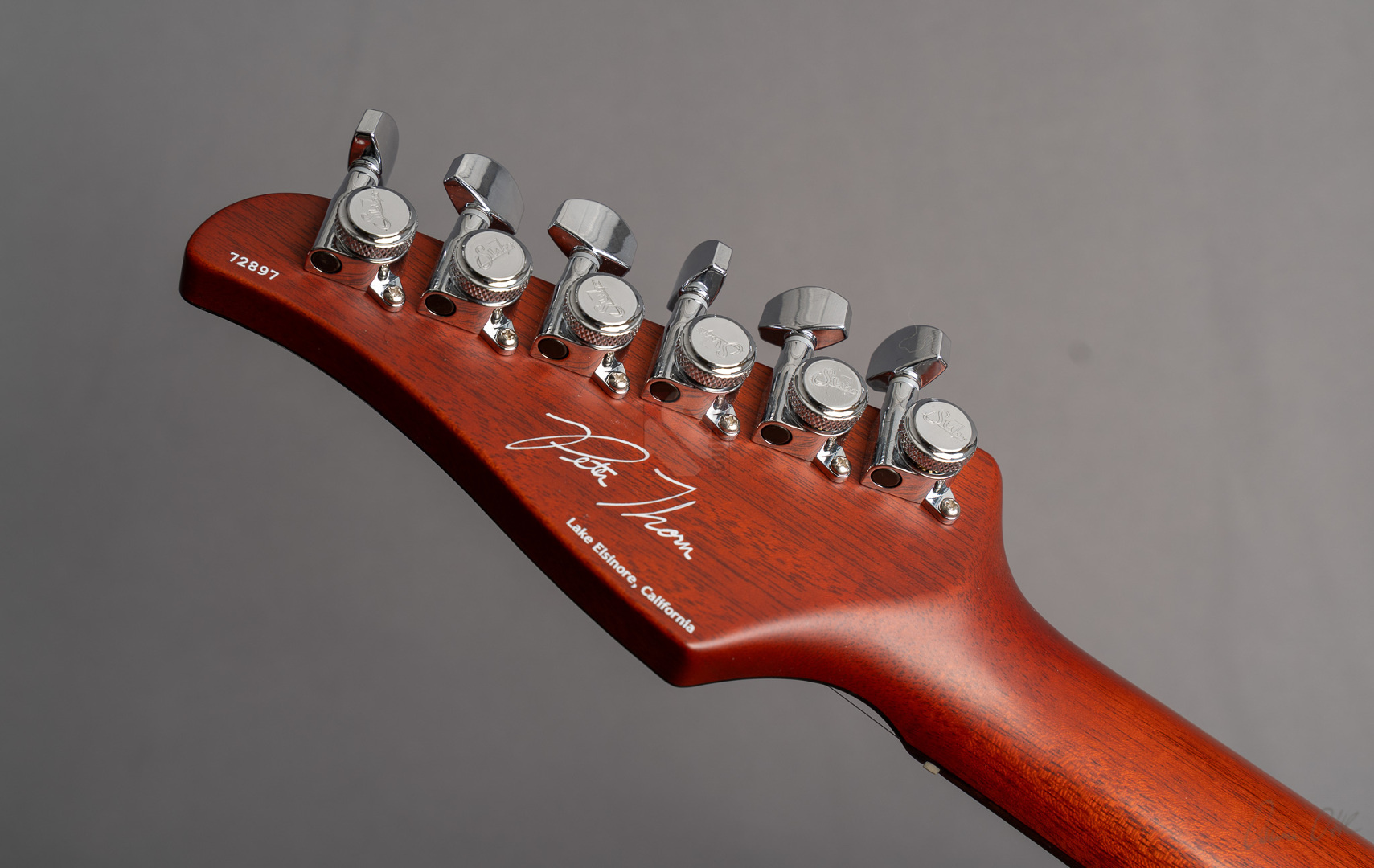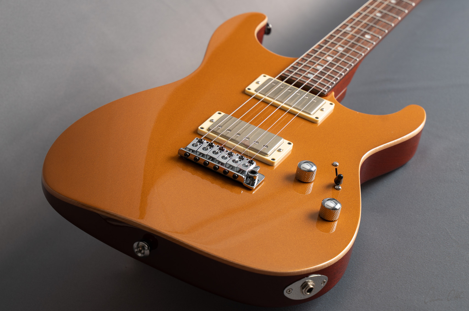 Pete Thorn's signature model is based on a Suhr Standard in the iconic Stratocaster shape with some modern improvements that can cover any type of music and is played by musicians from a wide variety of musical genres. This special series has a chambered mahogany body with a soundmighty maple top and a very attractive “Vintage Gold” finish. Of course the chambering ensures a fantastic weight of only 3428 grams, which in combination with the super-comfortable “Even C Slim” neck profile and a 10-14'' compound radius offers the very best playing characteristics. The same goal is pursued through the use of a Wilkinson “WVS130 Locking Saddle” tremolo and Suhr locking tuners for optimum tuning stability and easier string changes. In terms of sound, we are dealing here with the specially developed Thornbuckers. These in-house humbuckers allow for an immense musical palette ranging from warm Jazz tones to fat Rock sounds. This immense tonal variety, combined with the guitar's phenomenal vibration response, delivers a wonderfully multifaceted playing experience that can best be summed up in the words of Pete Thorn himself: “This guitar is designed to be a sleek, versatile tone machine with a stunning yet understated look that exudes class and rock and roll attitude.” So we are extremely pleased to offer you this perfect “jack of all trades” in top condition.