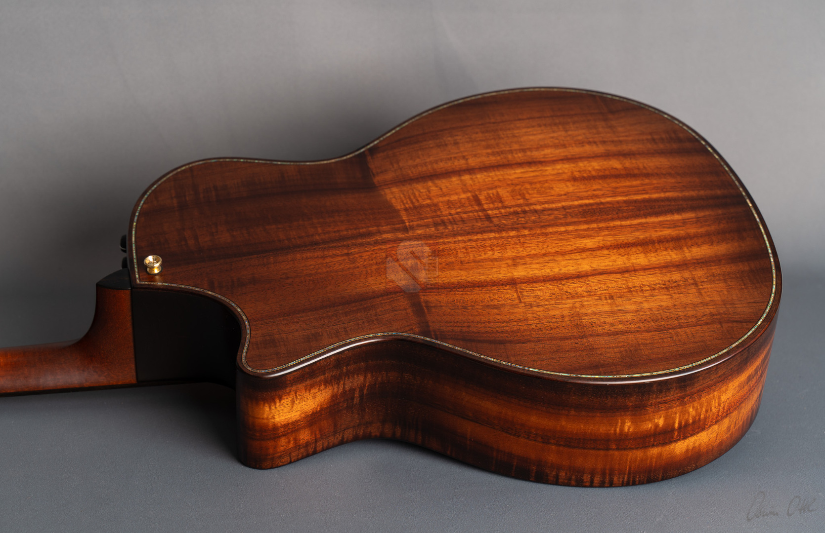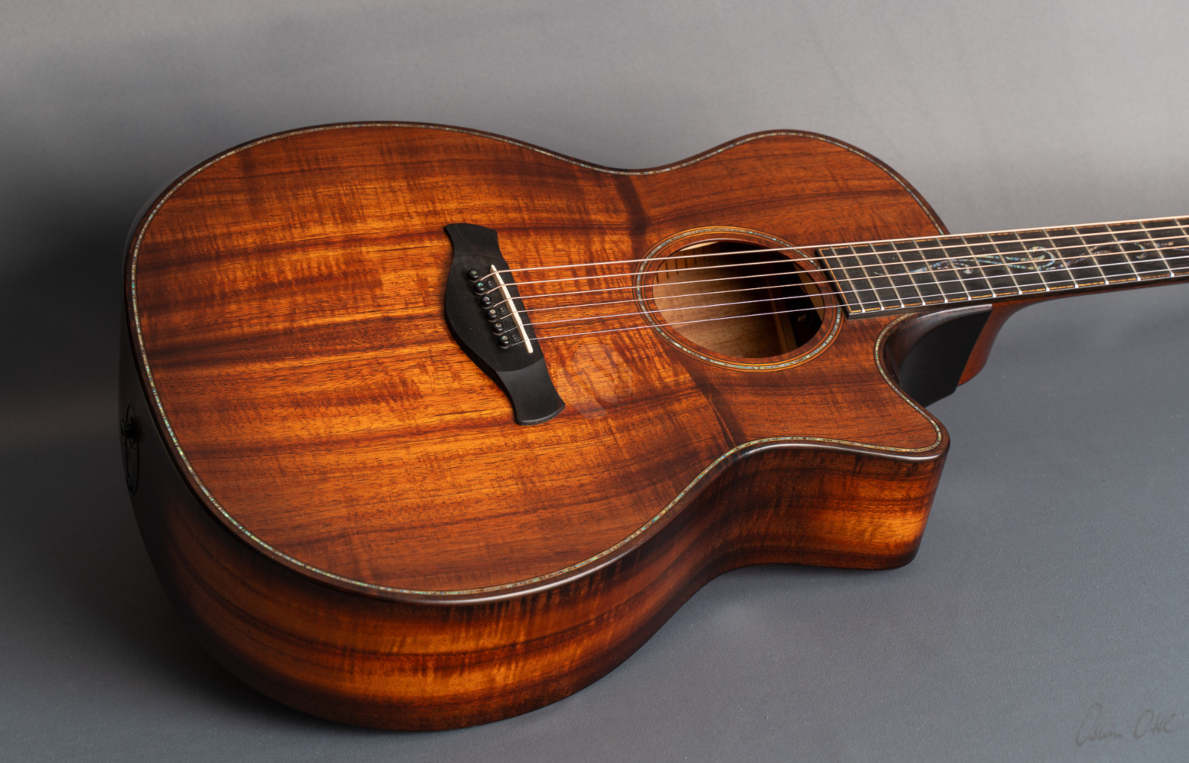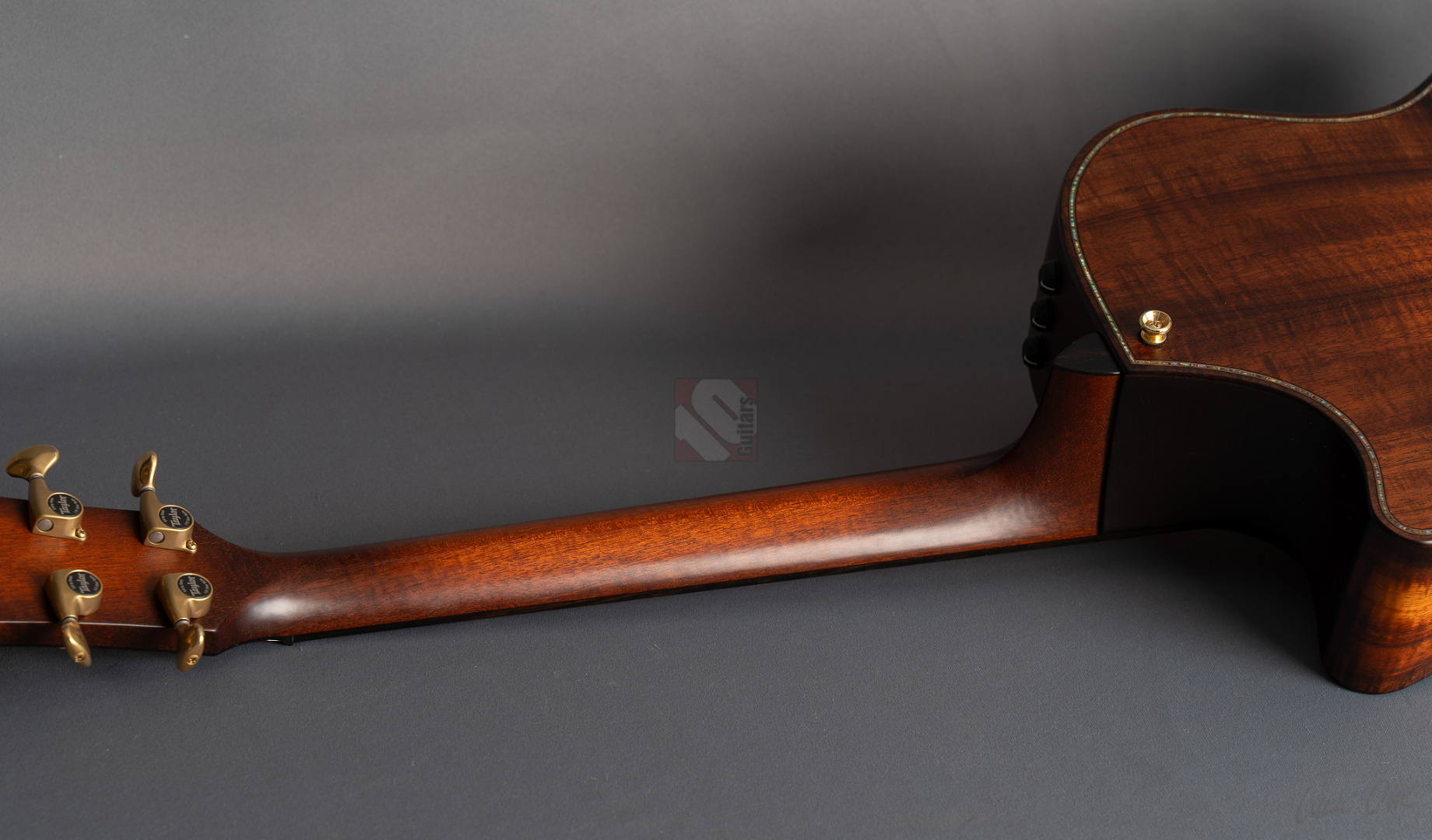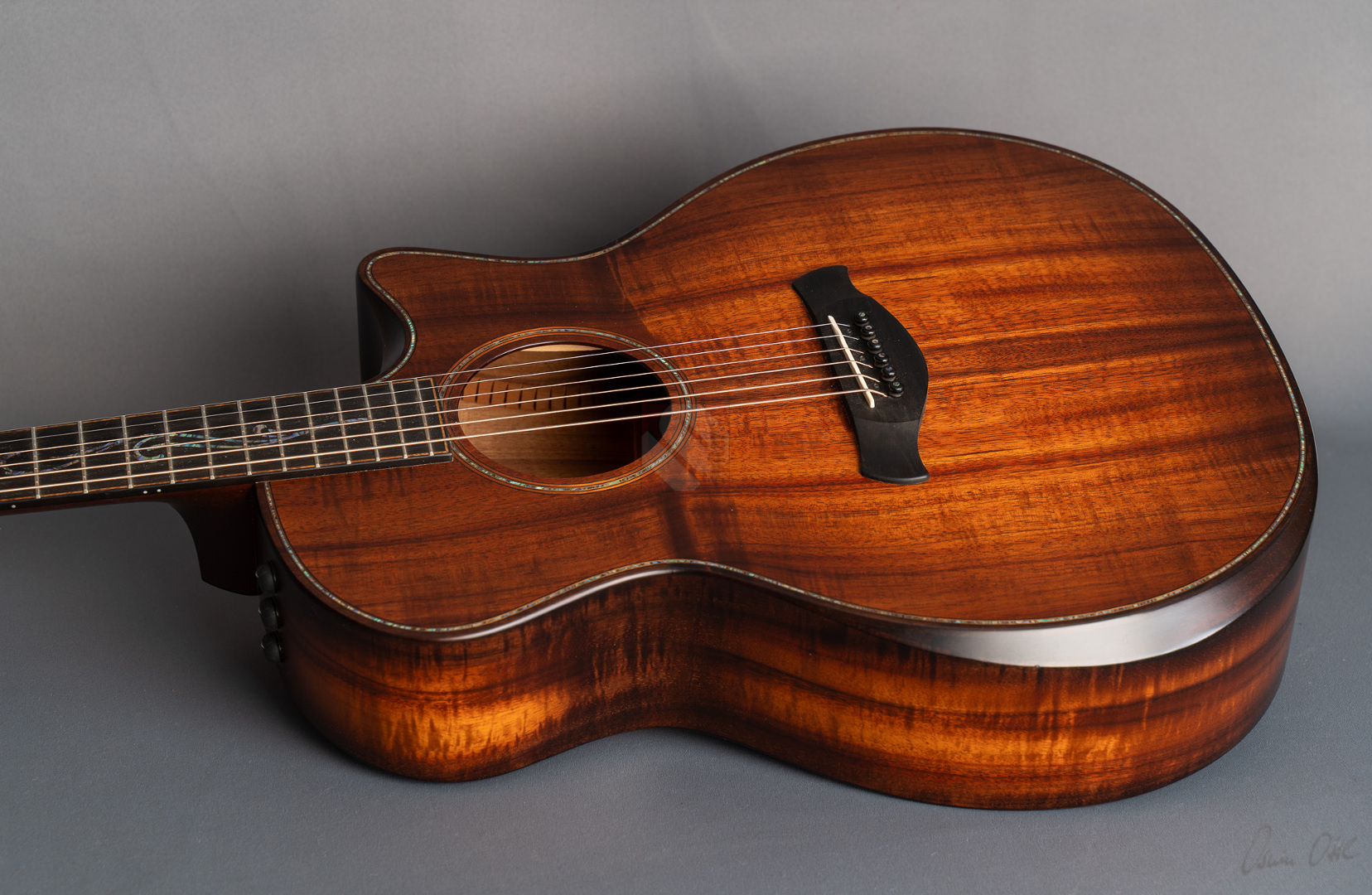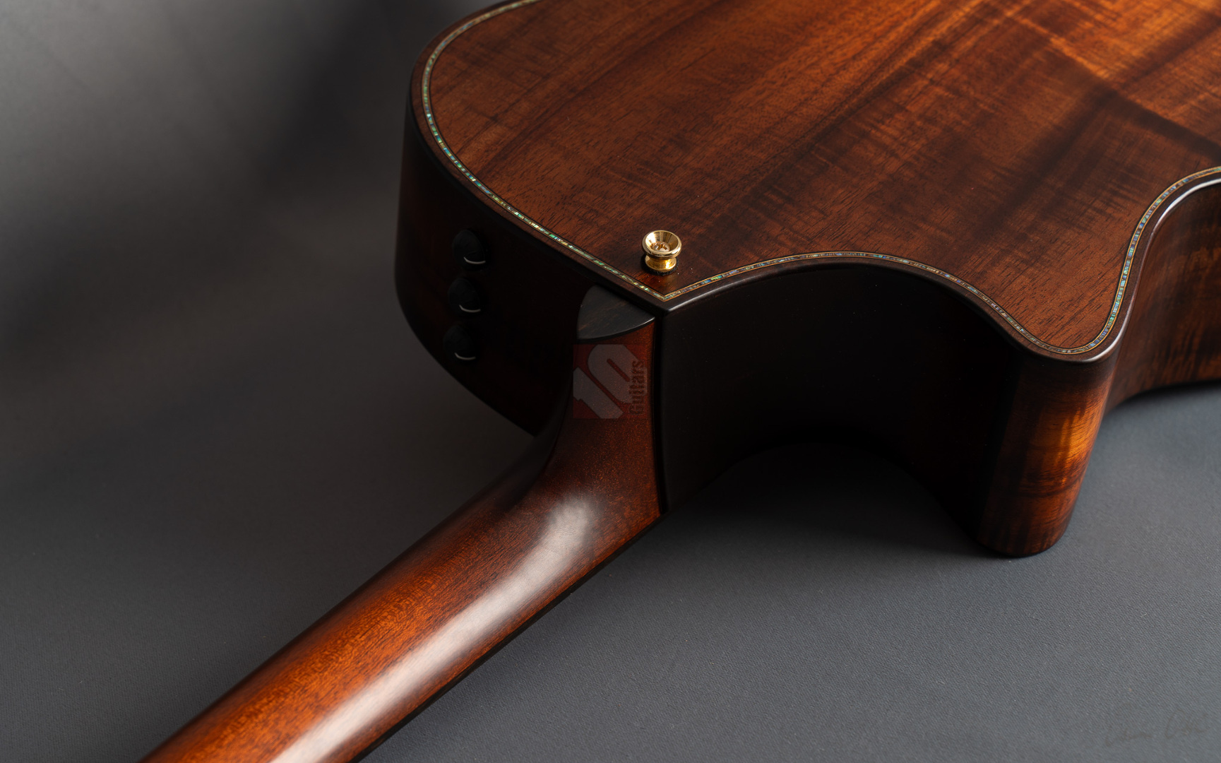Known for its beautiful grain, Hawaiian koa not only seems tailor-made to attract attention, but also proves to be a versatile, powerful tonewood with smooth bass, warm mids, and fantastic brilliance in the highs. Balanced reproduction of the tonal spectrum with a clear, focused voice! The Taylor K24ce, made entirely from solid koa, is a Grand Auditorium, Taylor's most versatile body shape with patented V-Class bracing under the top. This provides more volume, longer sustain, more pronounced low-end response, improved intonation and a cleaner, clearer sound across the entire fretboard. The visual details of this top-of-the-line model are super exclusive with a wonderfully tactile and visually stunning “Silent Satin” finish that highlights the rich grain of the koa, beautiful spring vine inlays along the dark ebony fingerboard and an elegant koa paua binding. The beautifully satin-finished medium neck is a pleasure to touch and extremely comfortable to play. Of course the slanted ebony armrest serves the same purpose. For stage use the guitar also features Taylor's own ES-2 piezo system with three-band EQ. All in all, this is a superb all-round acoustic guitar with perfect consistency down to the last detail, and apart from a tiny mark on the upper side, it is in mint condition! This could be the acoustic of a lifetime...